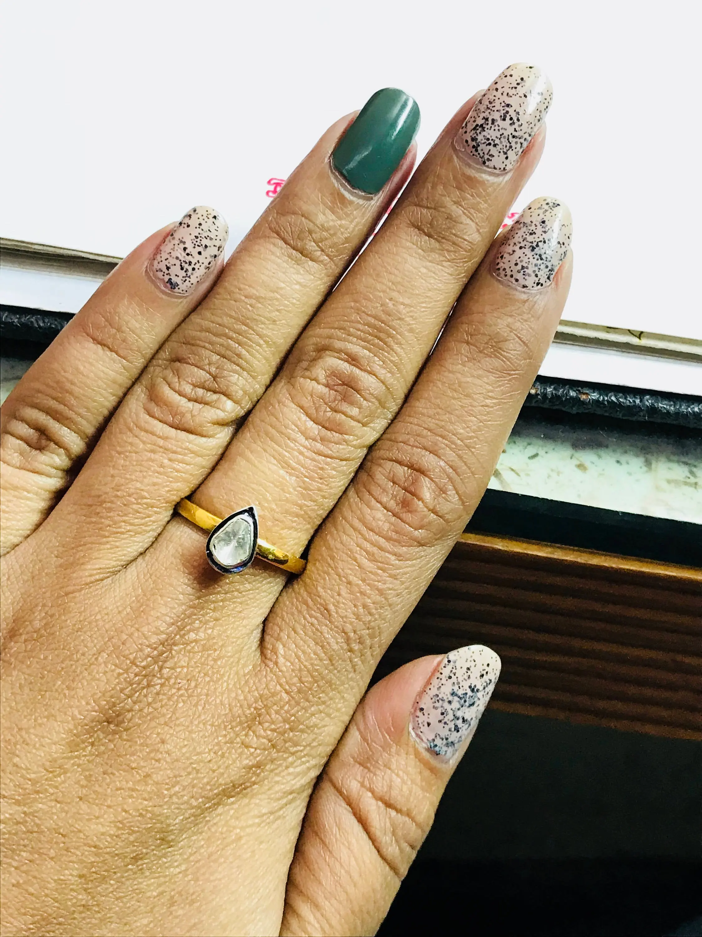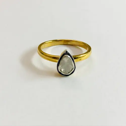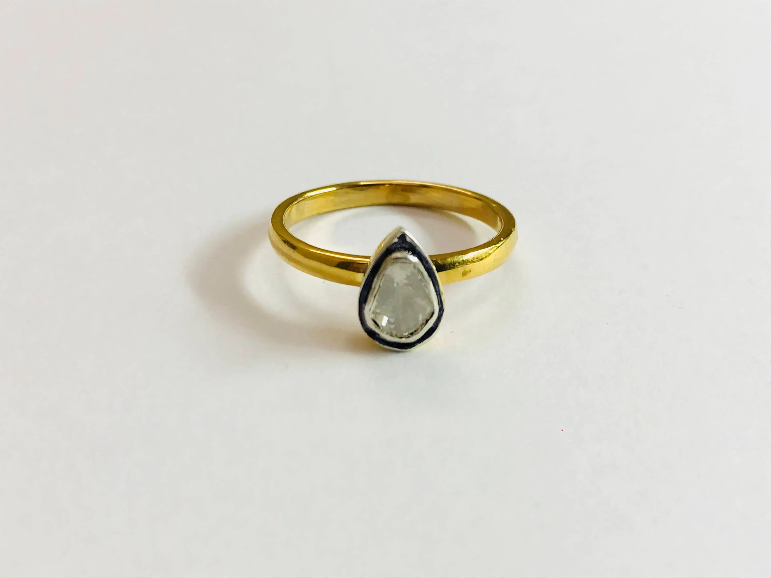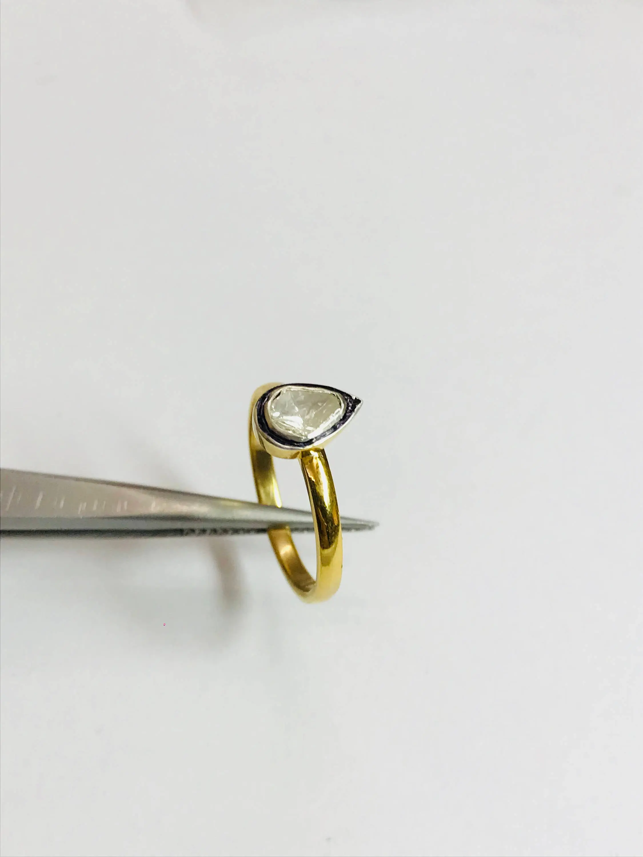 TEAR DROP SHAPE SOLITAIRE ROSE CUT DIAMOND ENGAGEMENT RING............