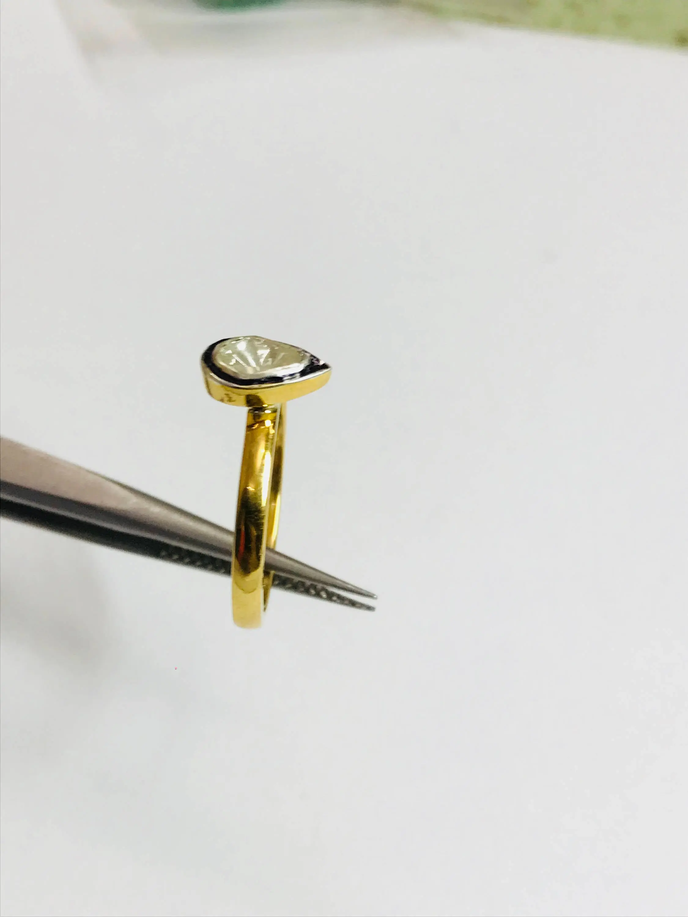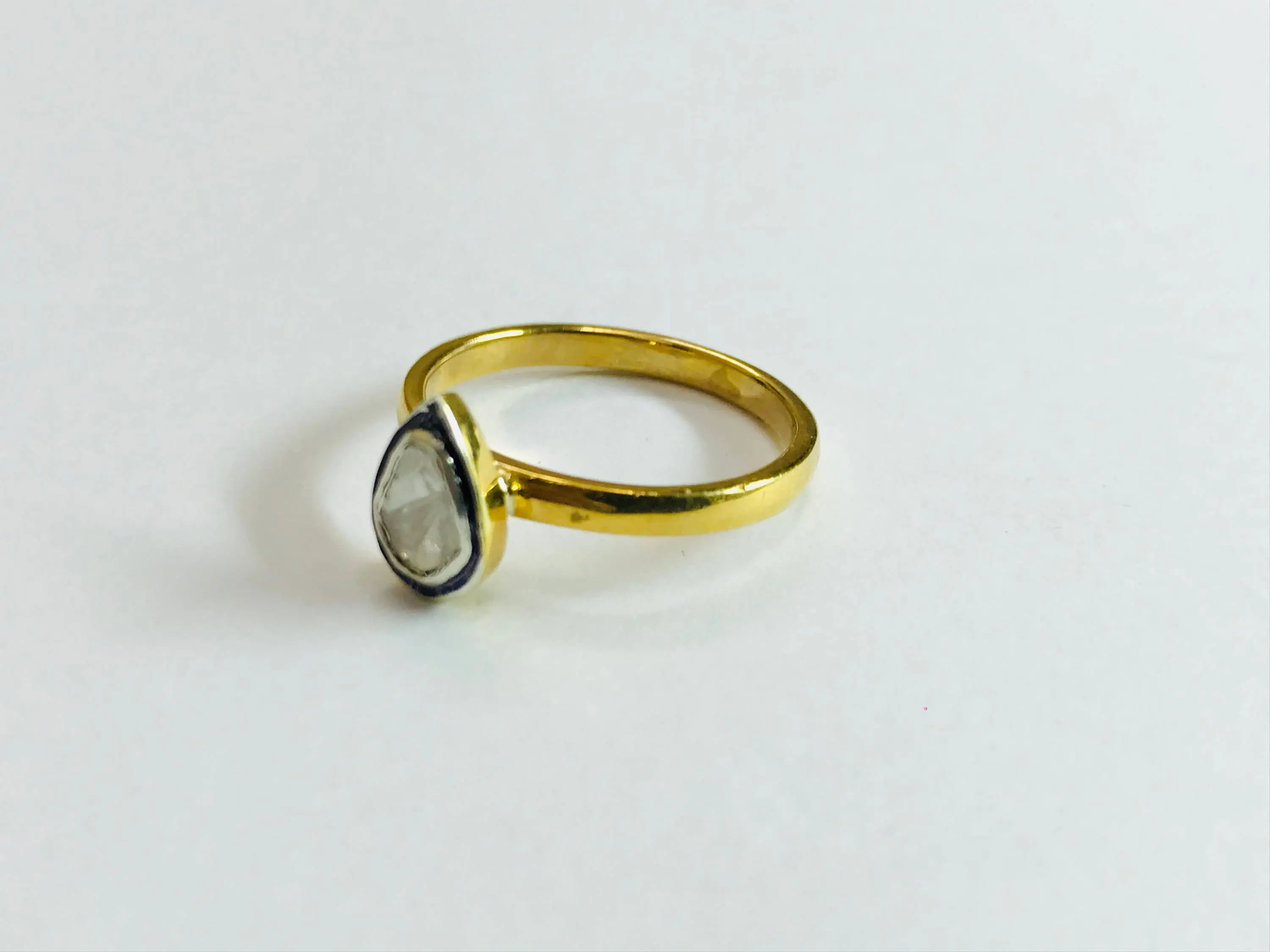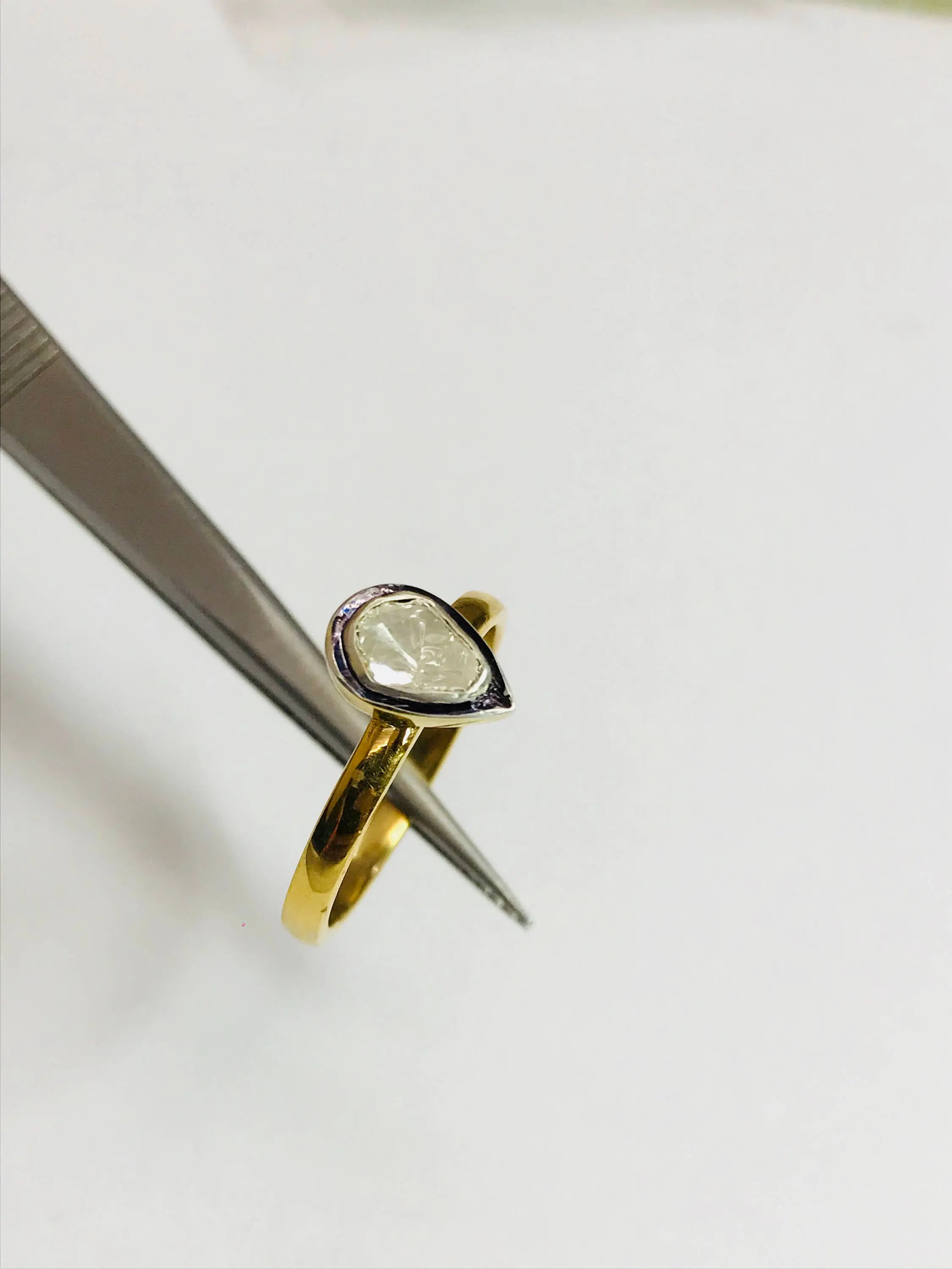 TEAR DROP SHAPE SOLITAIRE ROSE CUT DIAMOND ENGAGEMENT RING............