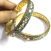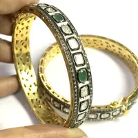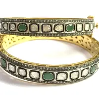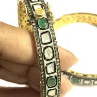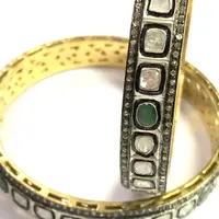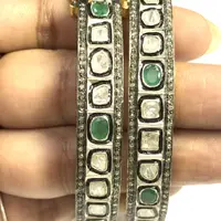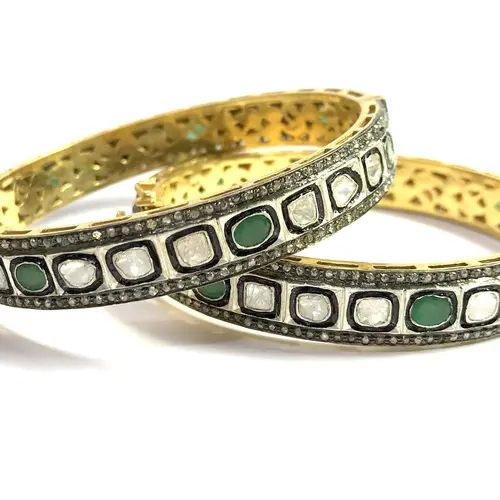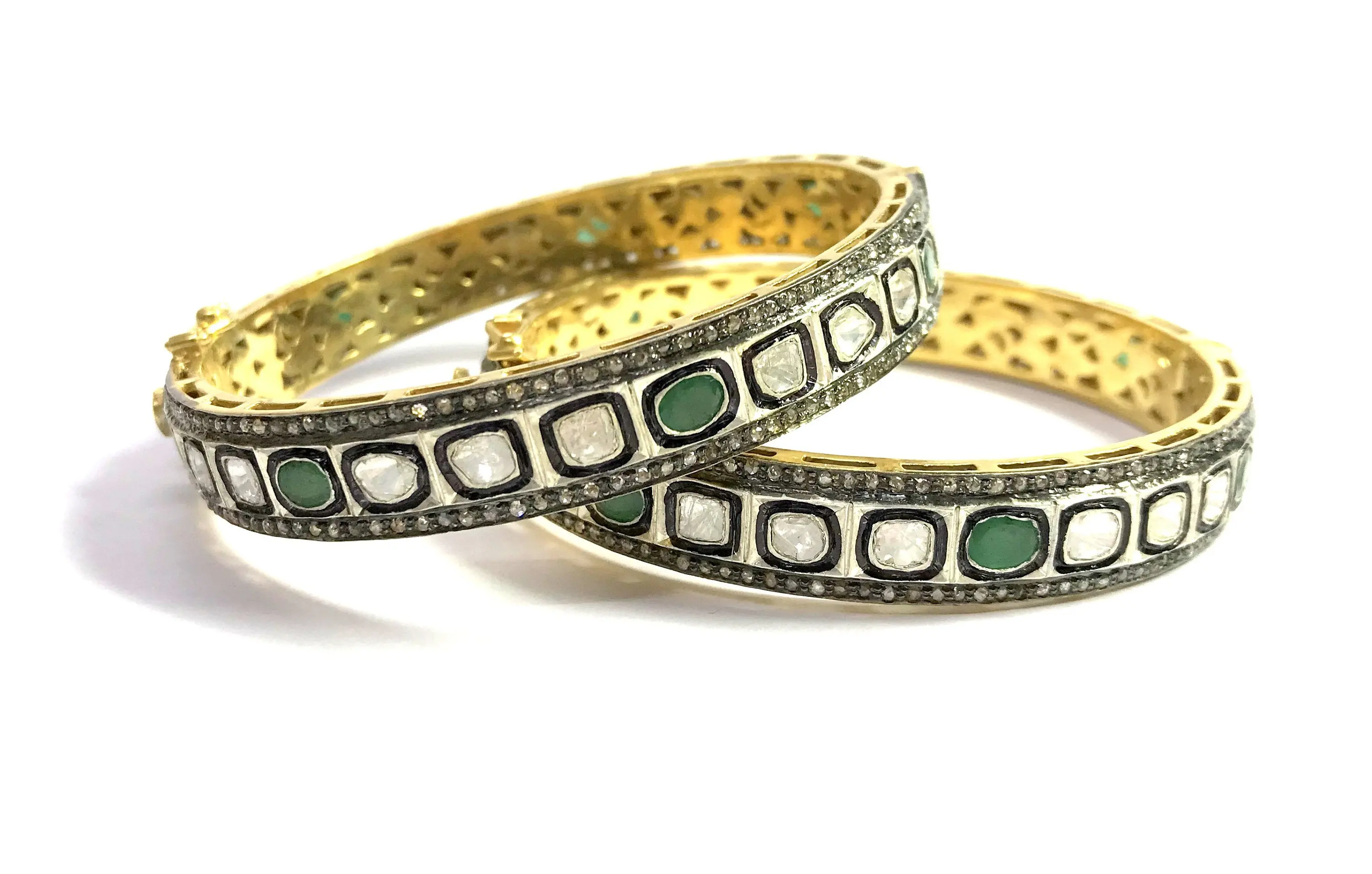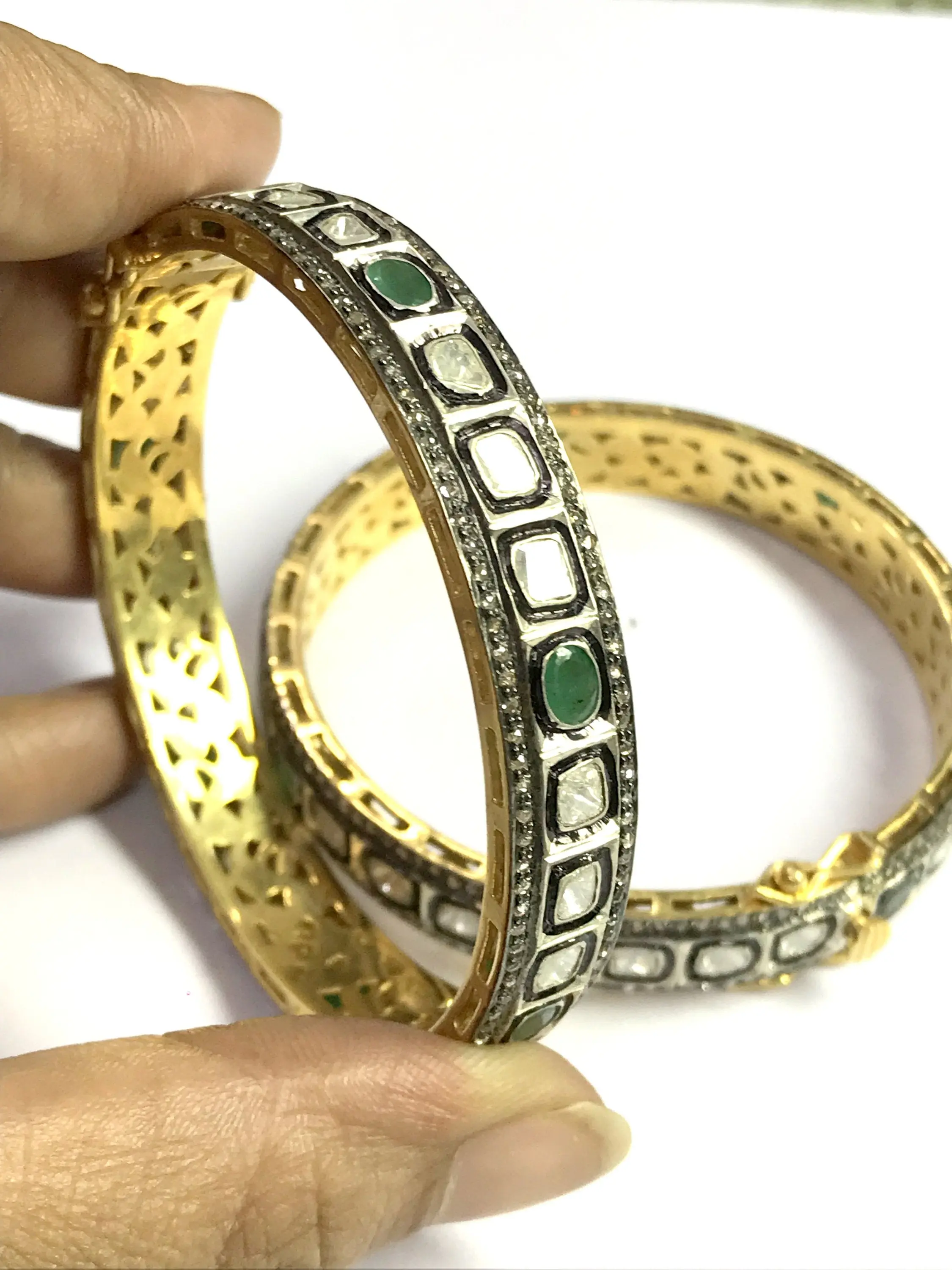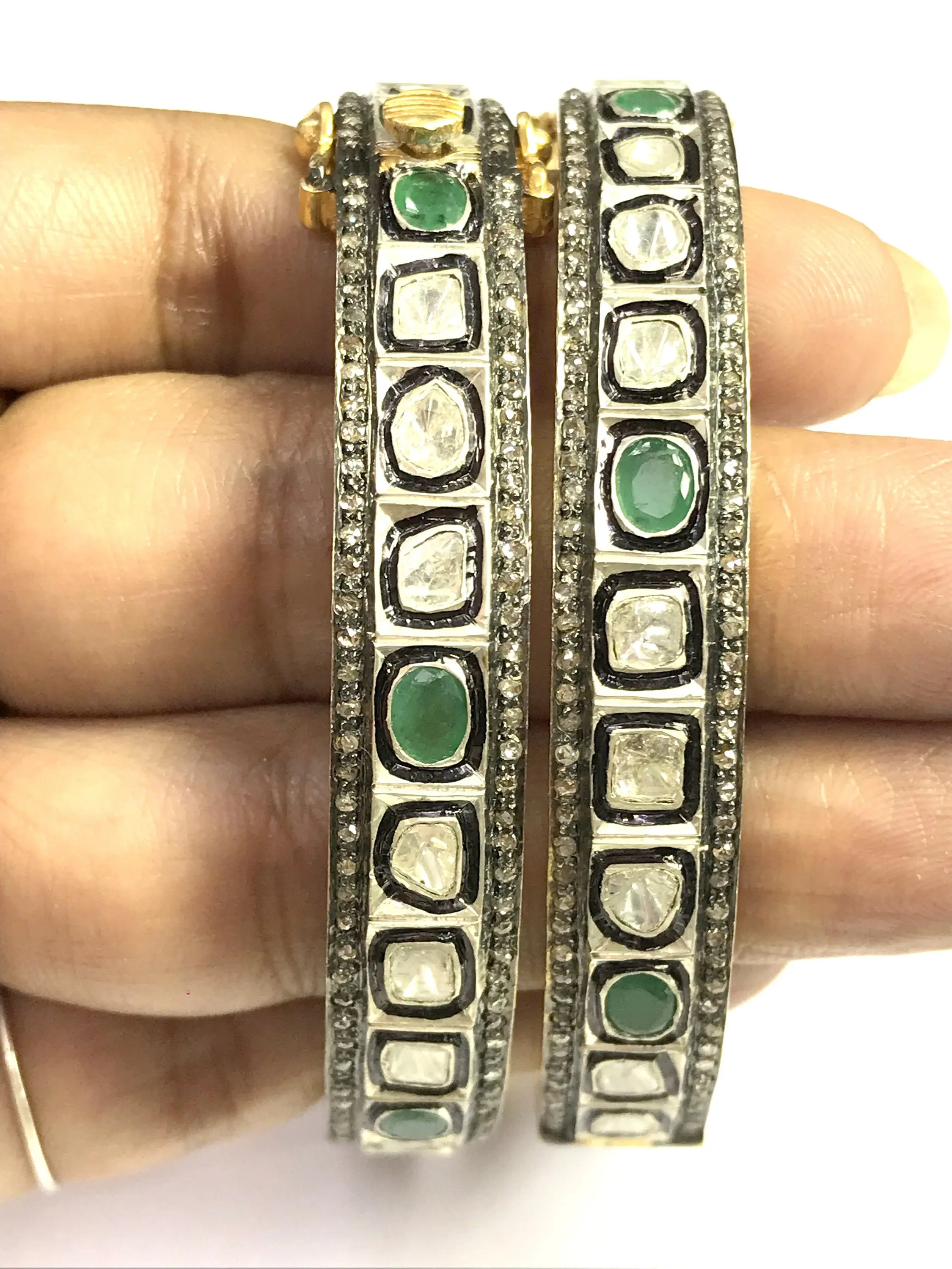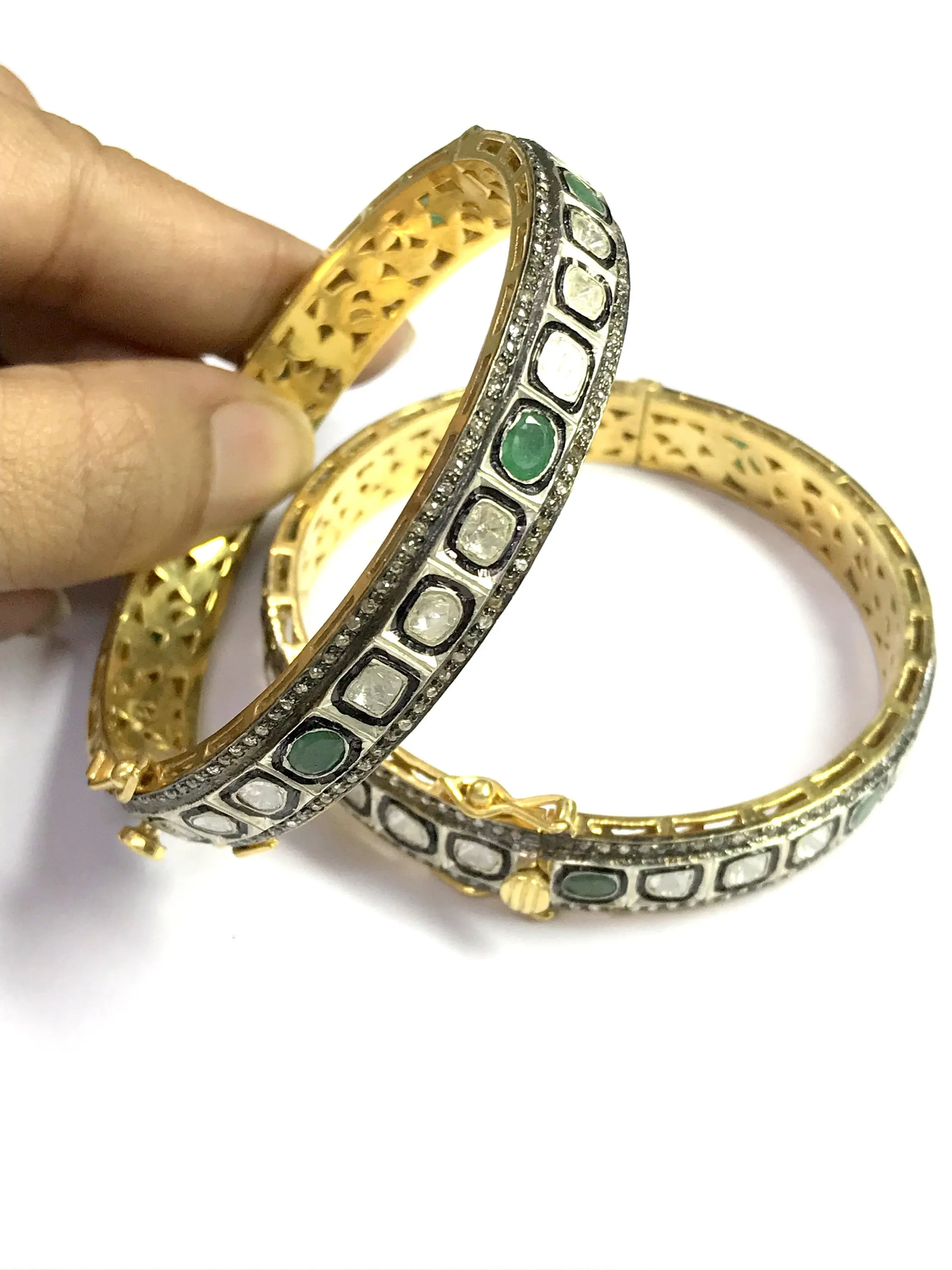 ROSE CUT EMERALD DIAMONDS -bezel set Diamond Bangle - 925 Sterling Silver - antique diamonds Bangle -black rhodium plated jewelry, Vintage wedding bangle.....