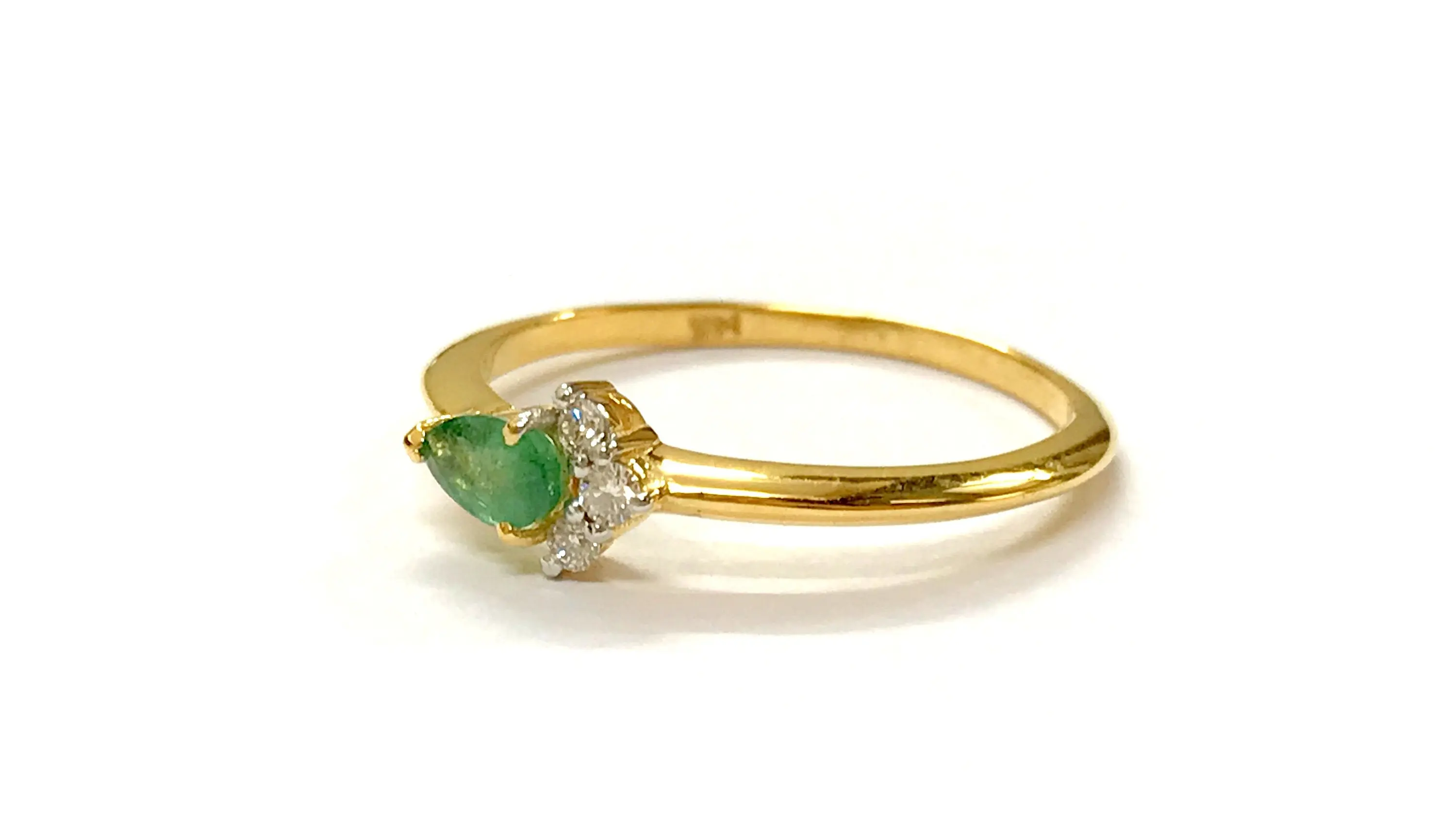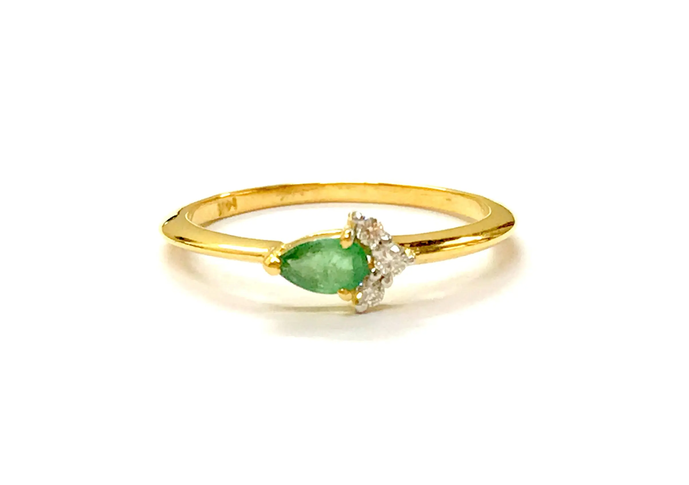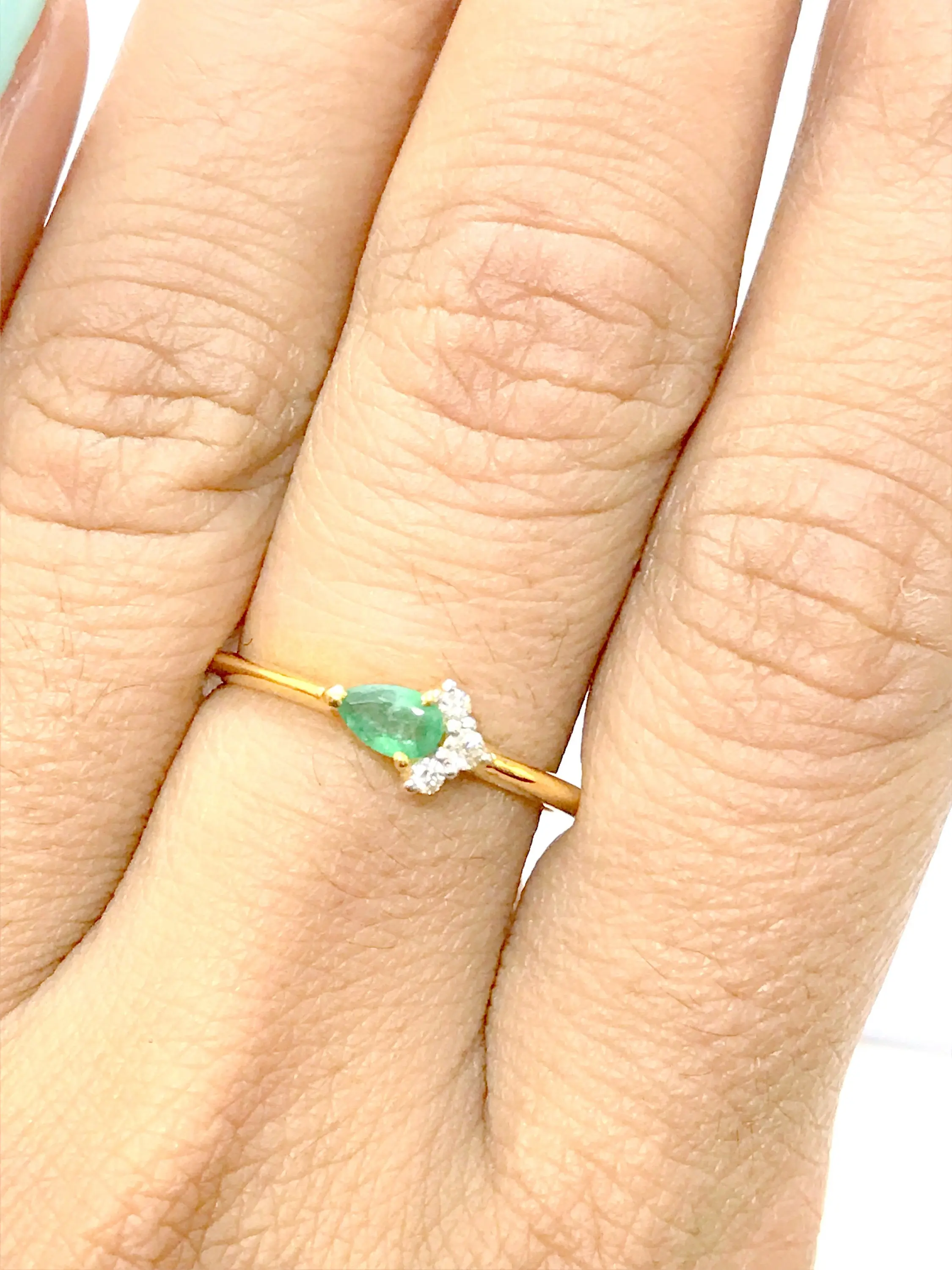 GREEN EMERALD DIAMOND 14K Gold Ring , May Birthstone , Emerald Engagement Ring , Stackable Ring , Best Gift For Love and friendship....