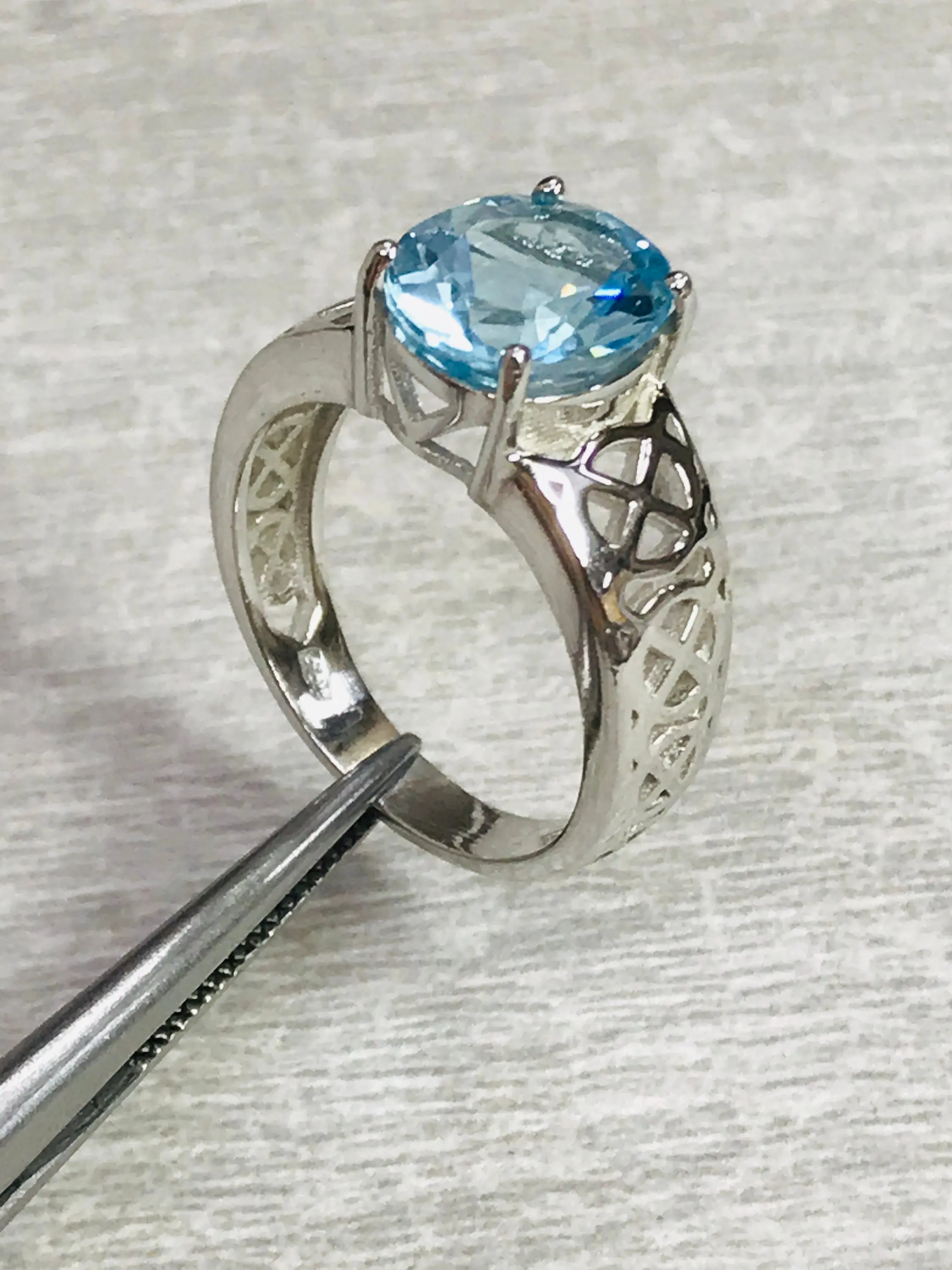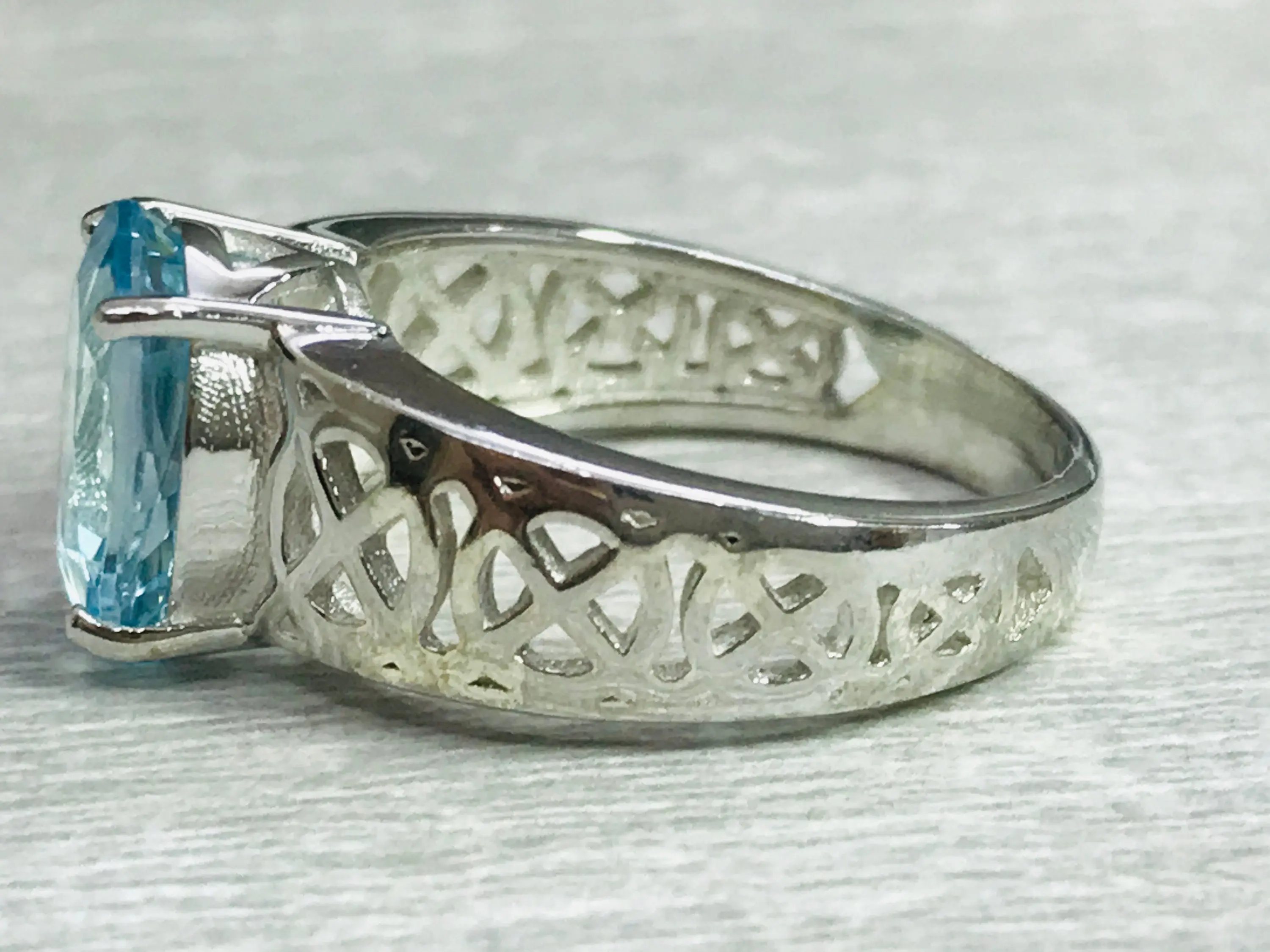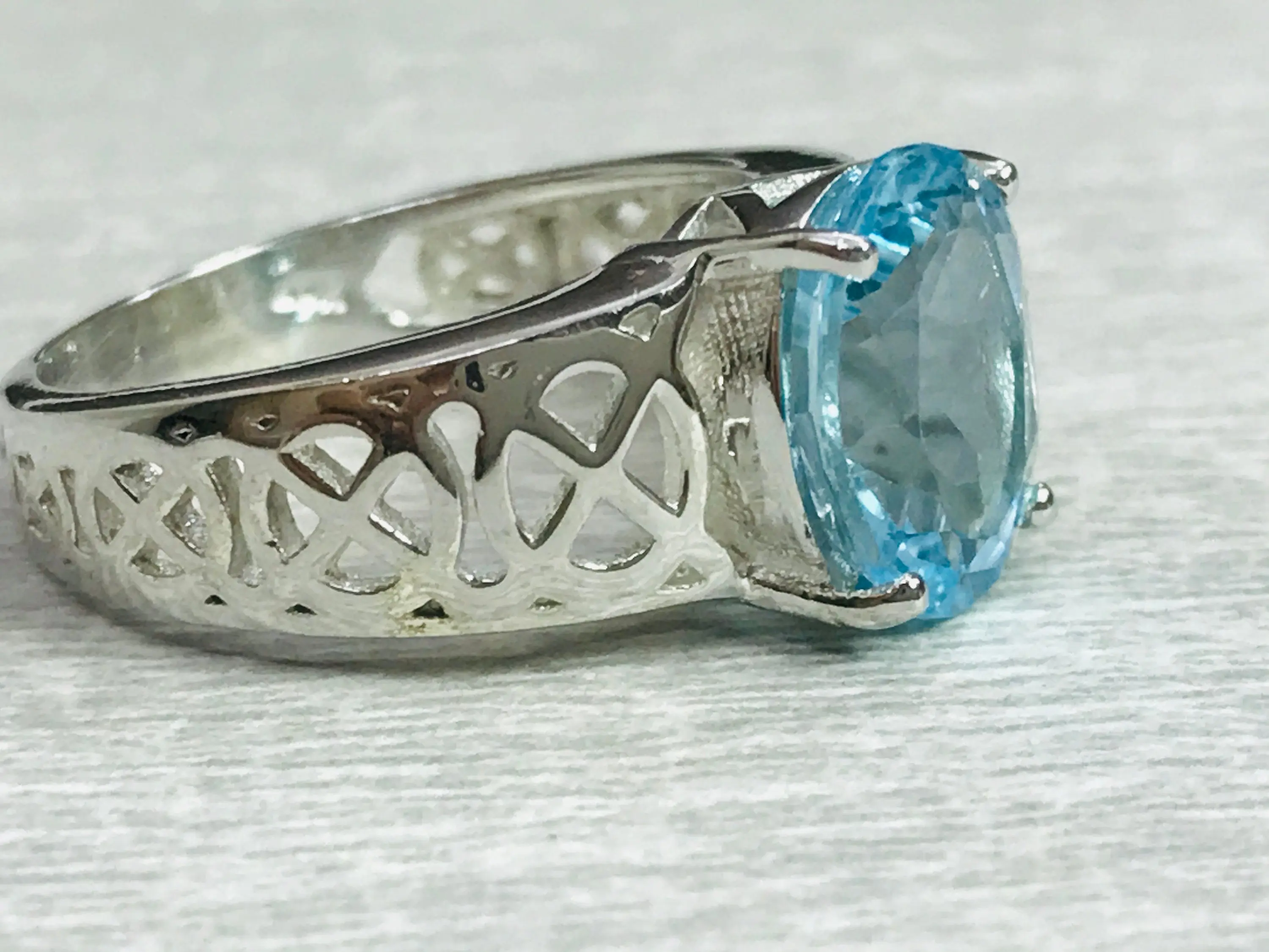 THROAT CHAKRA BLUETOPAZ ,Celtic Knots ,December Birthstone ,Hand Forged Ring ,crystal healing Topaz, Unisex ring