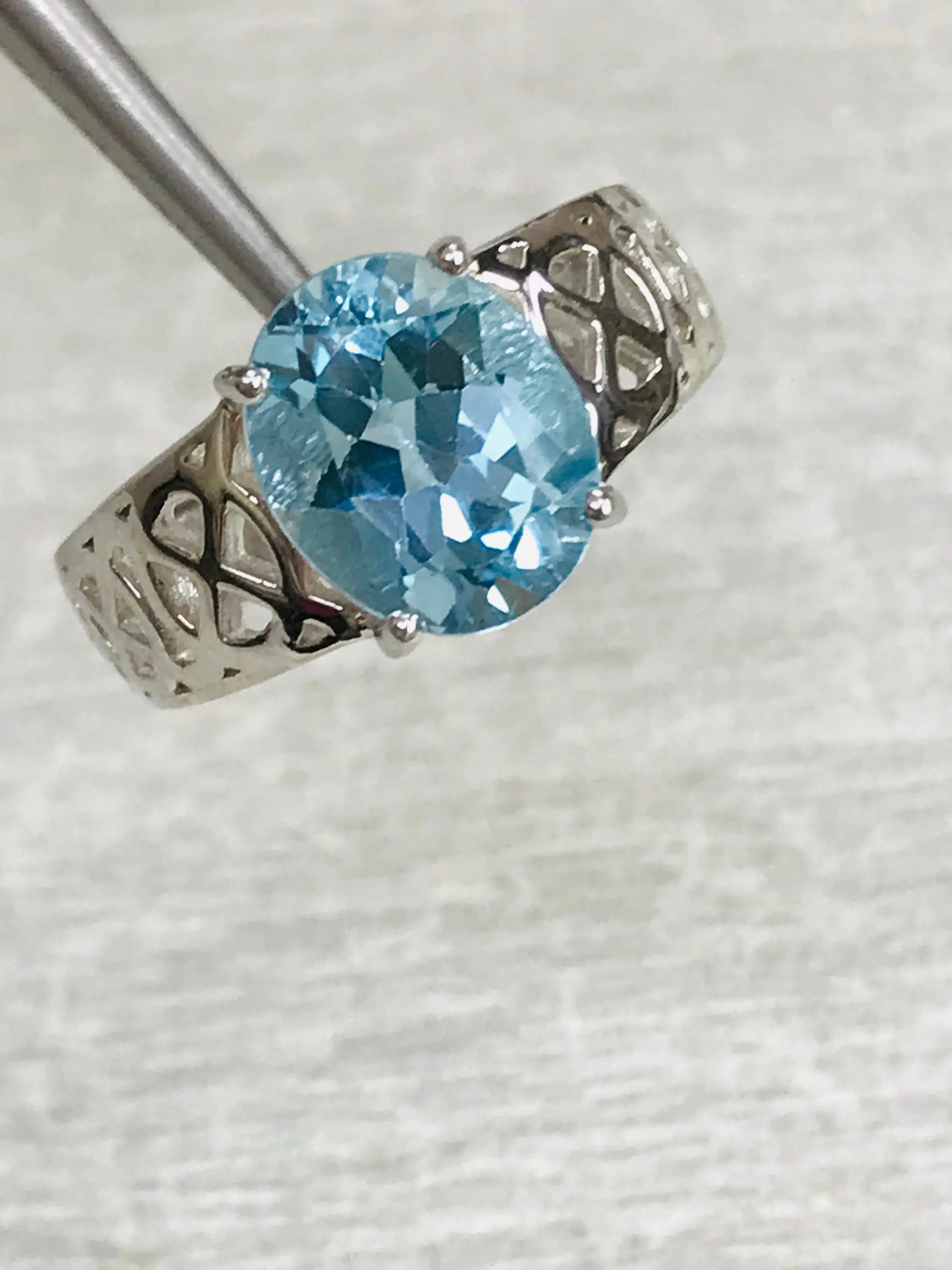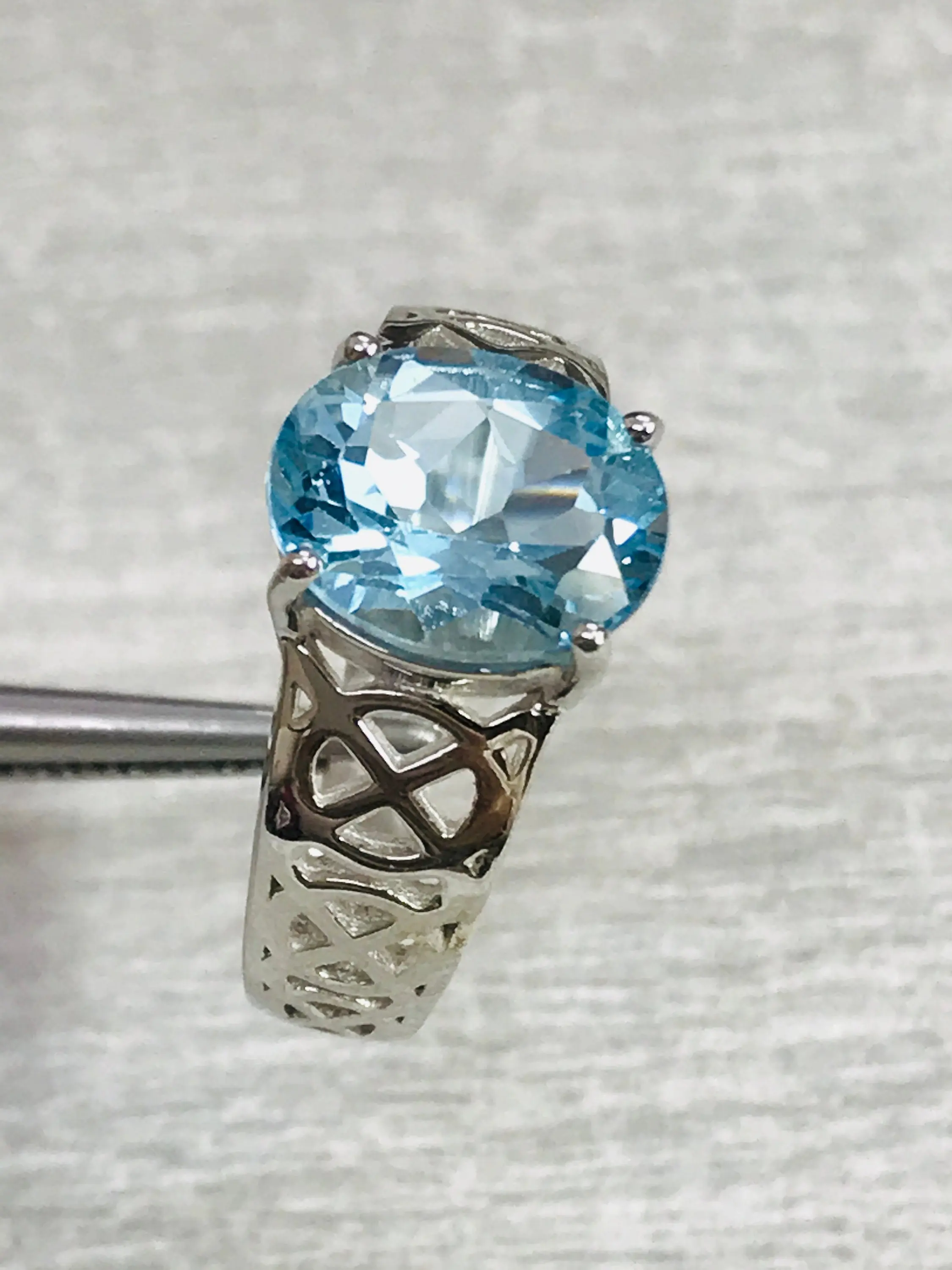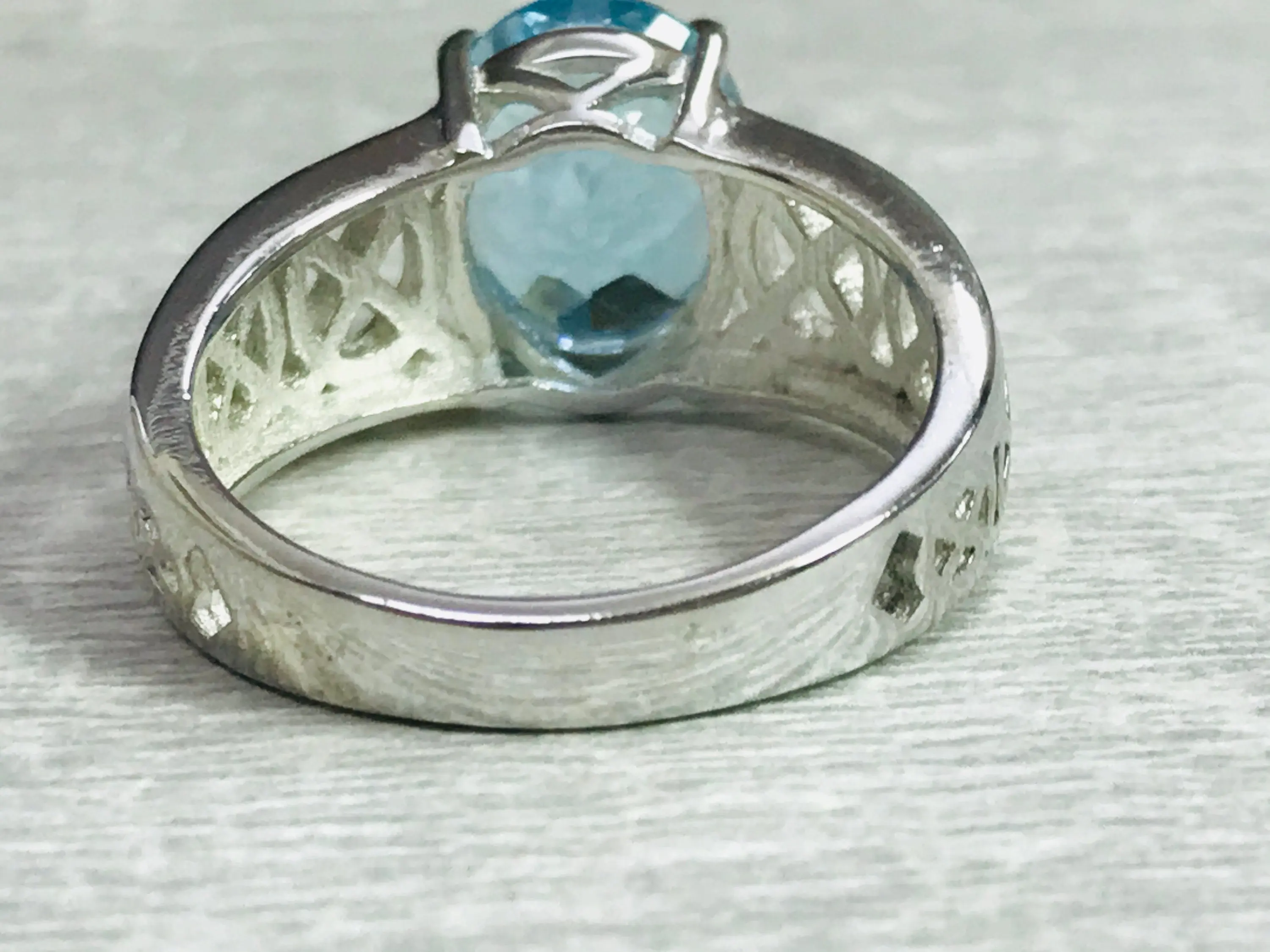 THROAT CHAKRA BLUETOPAZ ,Celtic Knots ,December Birthstone ,Hand Forged Ring ,crystal healing Topaz, Unisex ring
