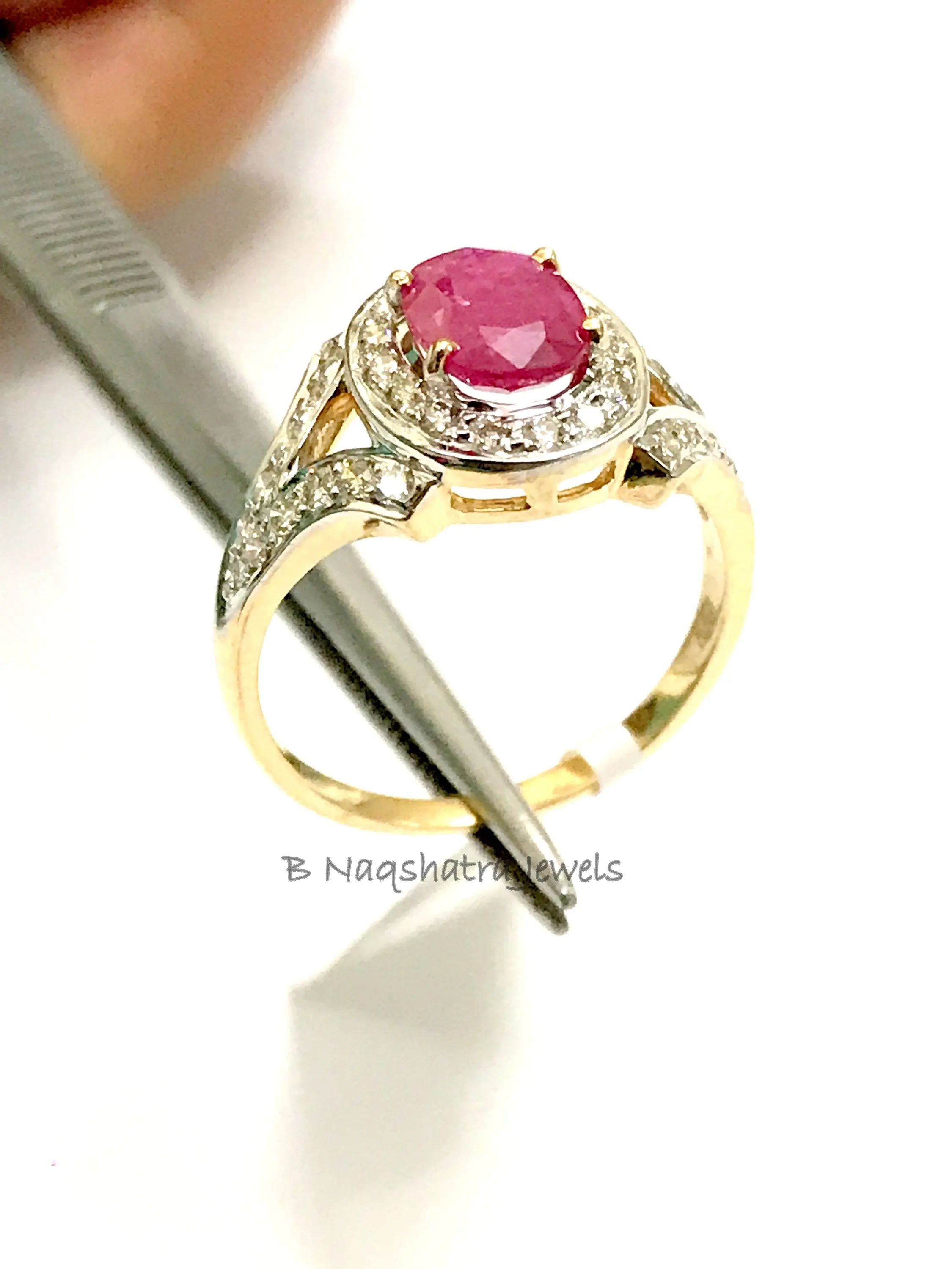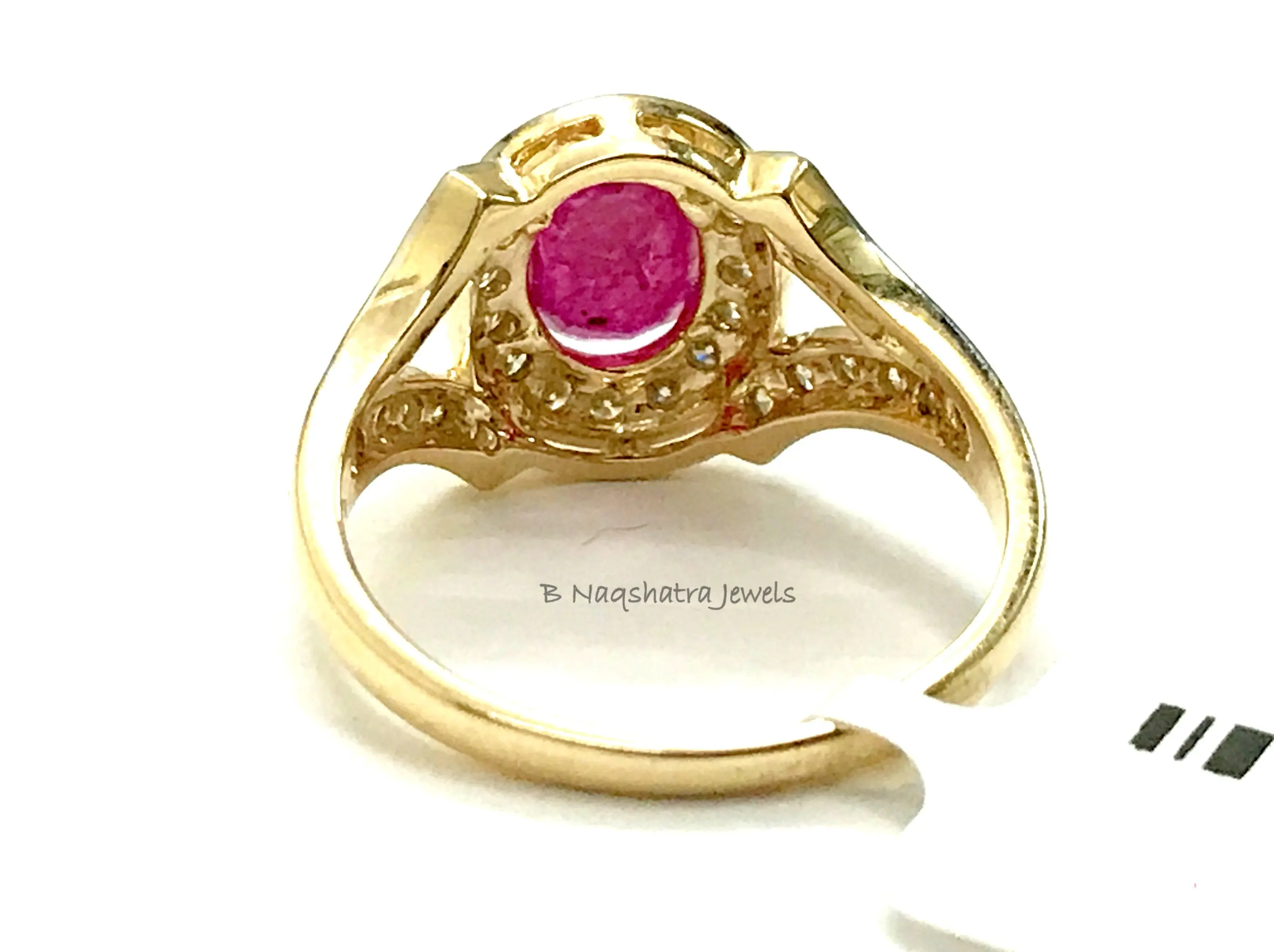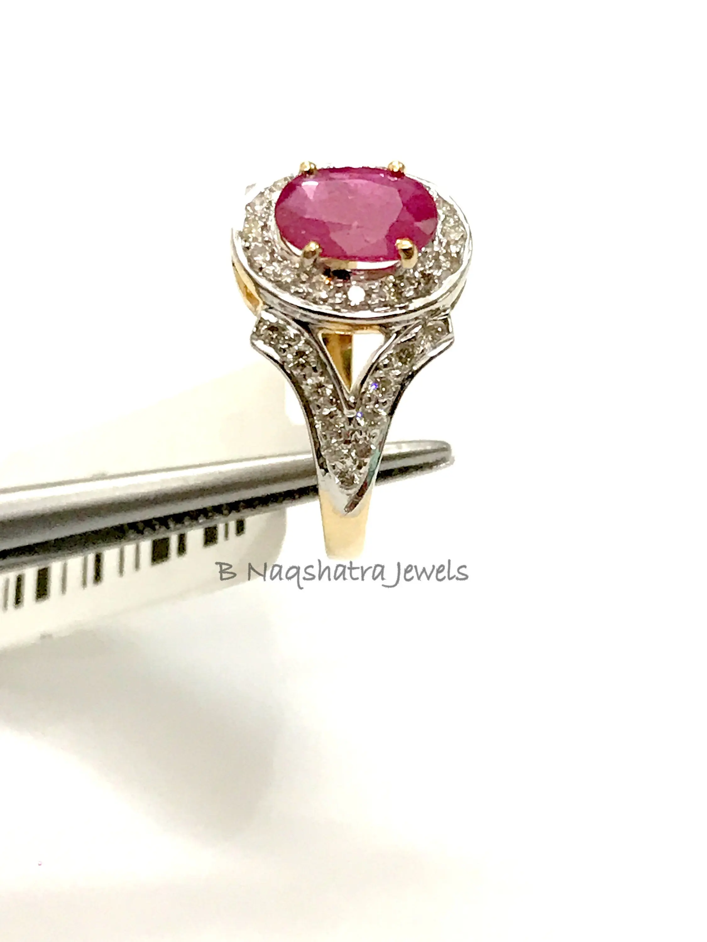 RUBY DIAMOND HALO Ring, July Birthstone , Diamond Cluster 14k Gold Ring, Beautiful and Elegant Design For Bridal Engagement Ring.....