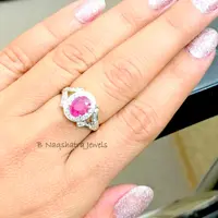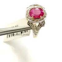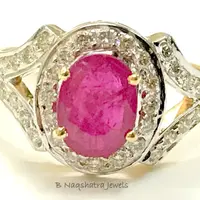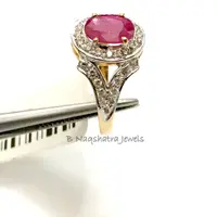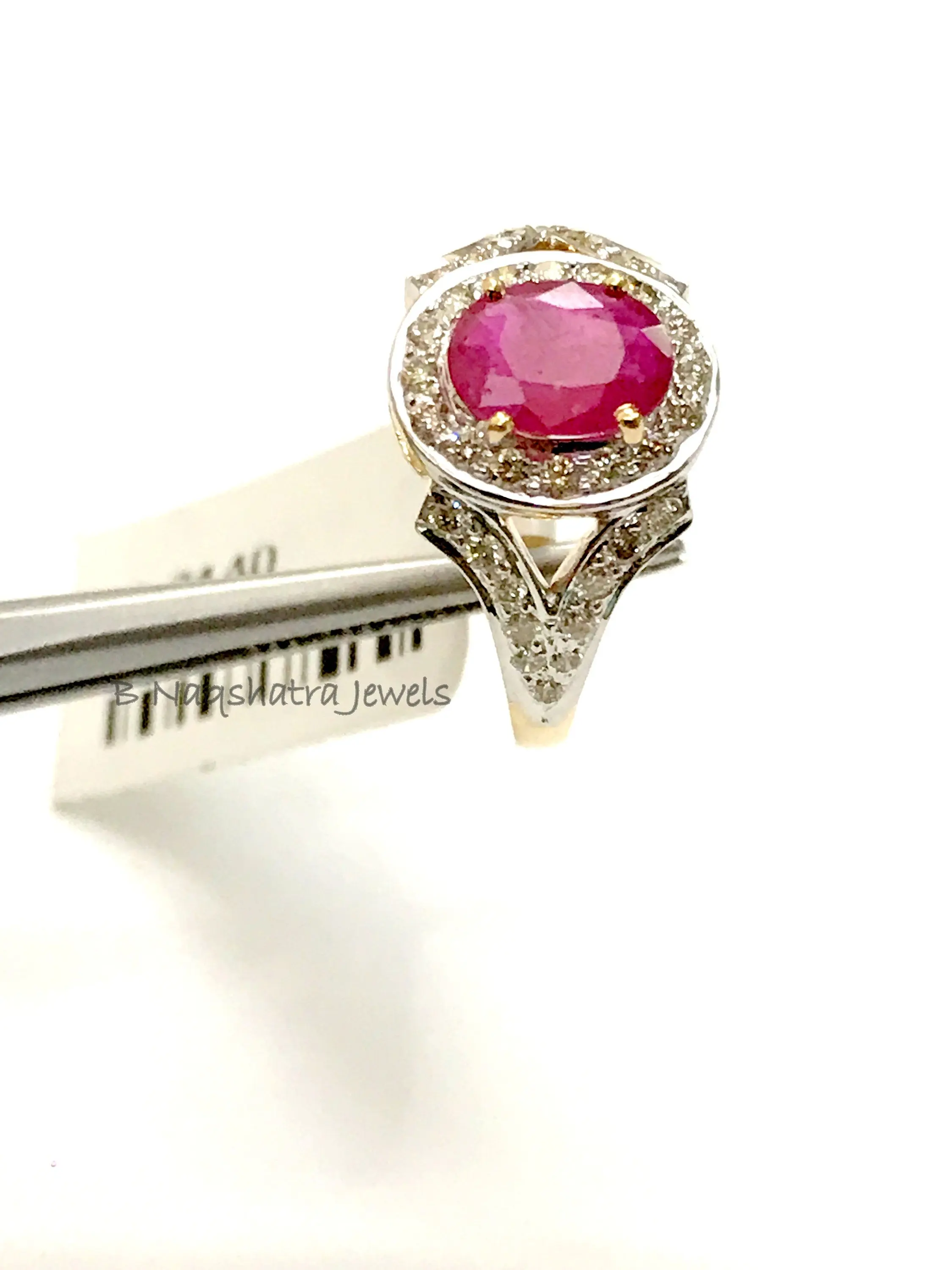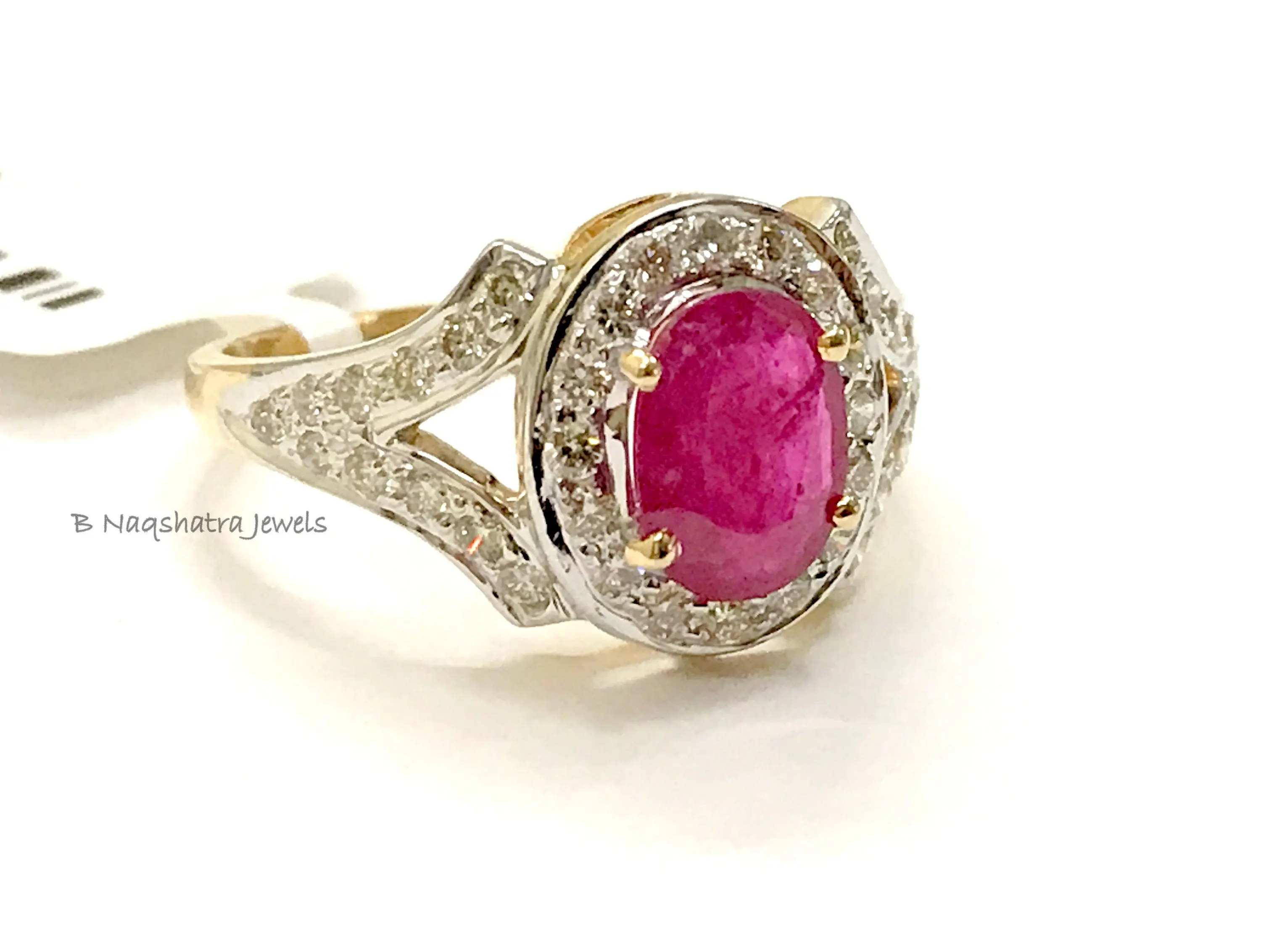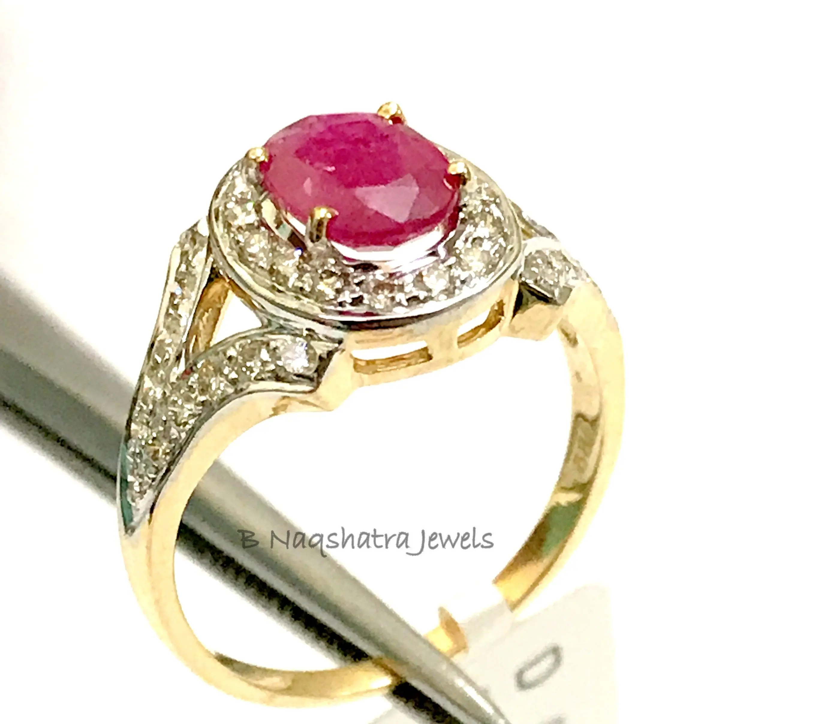 RUBY DIAMOND HALO Ring, July Birthstone , Diamond Cluster 14k Gold Ring, Beautiful and Elegant Design For Bridal Engagement Ring.....