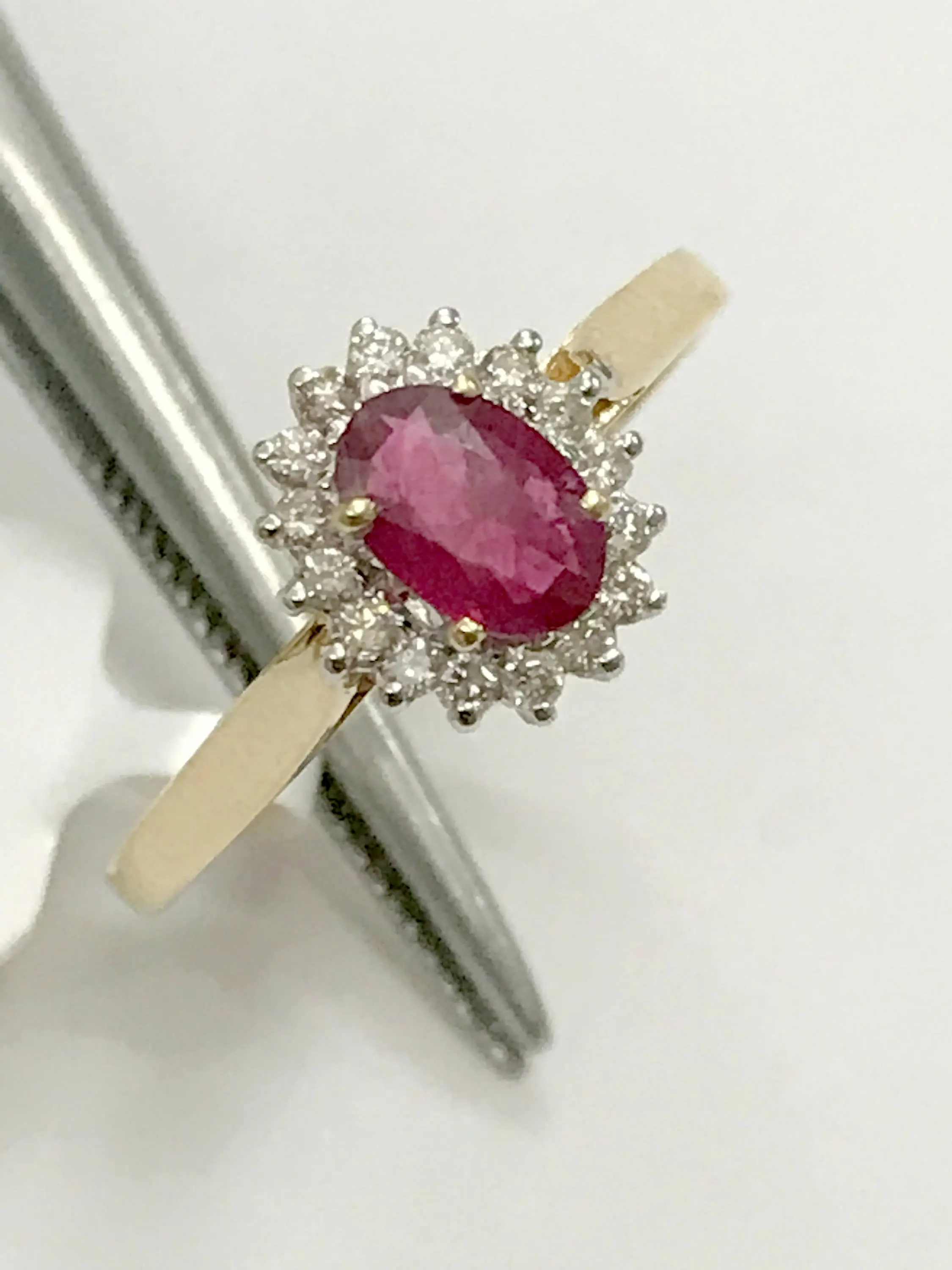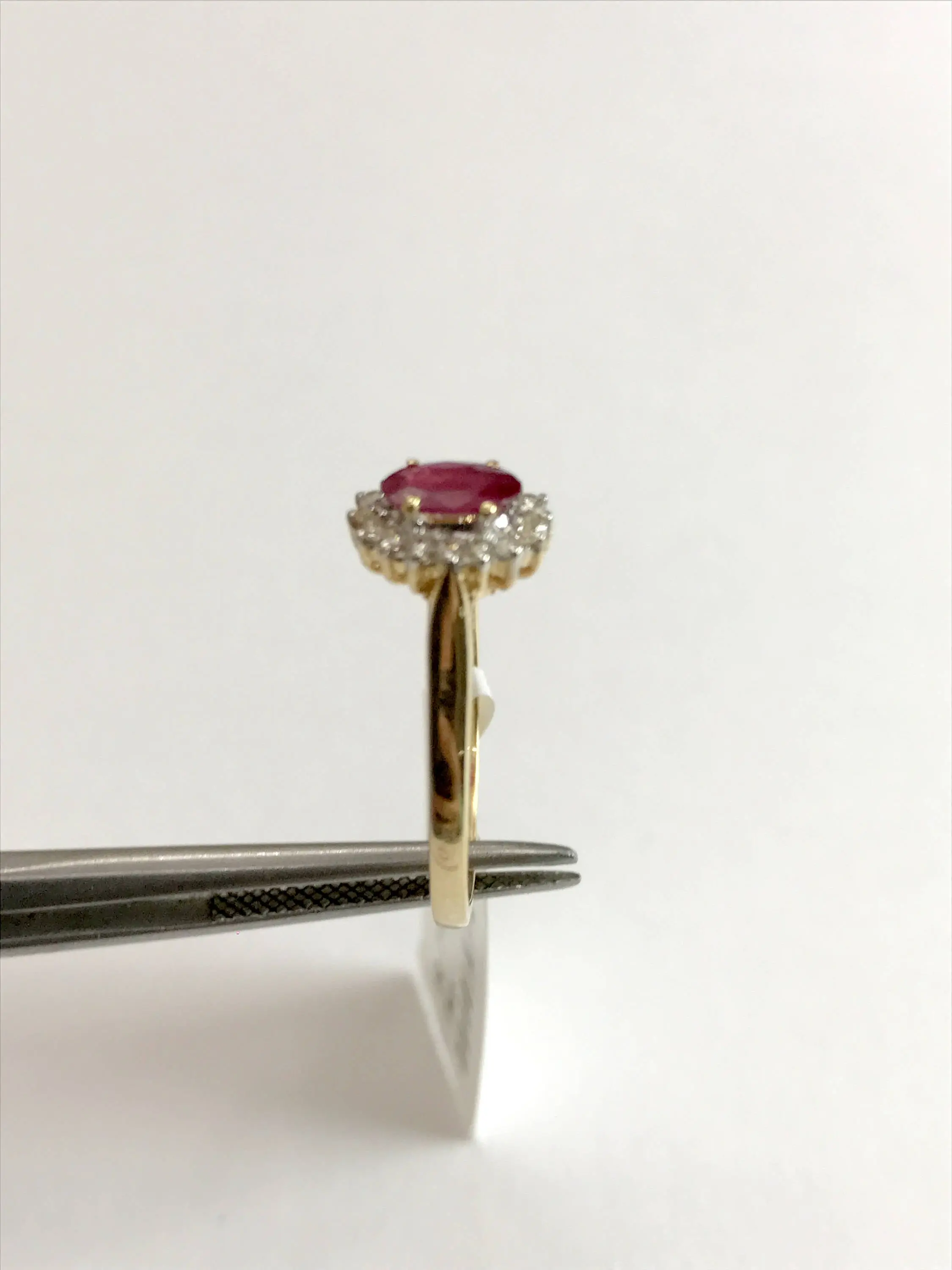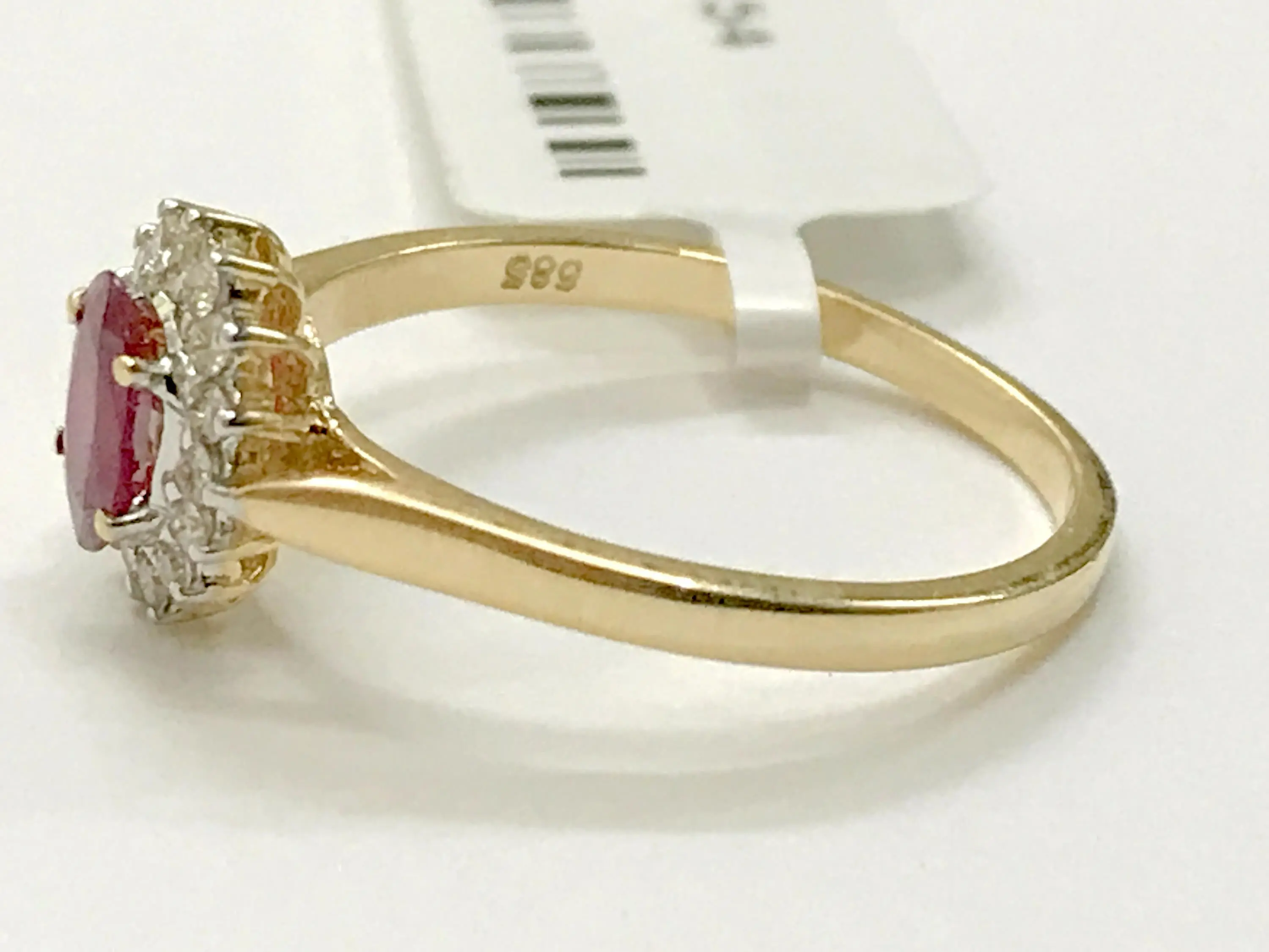 RUBY DIAMOND RING, 14k Diamond Ring, Hand Made, Diamond Halo Ring, 14k Ruby Ring, Ruby Diamond Ring, yellow Gold Ring