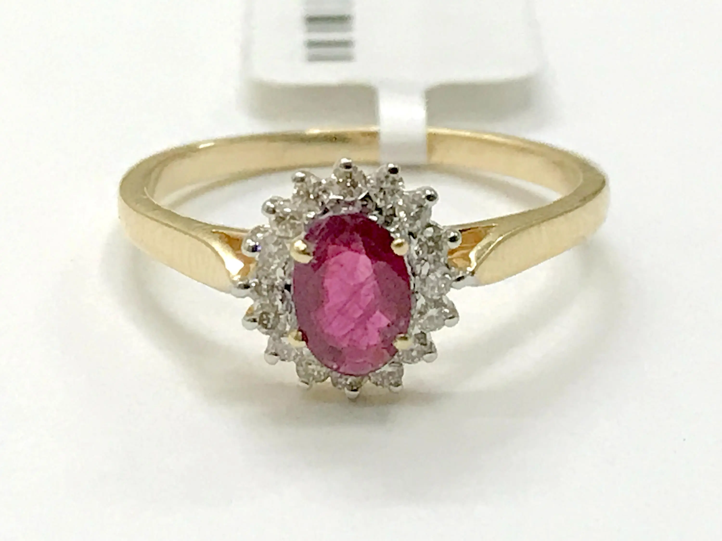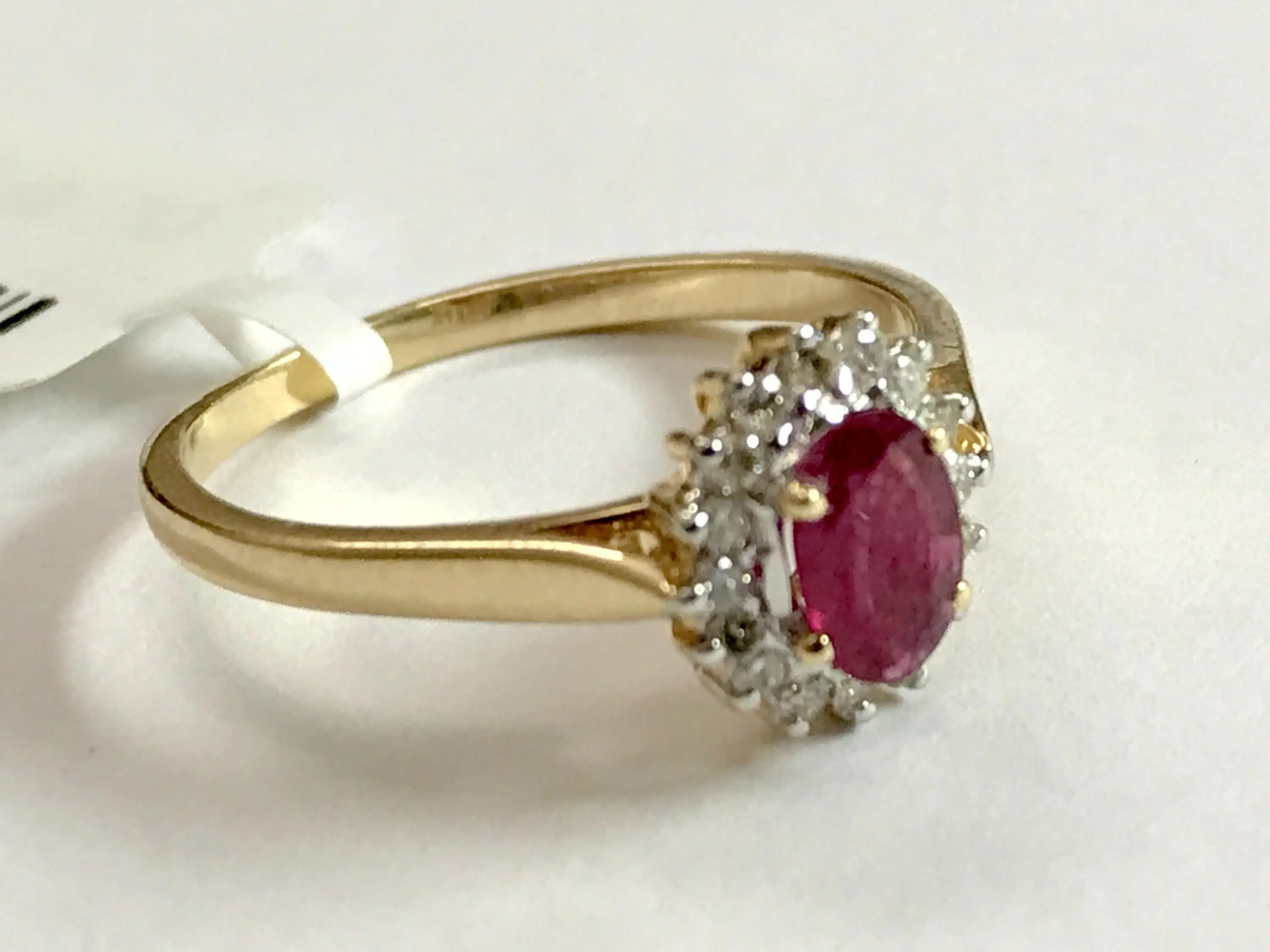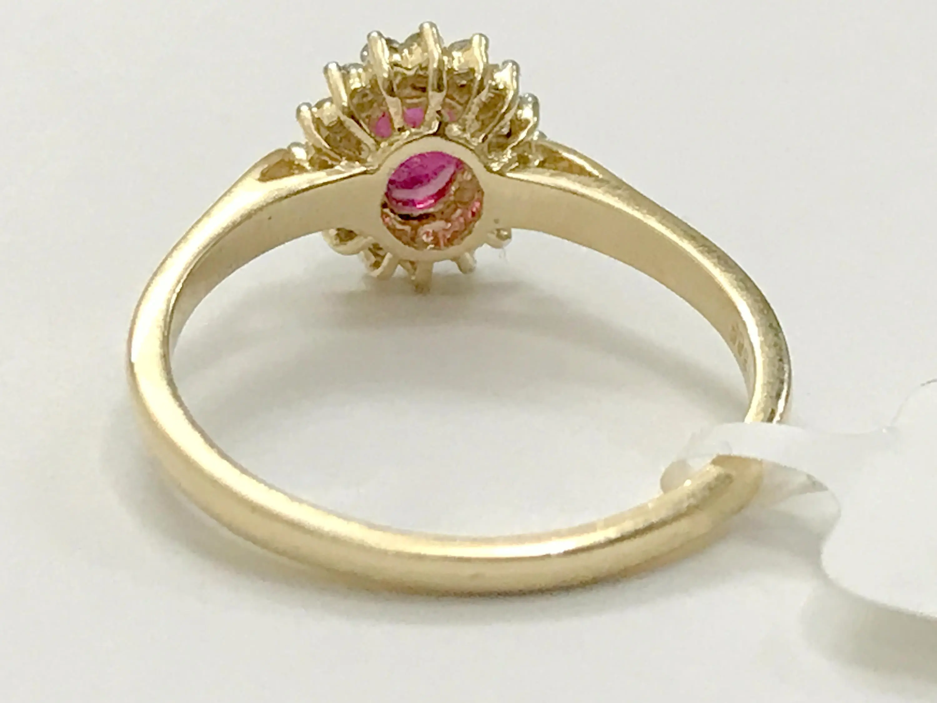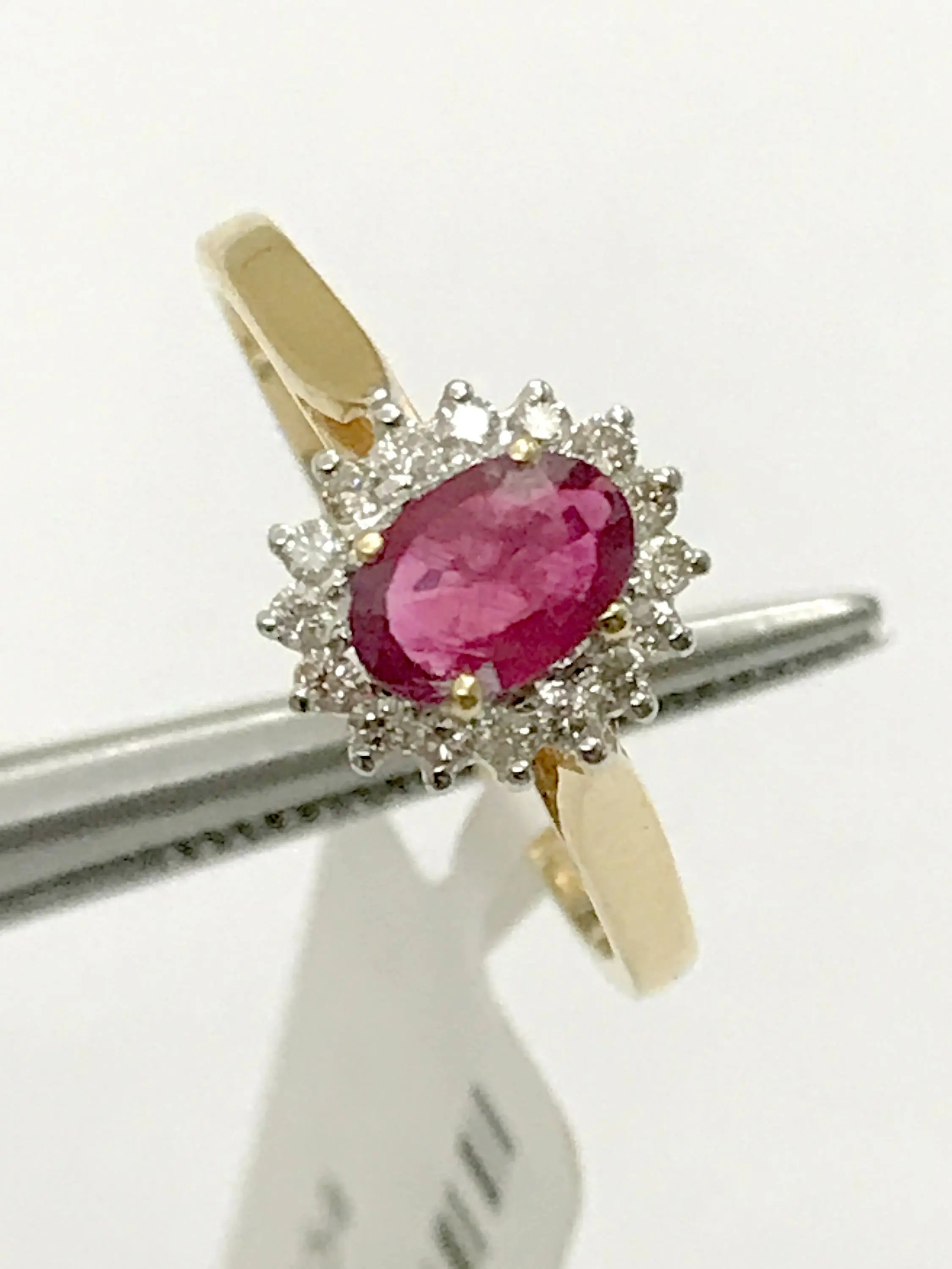 RUBY DIAMOND RING, 14k Diamond Ring, Hand Made, Diamond Halo Ring, 14k Ruby Ring, Ruby Diamond Ring, yellow Gold Ring