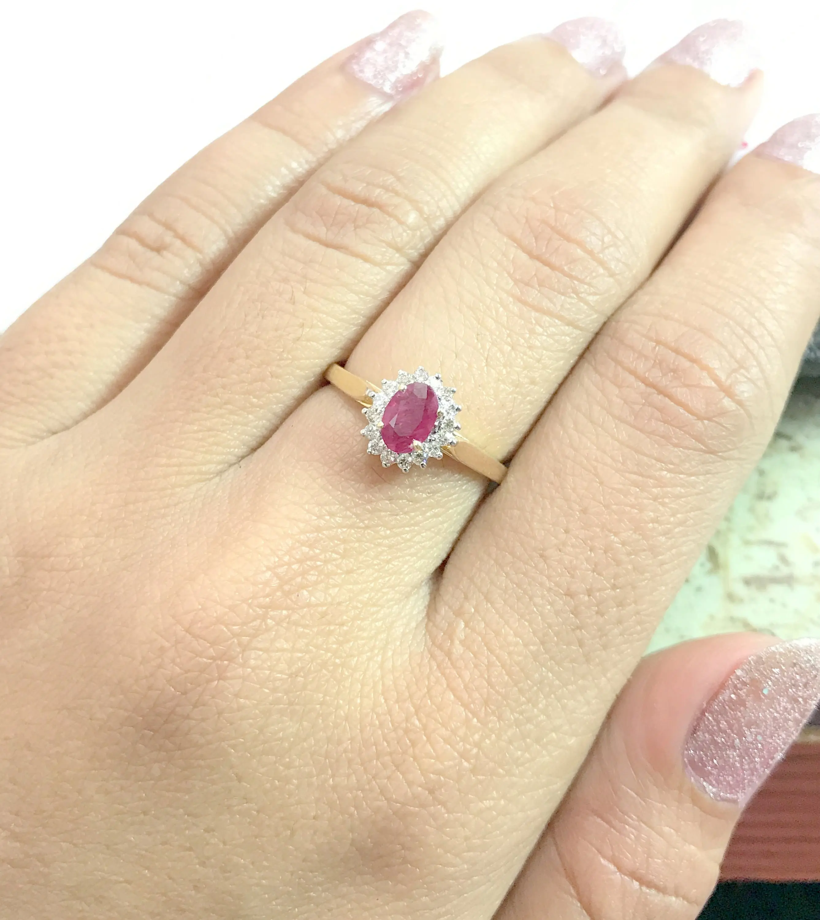Elegant ruby engagement ring, 14k solid gold ring, with natural diamonds around ....................