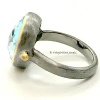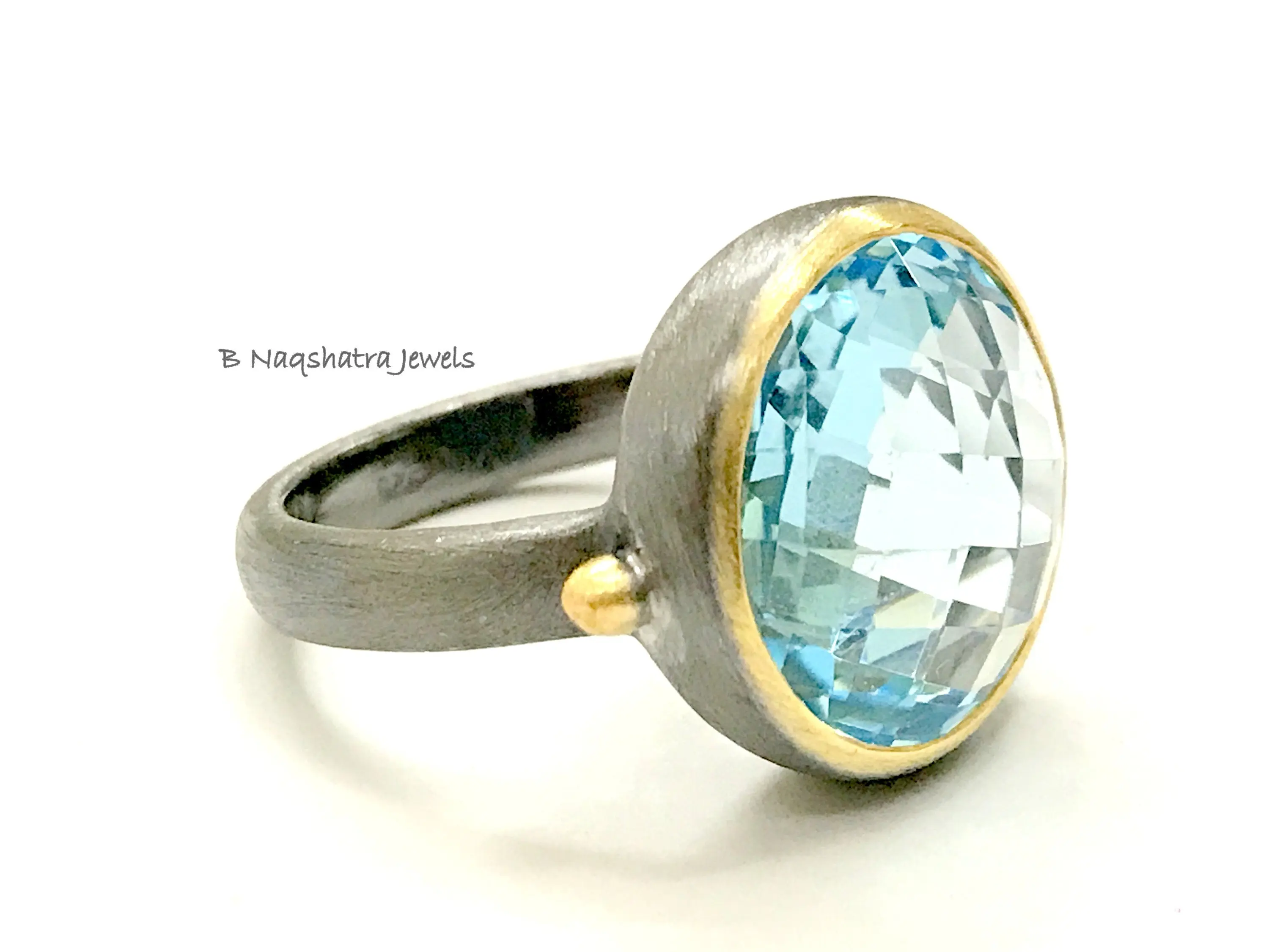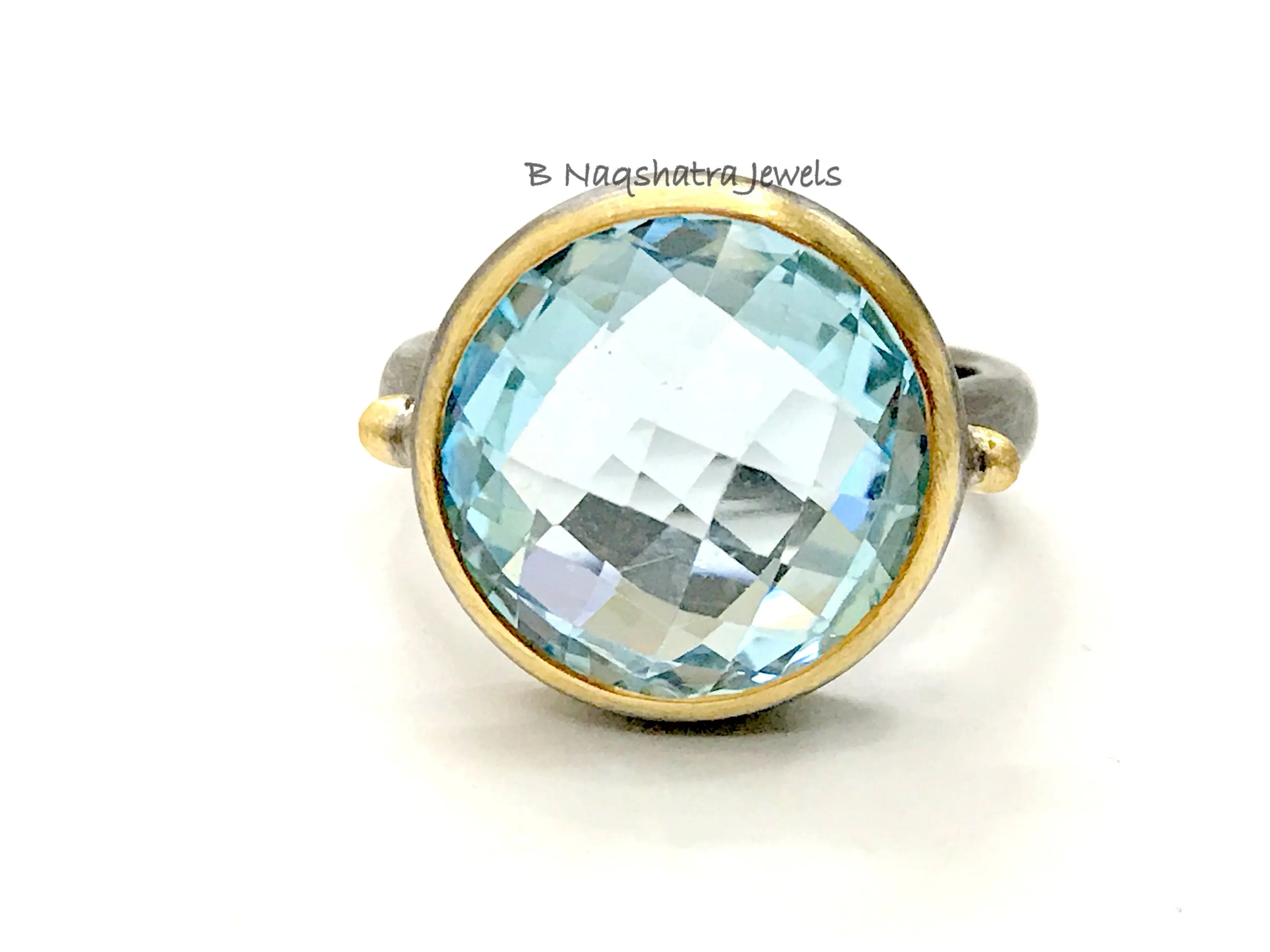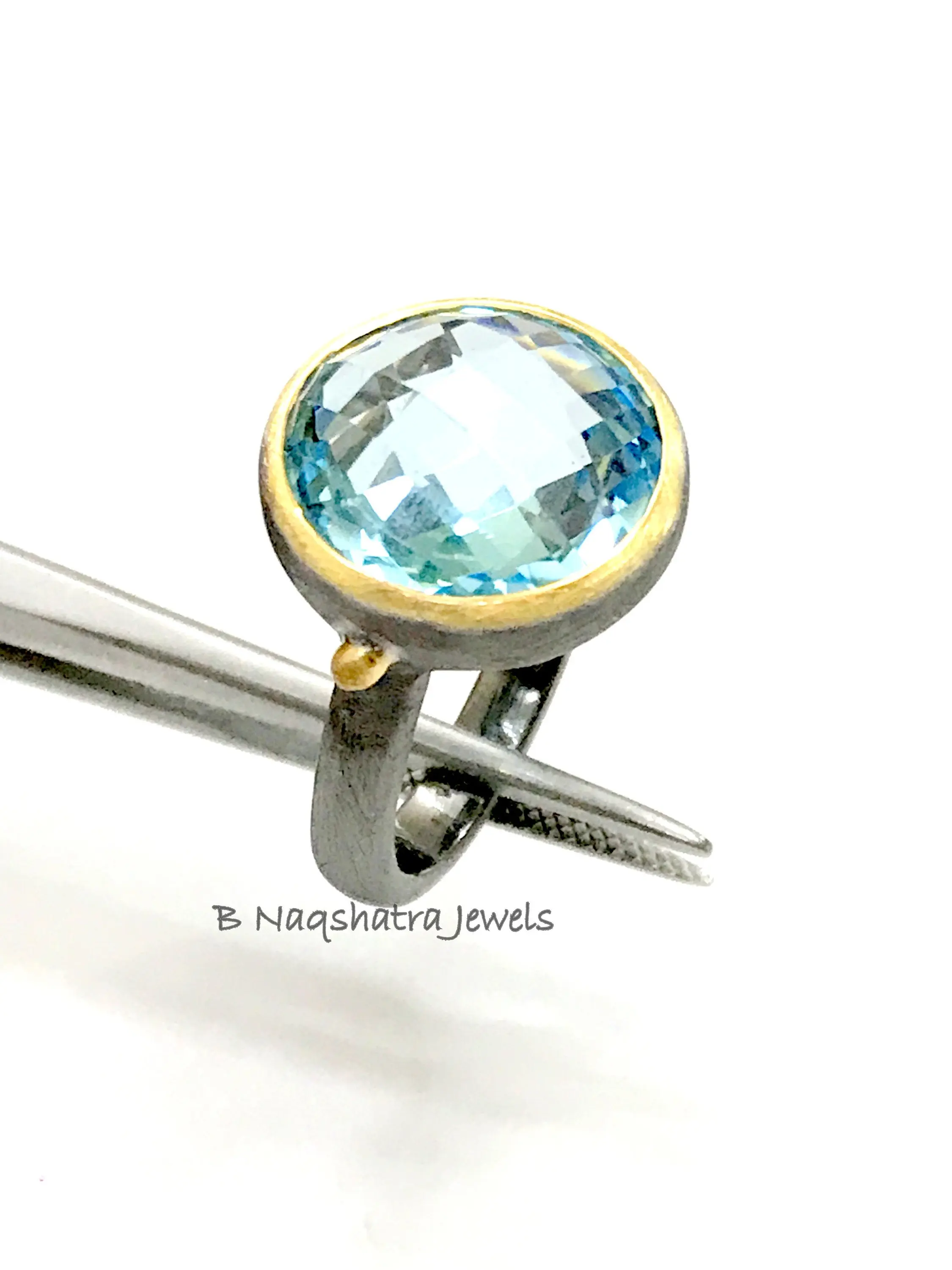 BLUE TOPAZ SILVER Ring ,Matte and Antique Finish Men Ring , Unisex Ring Checkers cut , December Birthstone , Best Valentine gift for loved