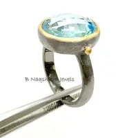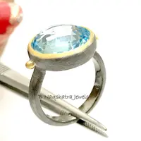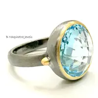 92.5 sterling silver rings handmade carved design studded with semi - precious stone as Blue topaz .....