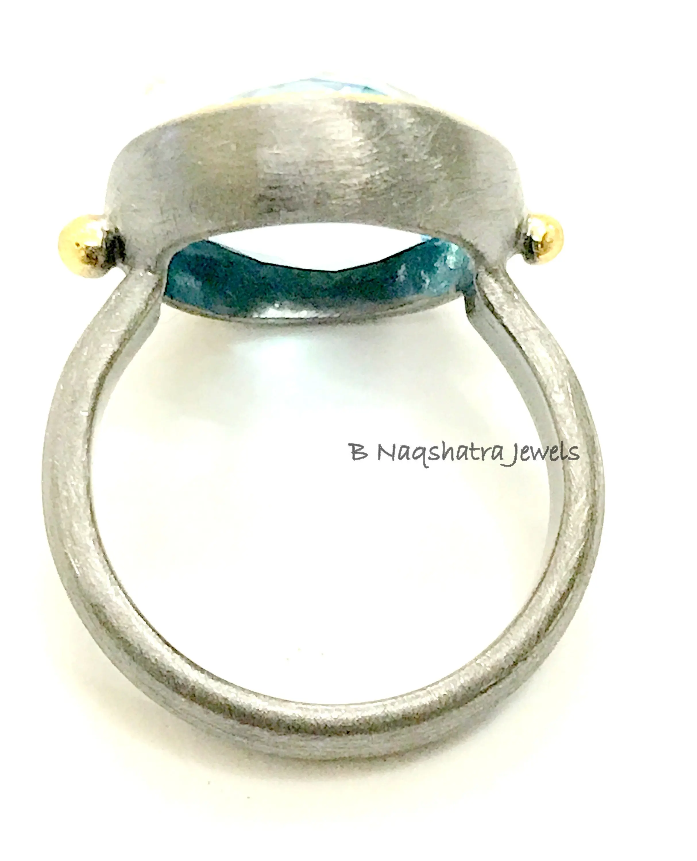 BLUE TOPAZ SILVER Ring ,Matte and Antique Finish Men Ring , Checkers cut , December Birthstone , Best Valentine gift for loved ones....
