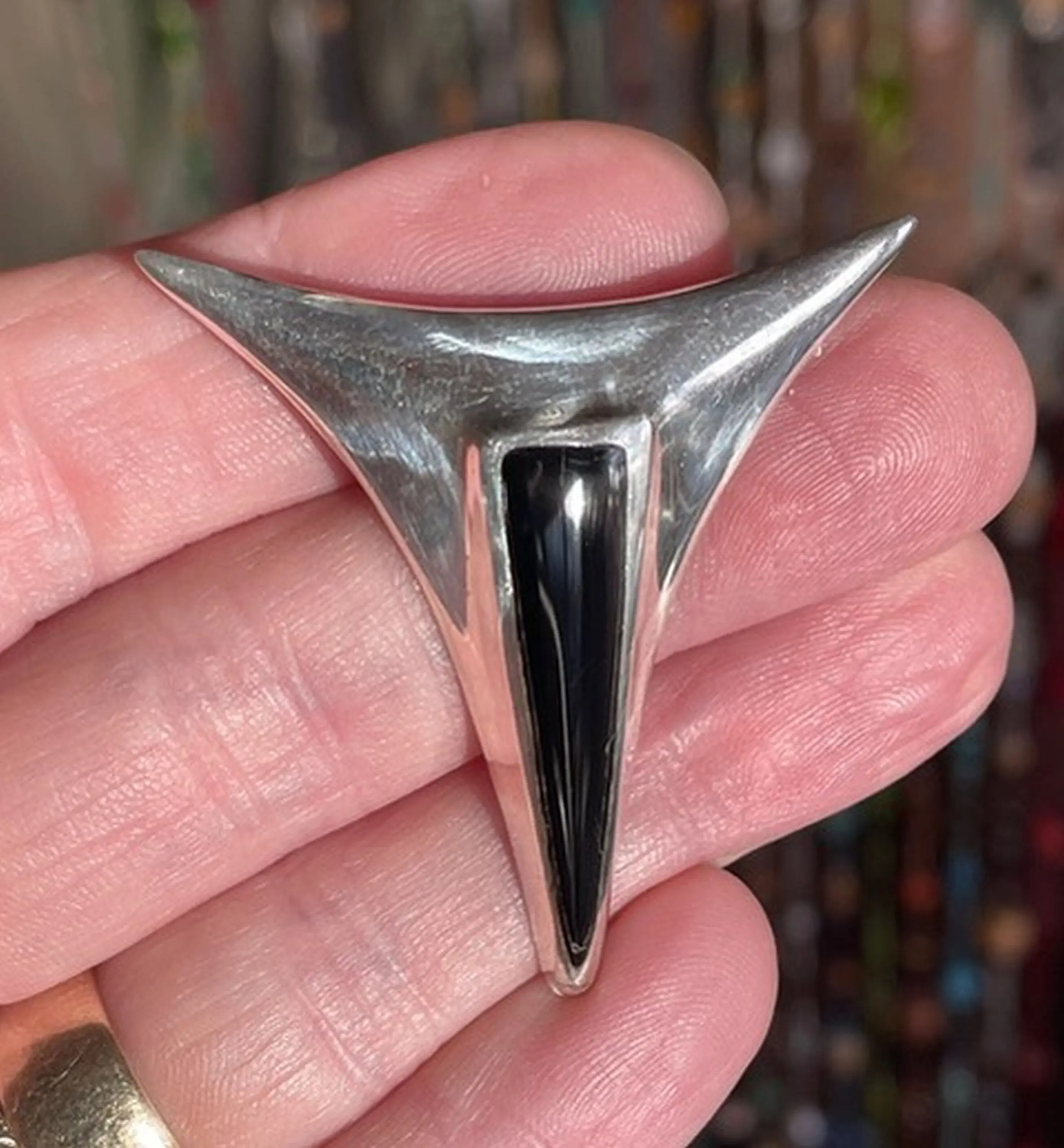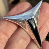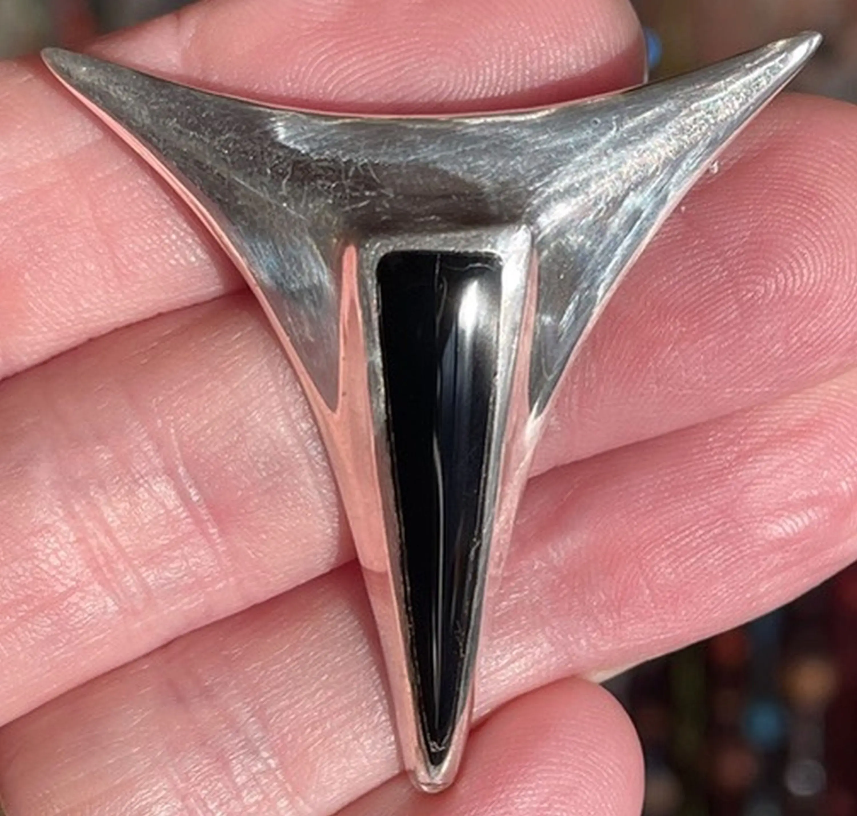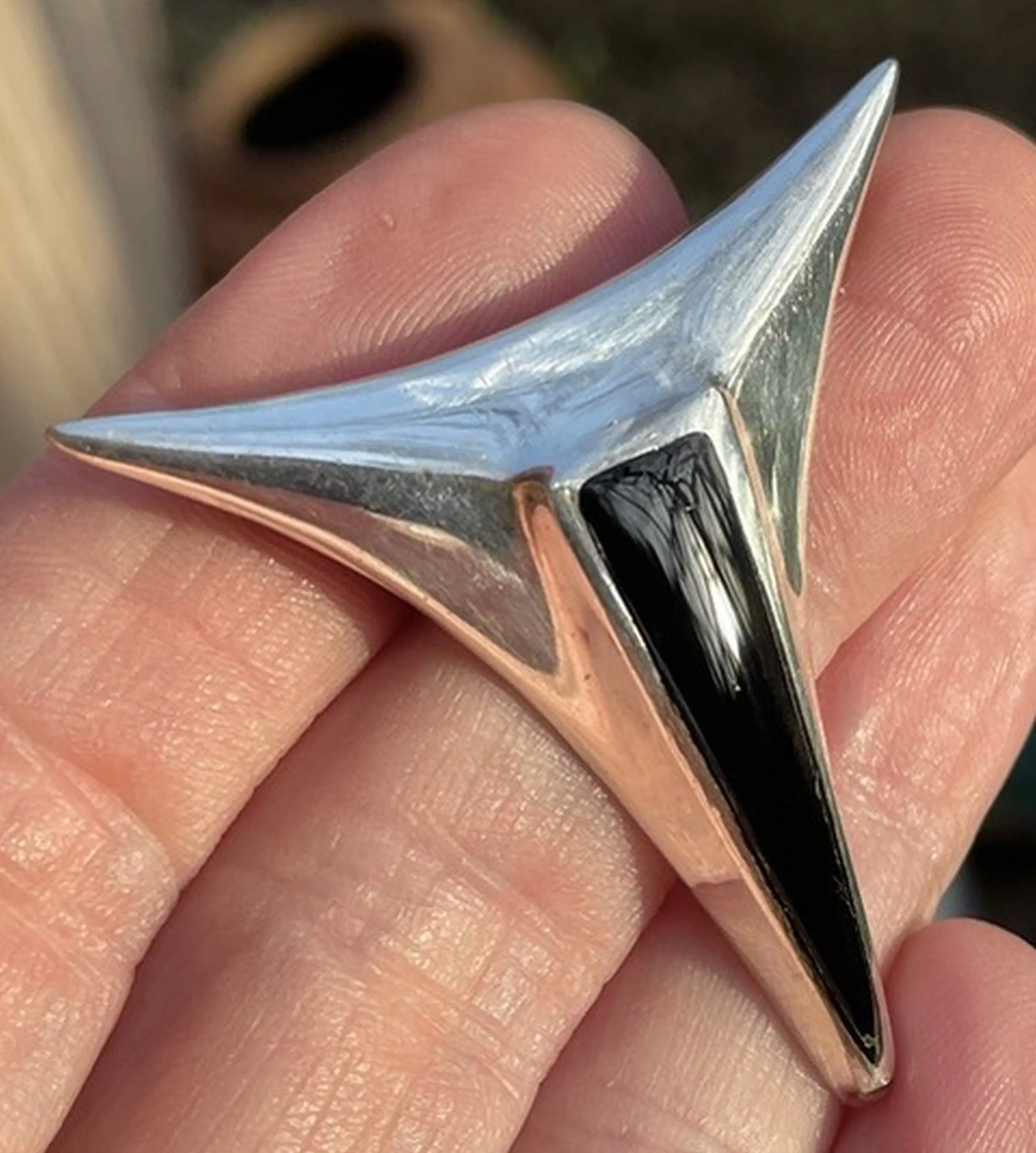 Space-Age Femininity—Vintage Brooch , 925 Sterling Silver , Black Enamel Brooch , Feminine Jewelry , Promise Gift for her .