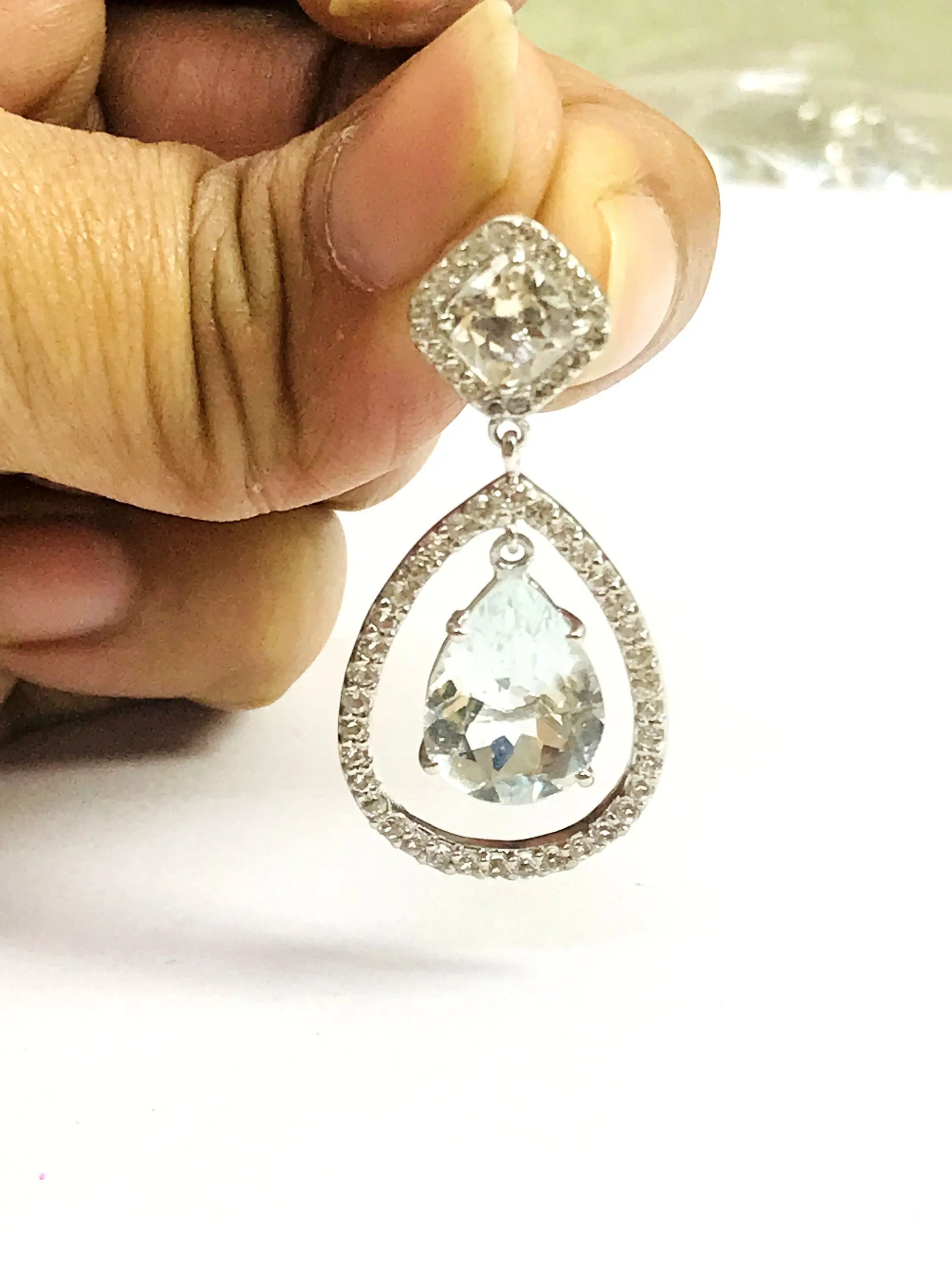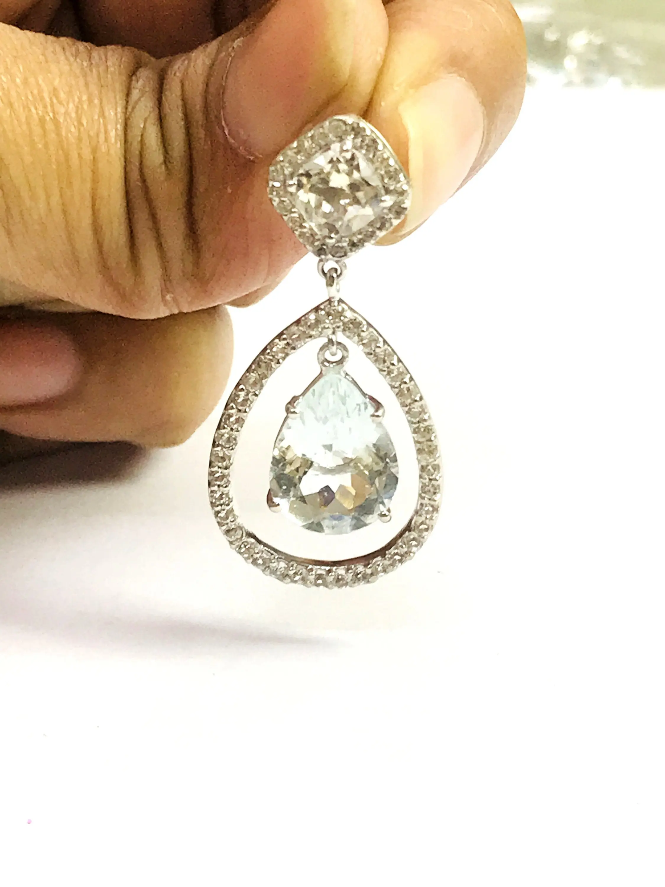 AQUAMARINE WHITE TOPAZ Earrings ,March birthstone ,Dangle earrings ,seawater earring,Natural Aquamarine, Sky Blue Drop Earrings ..