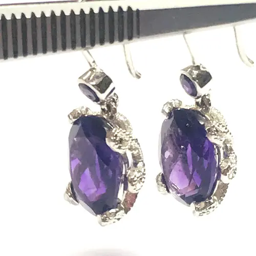 Gorgeous Sterling Silver earring in a beautiful Purple Amethyst , which makes a lovely birthstone earring for those February Birthday Gals.