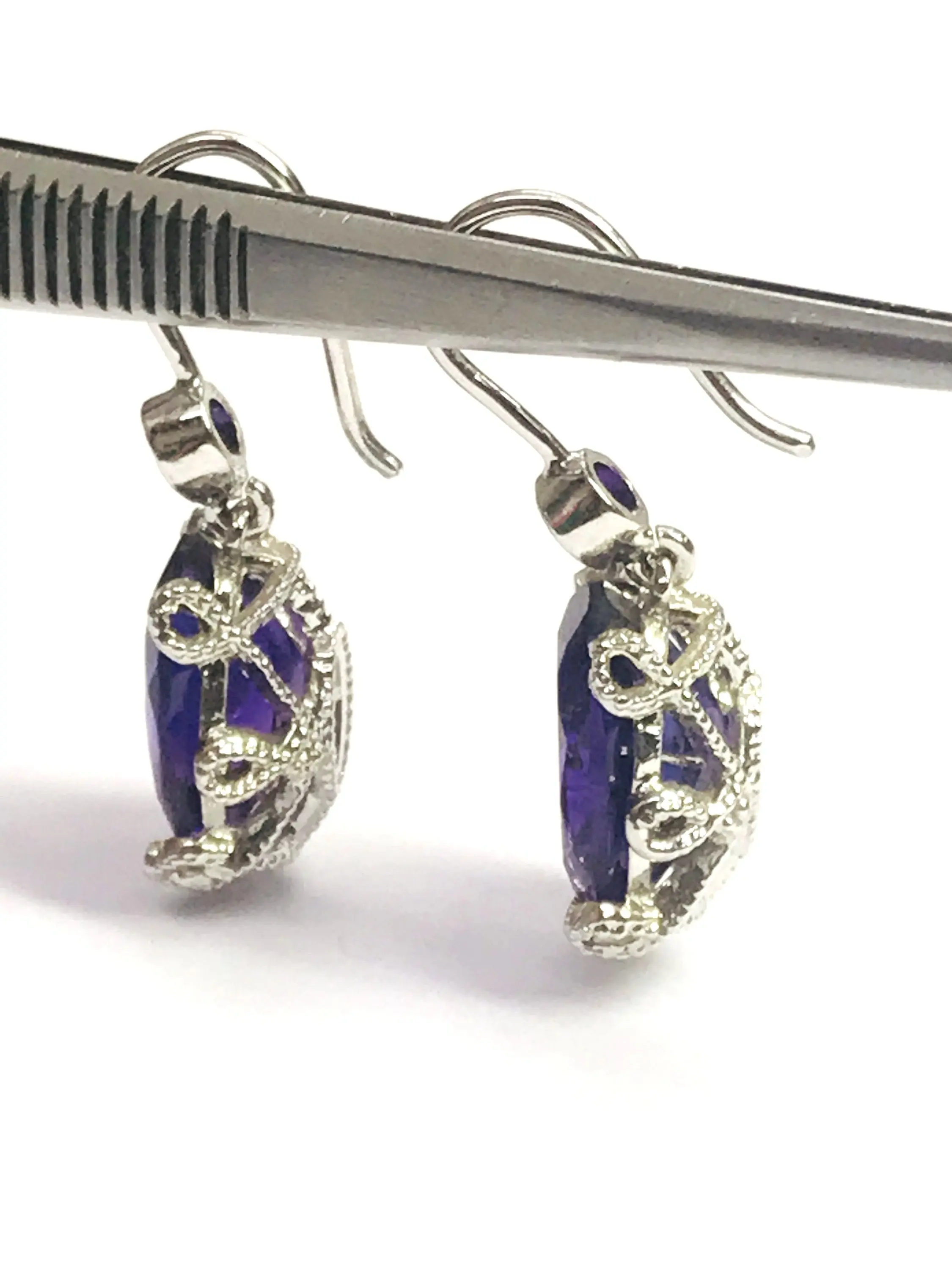 AMETHYST DANGLE SILVER Earrings, Purple Amethyst, Wired earrings ,Hook earrings , Amethyst Oval, Valentine's Christmas Gift.
