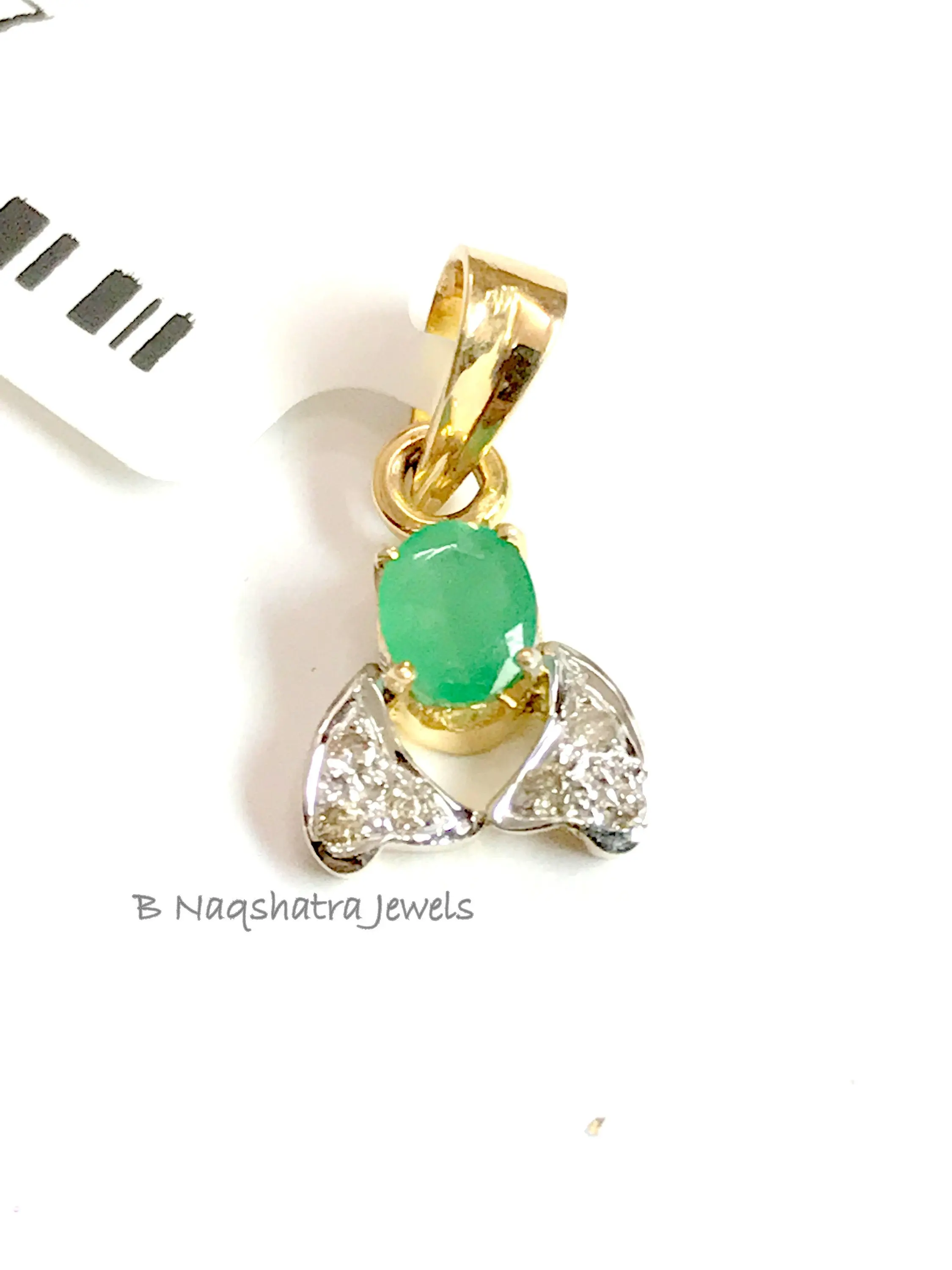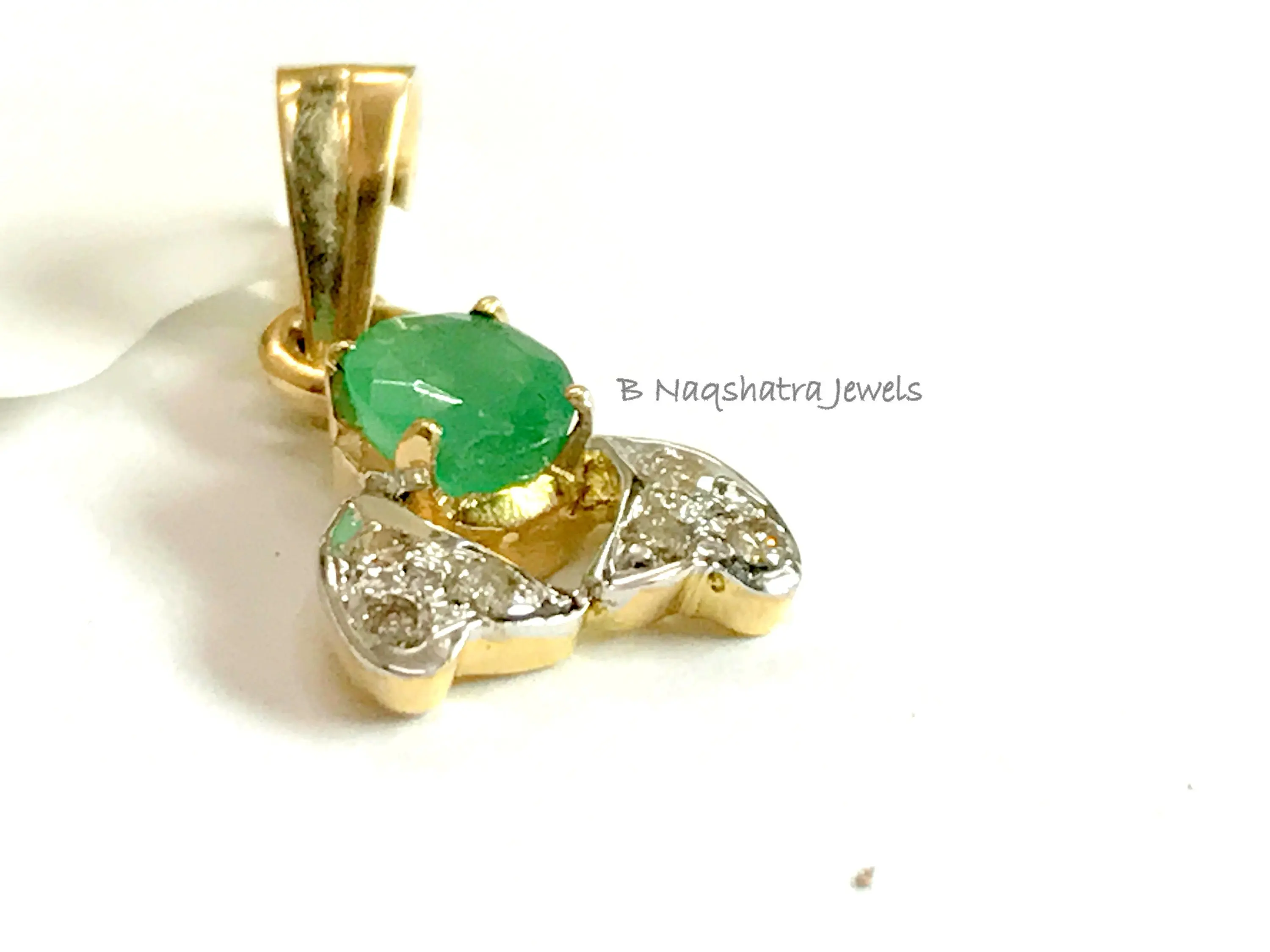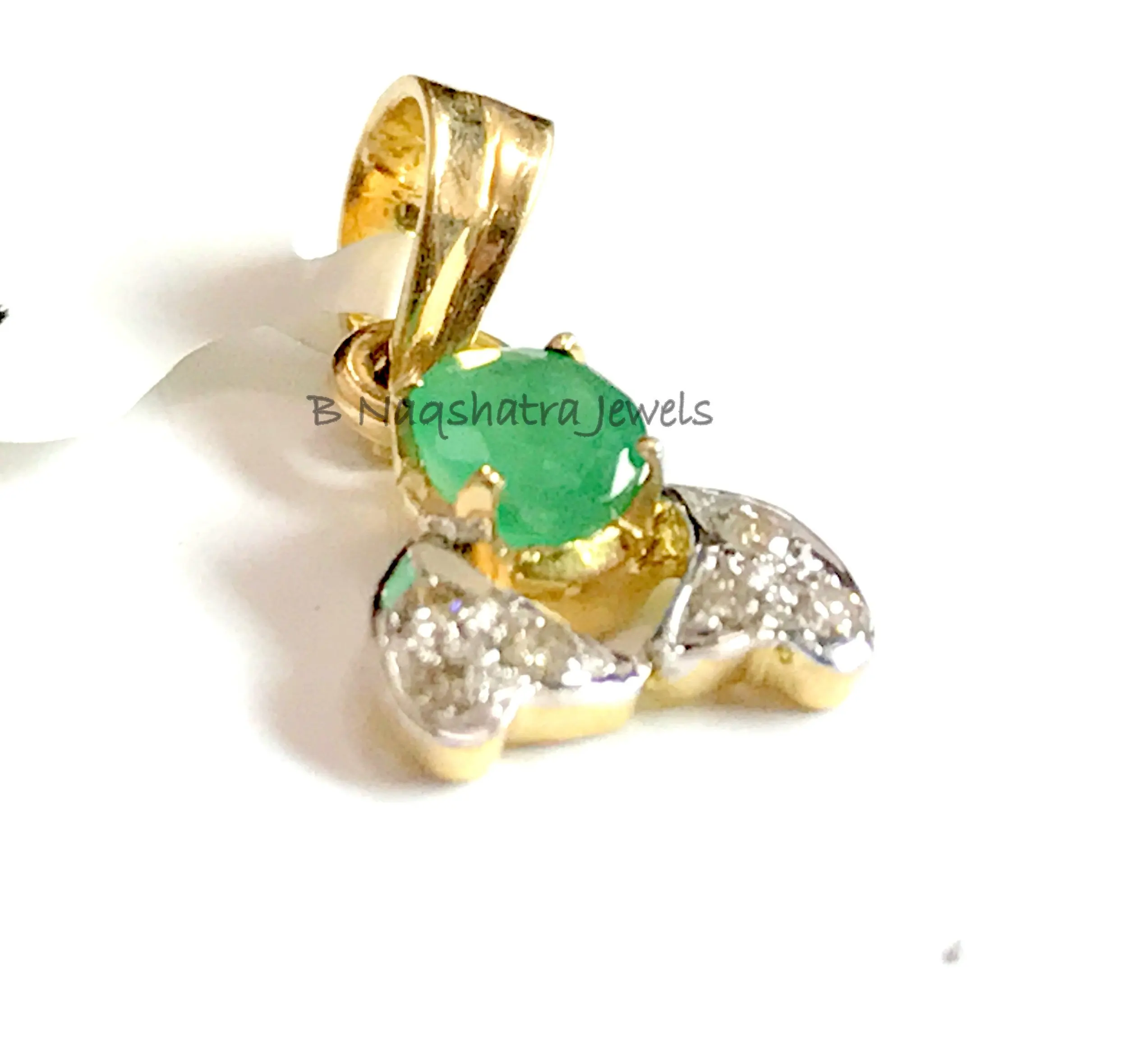 EMERALD DIAMOND PENDANT, 14K Yellow Gold ,May Birthday gift, Emerald Anniversary, Best Gift For Love and friendship.