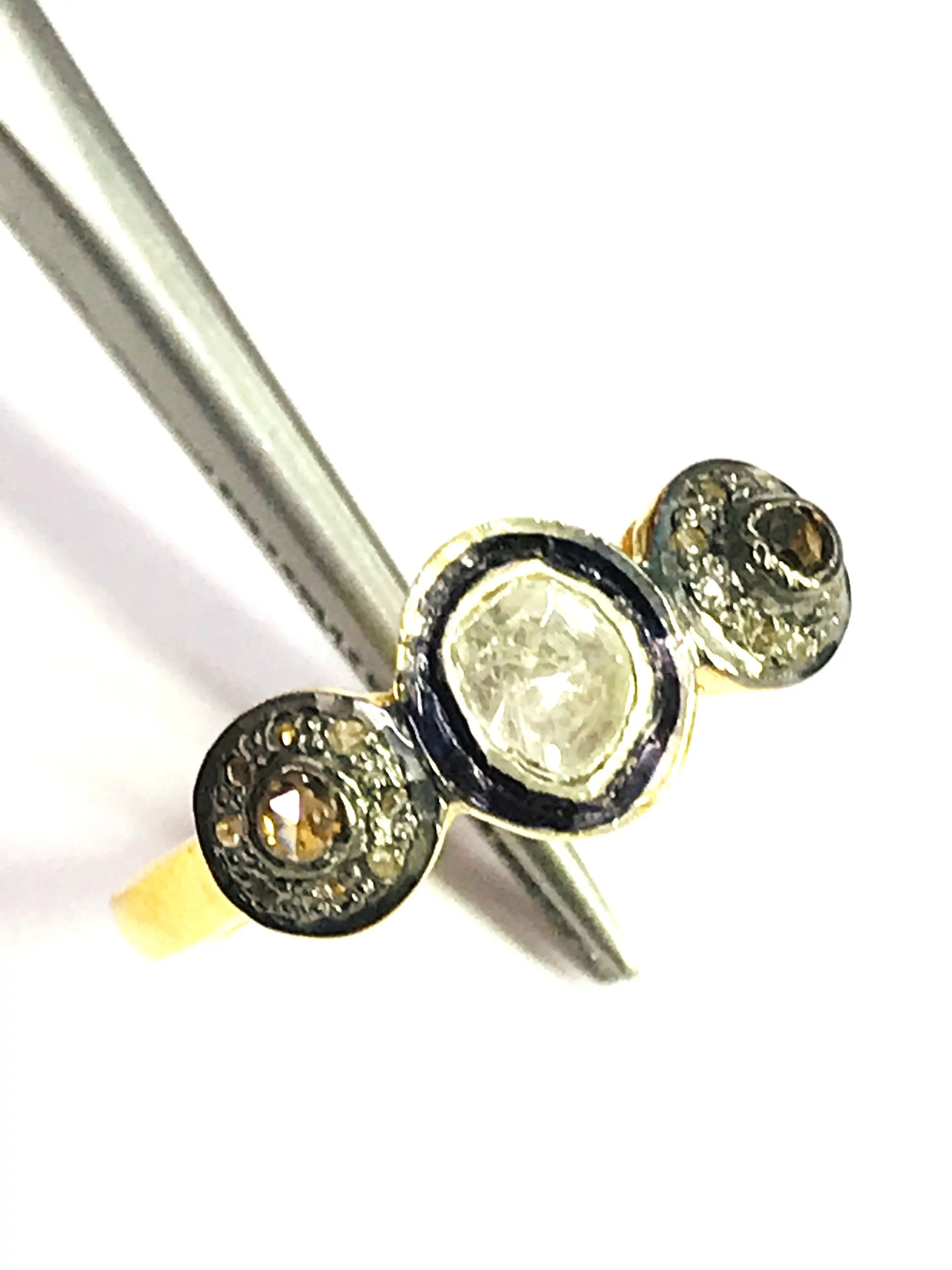 single solitaire hand cut diamond Eternity band ring studded with 100% natural Rose cut diamonds in pave set......and black rhodium and gold plated plated......................
