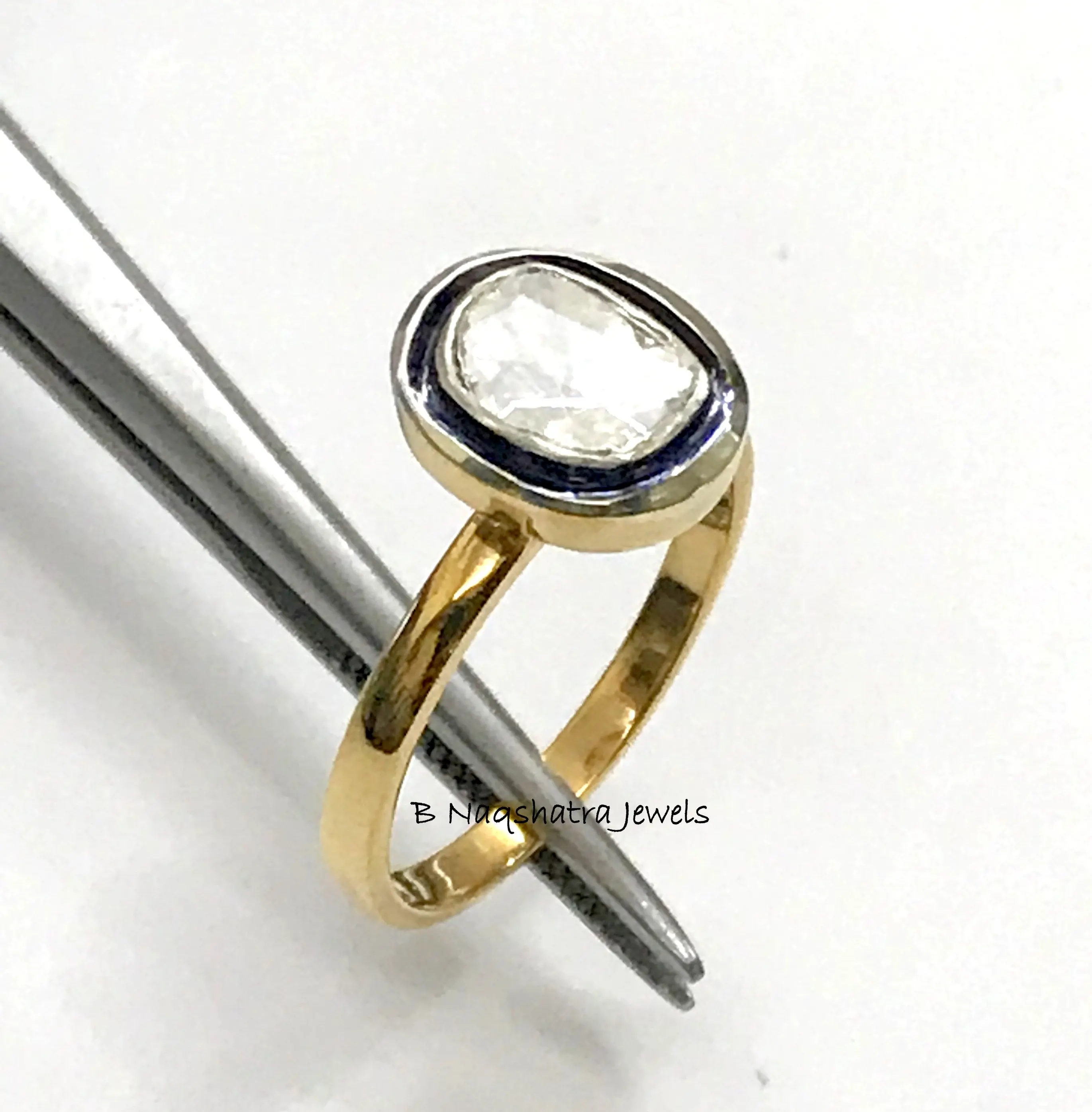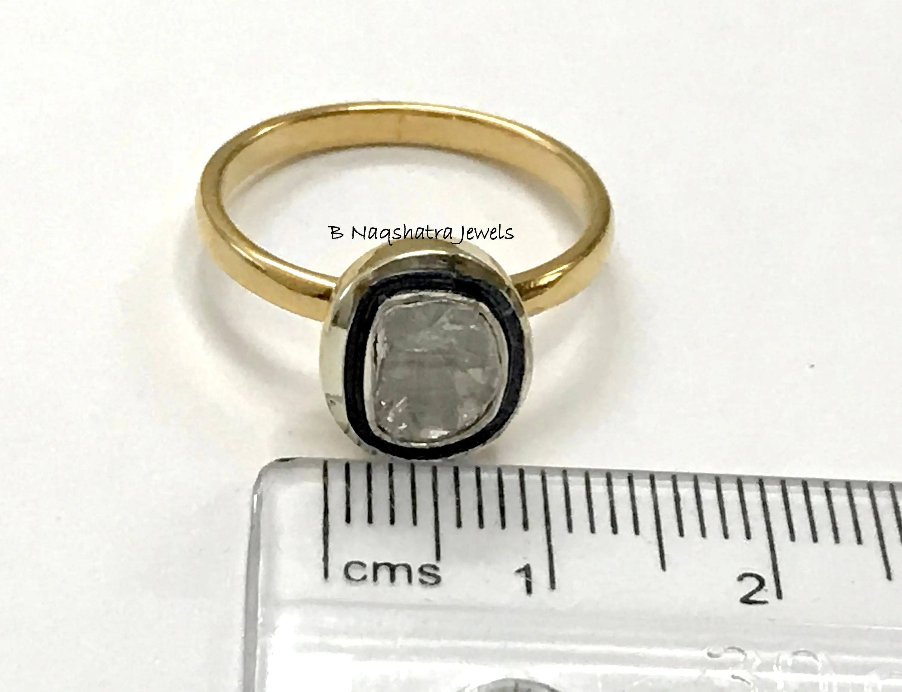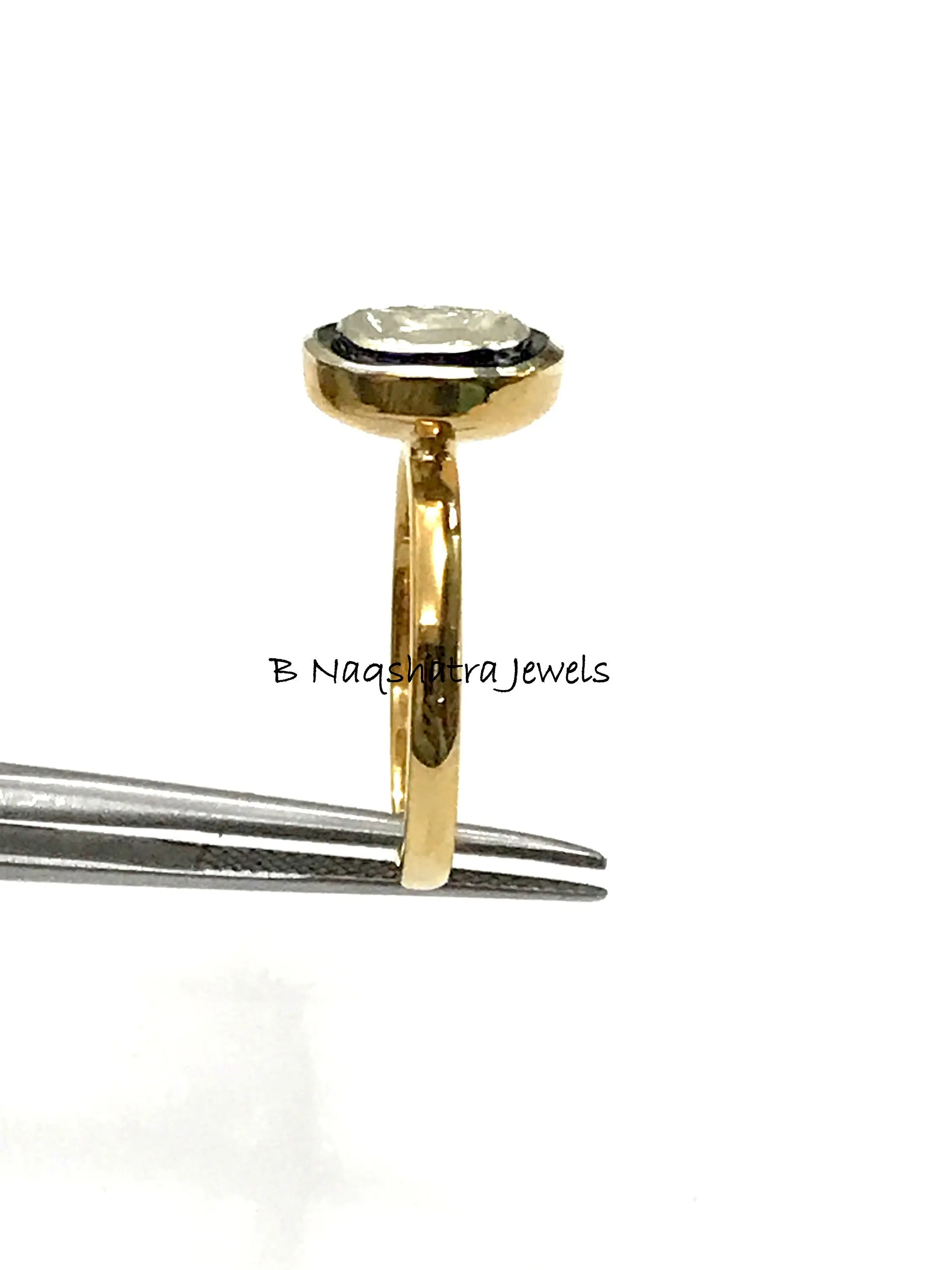 FLAT DIAMONDS POLKI Silver Ring ,Natural Rose Cut Diamond, Engagement Solitaire Ring, April Birthstone, Valentine gift .