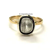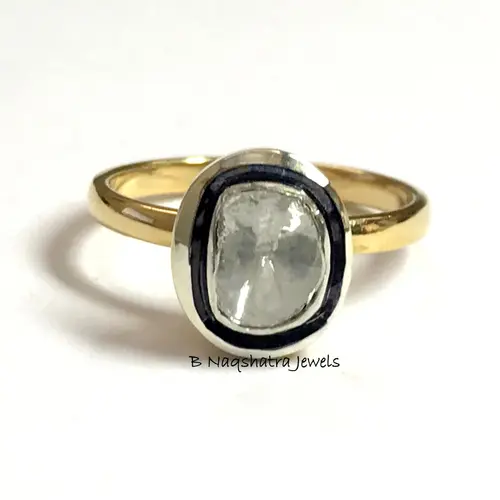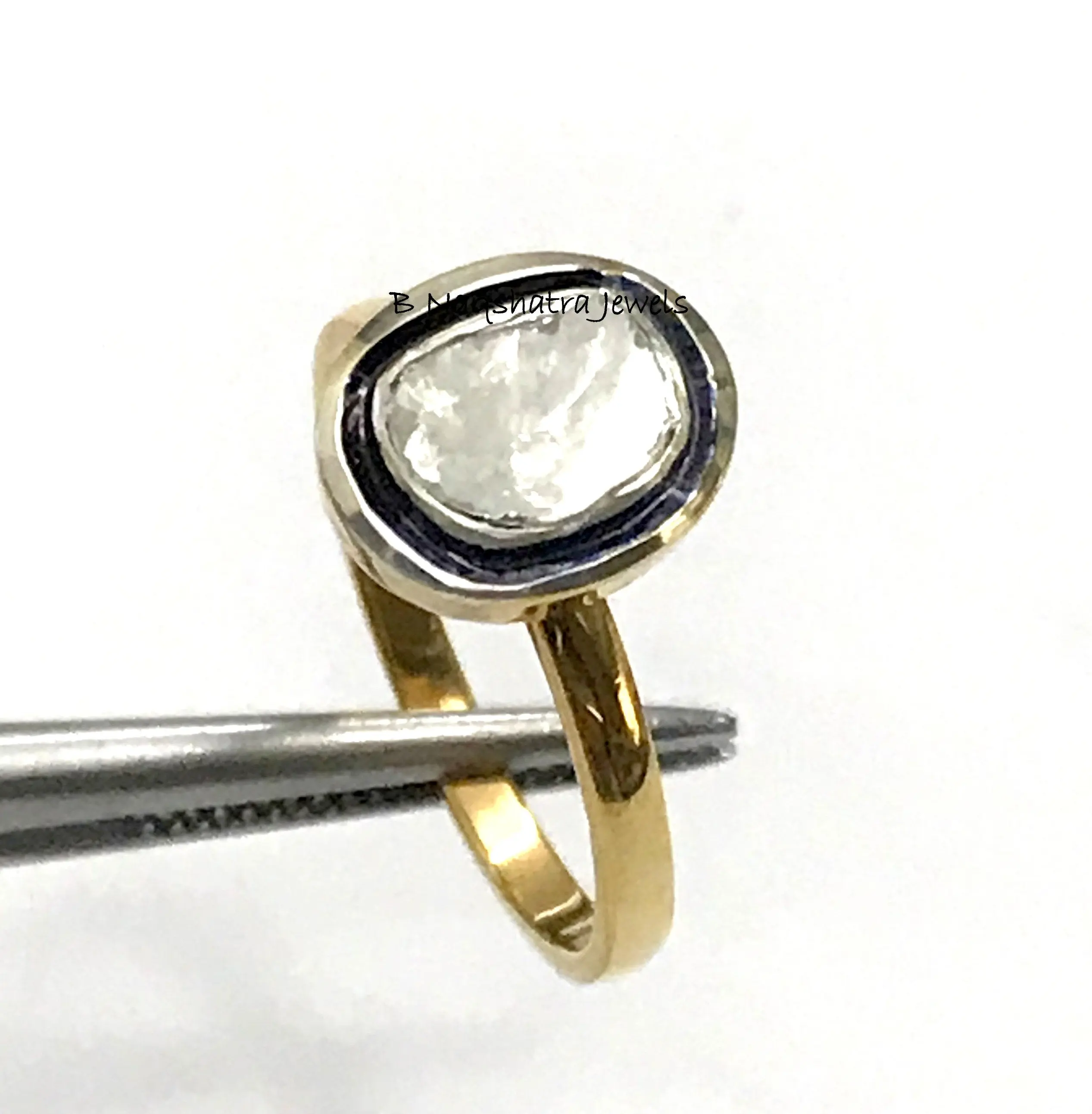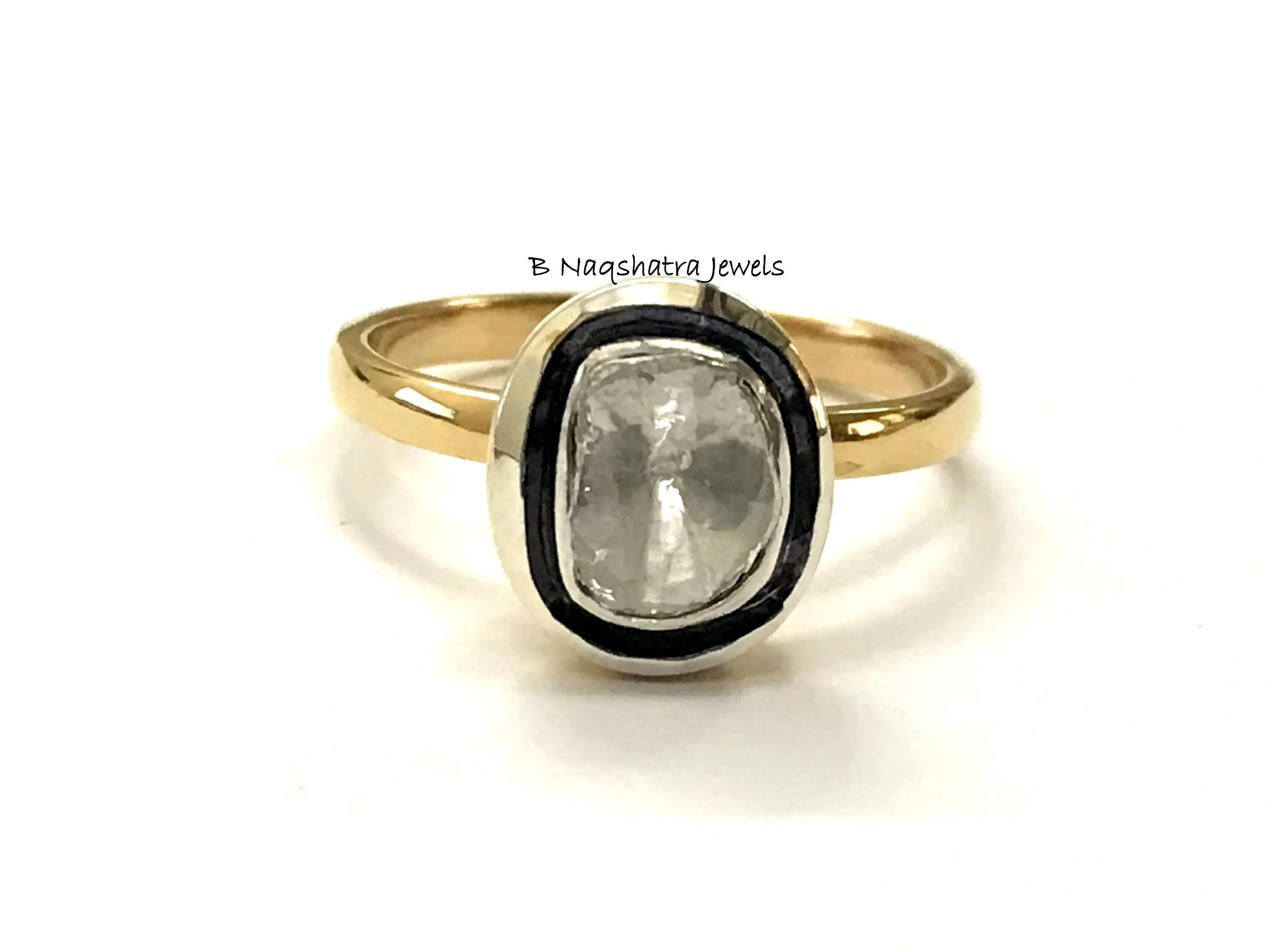 FLAT DIAMONDS POLKI Silver Ring ,Natural Rose Cut Diamond, Engagement Solitaire Ring, April Birthstone, Valentine gift .