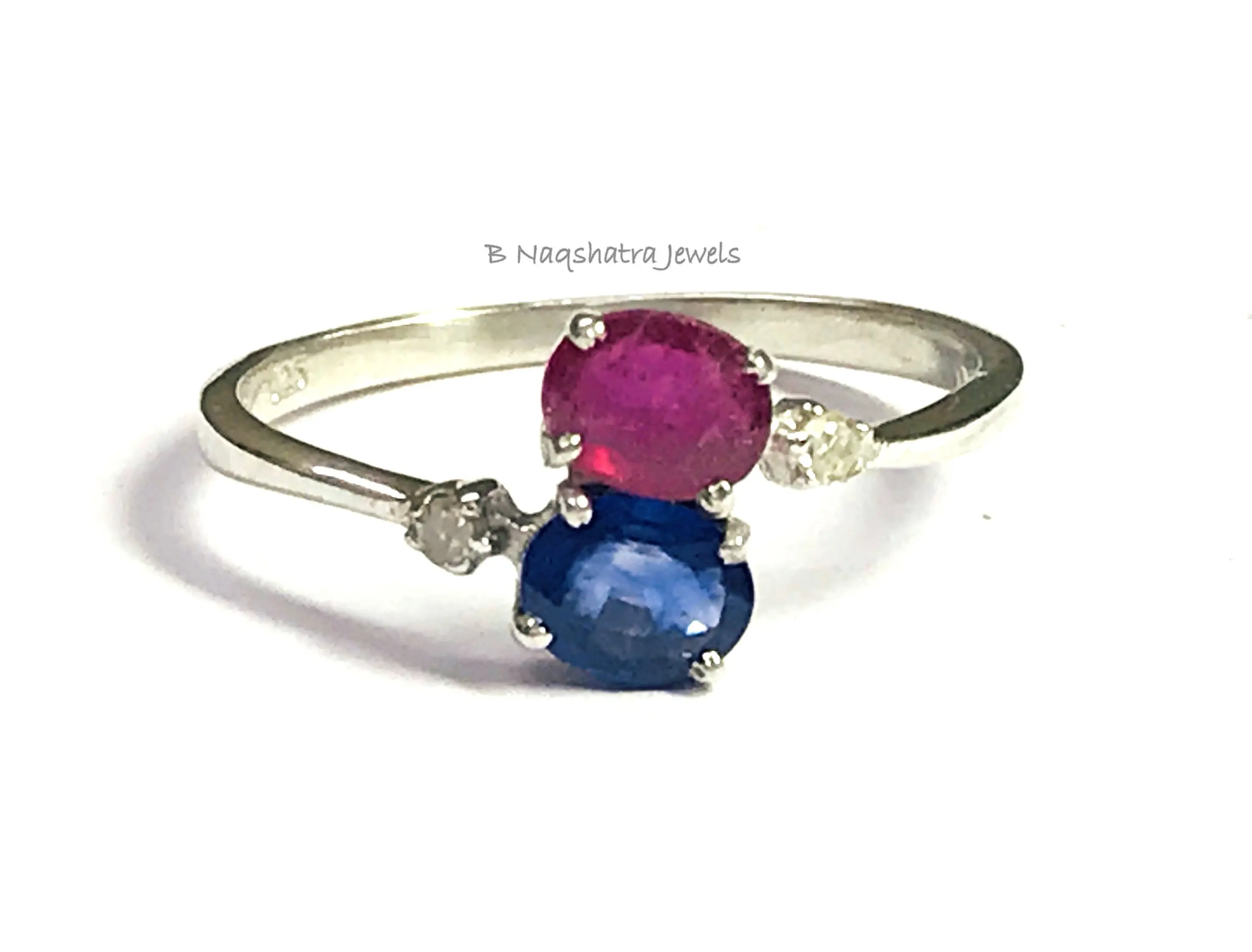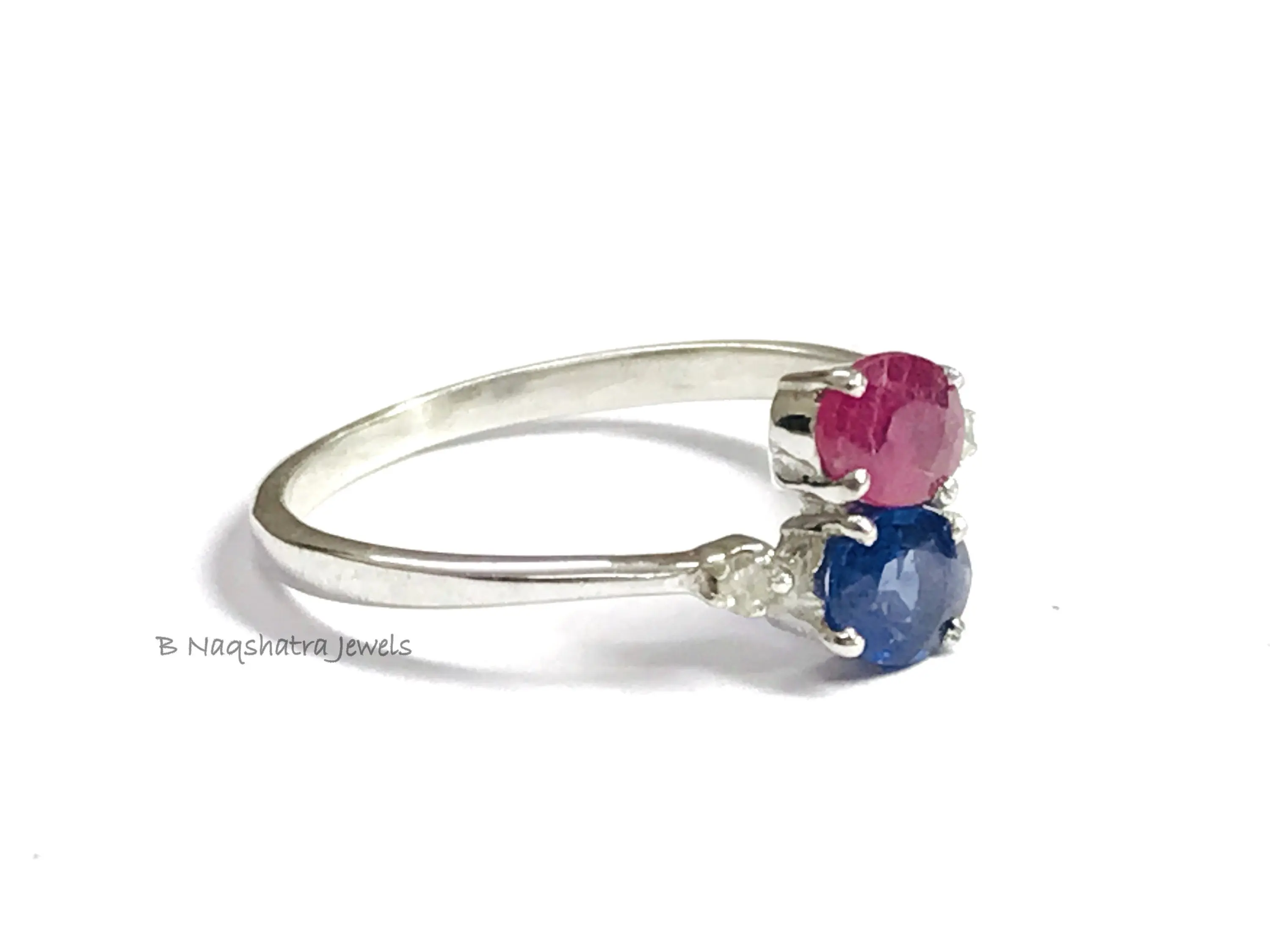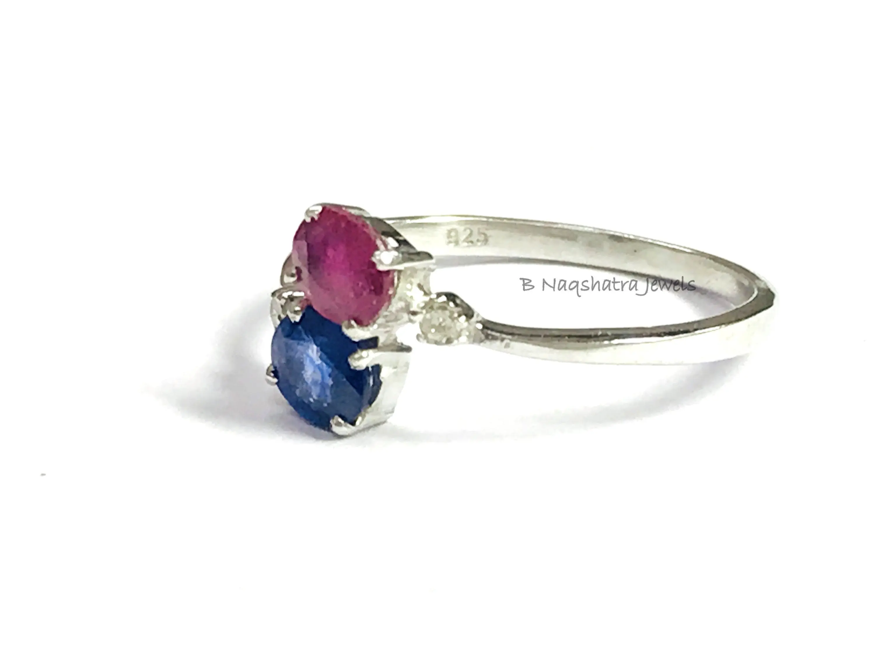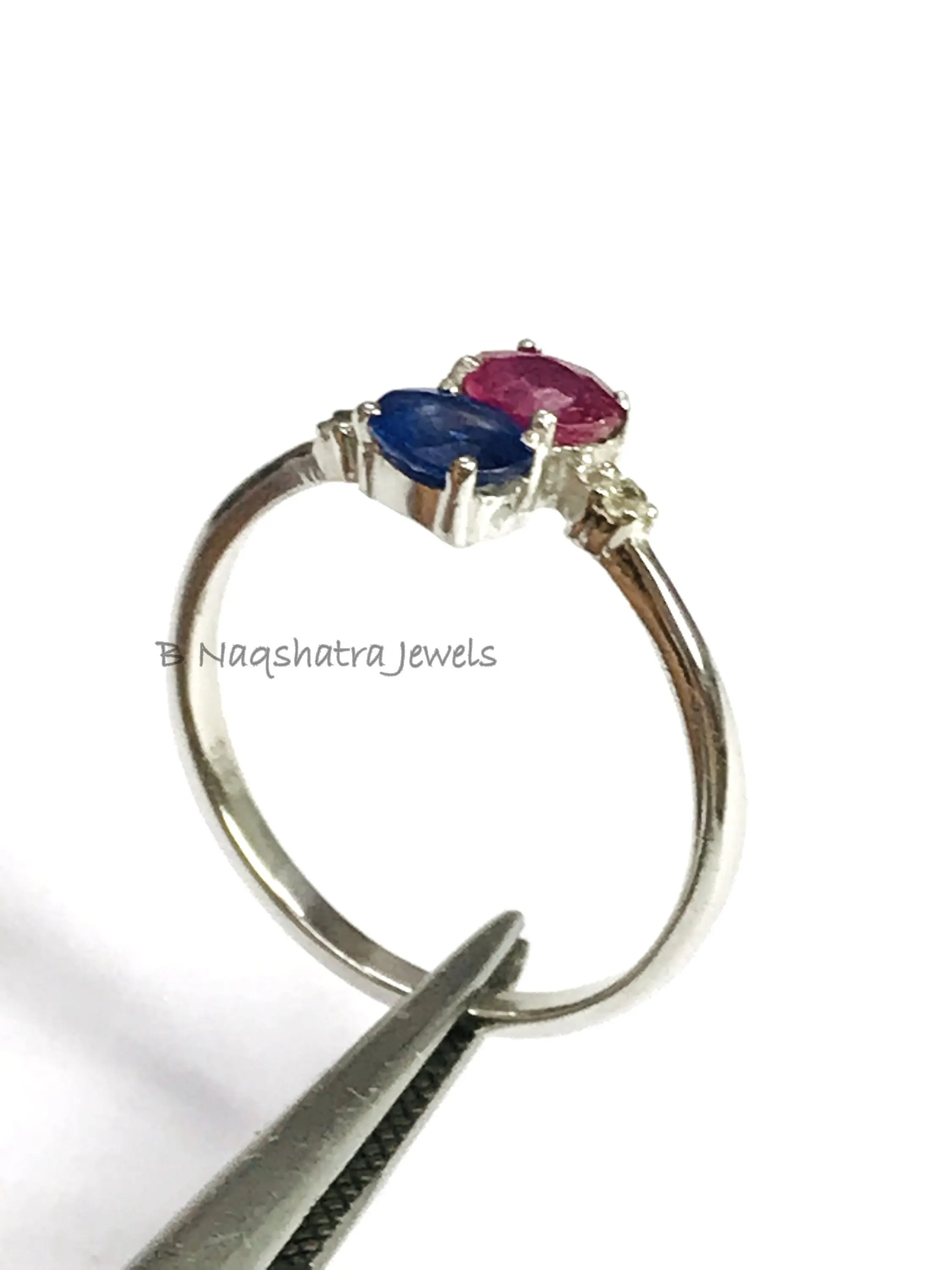 BLUE SAPPHIRE RUBY Diamond Stylish & Unique Engagement Ring,Dainty Wedding band , Stacking Ring ,Promise Ring, Gift for her