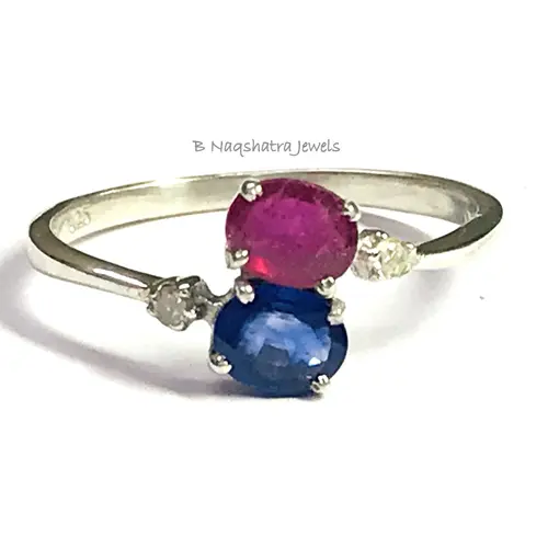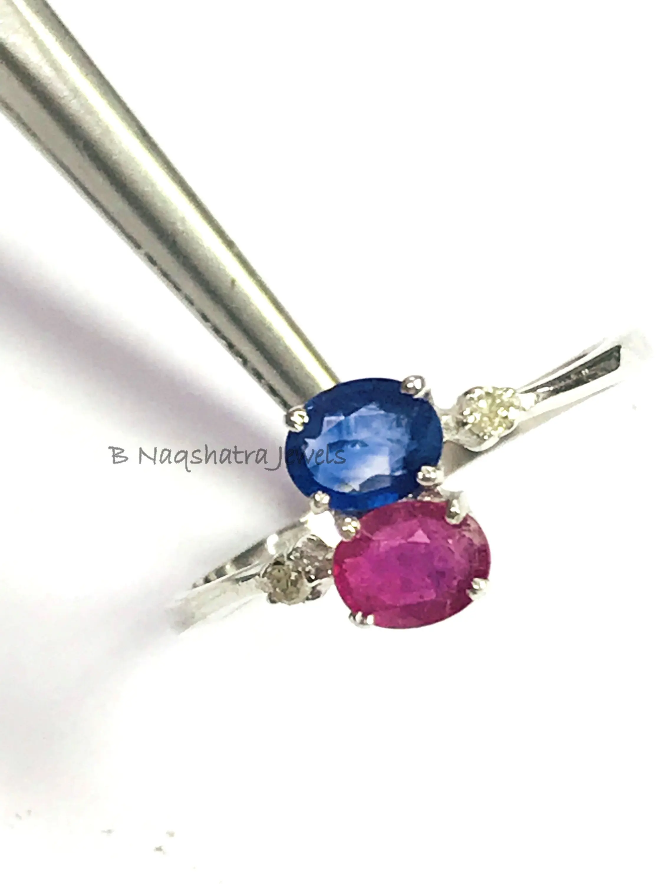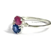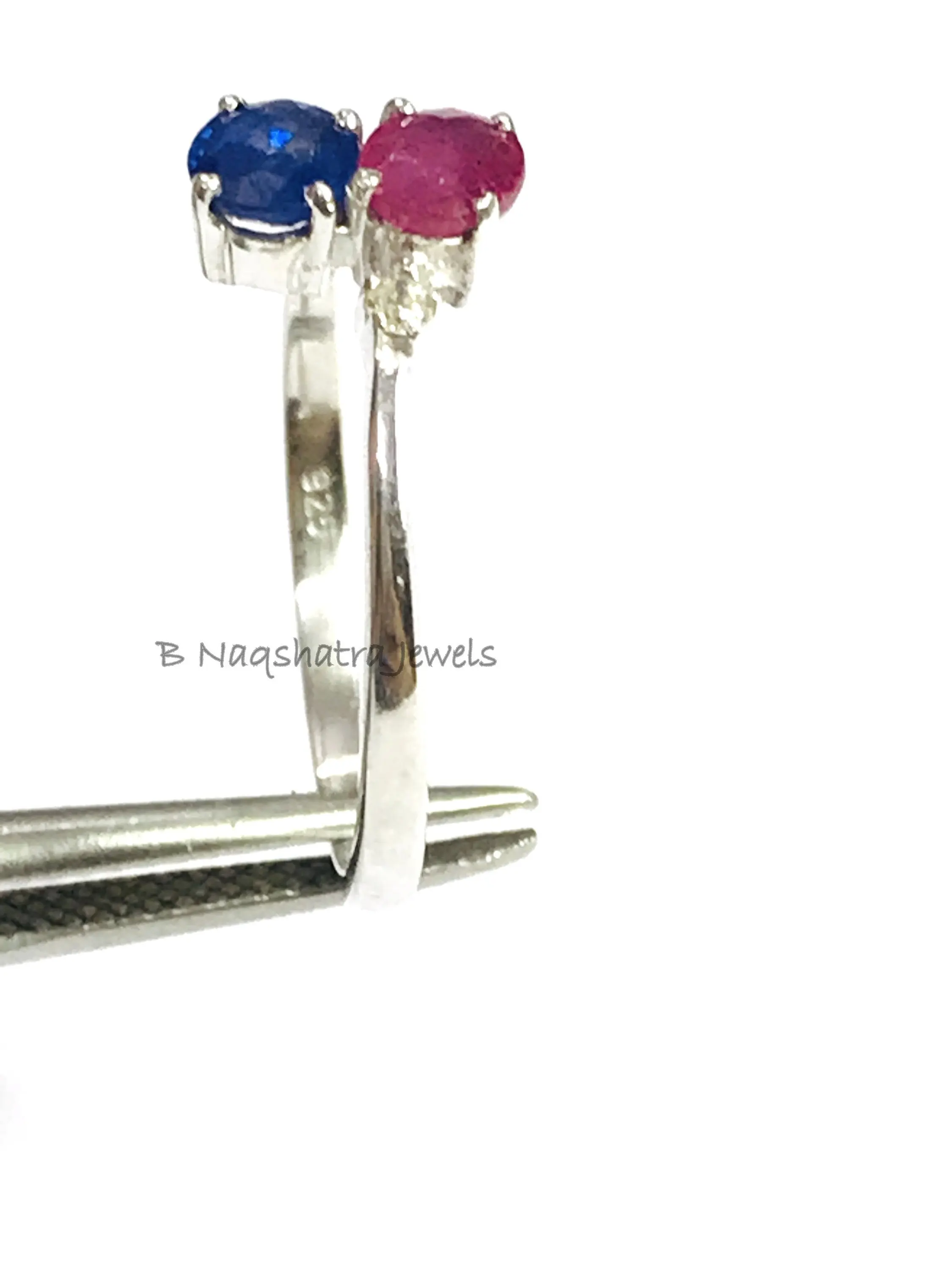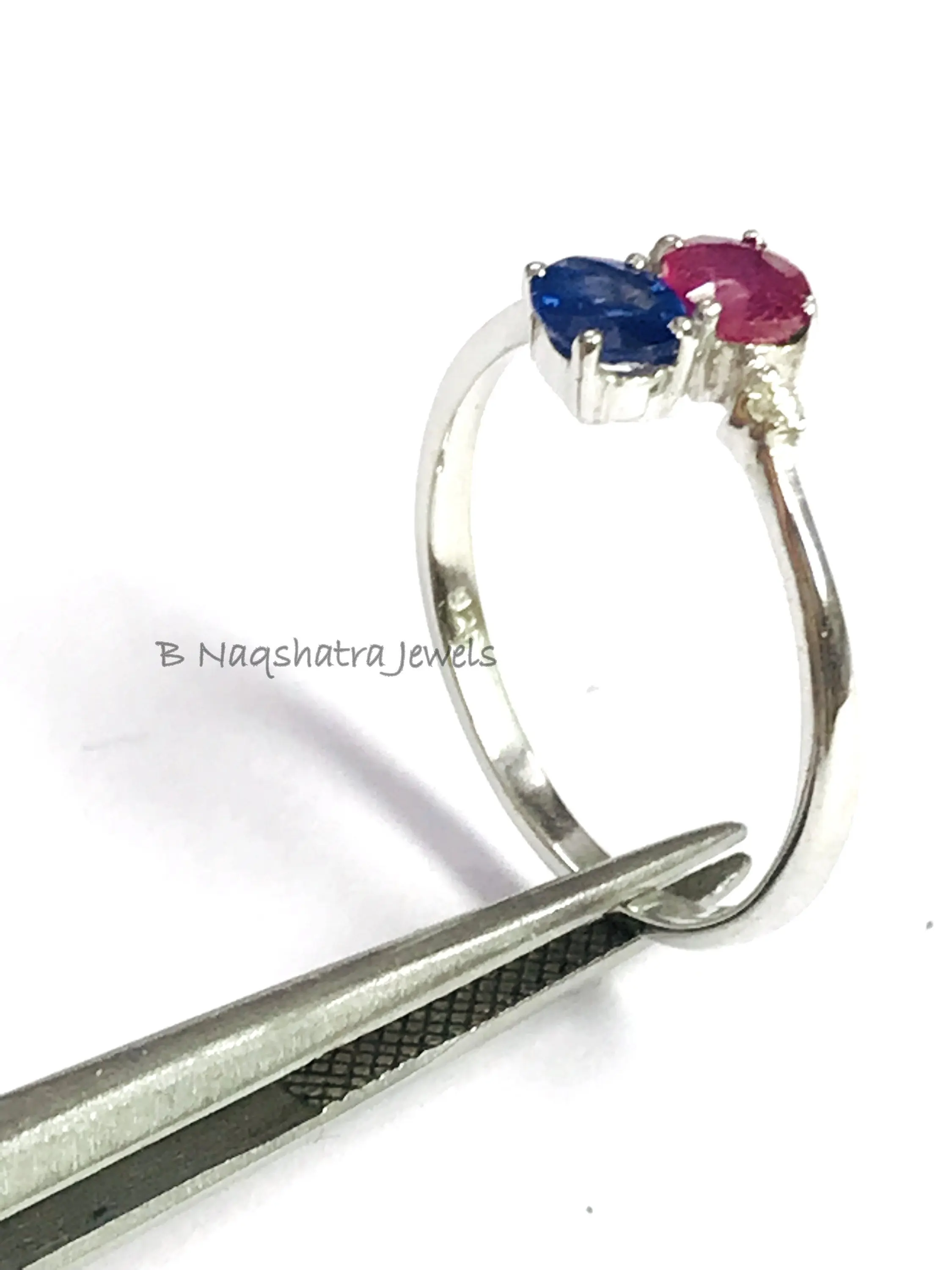 BLUE SAPPHIRE RUBY Diamond Stylish & Unique Engagement Ring,Dainty Wedding band , Stacking Ring ,Promise Ring, Gift for her