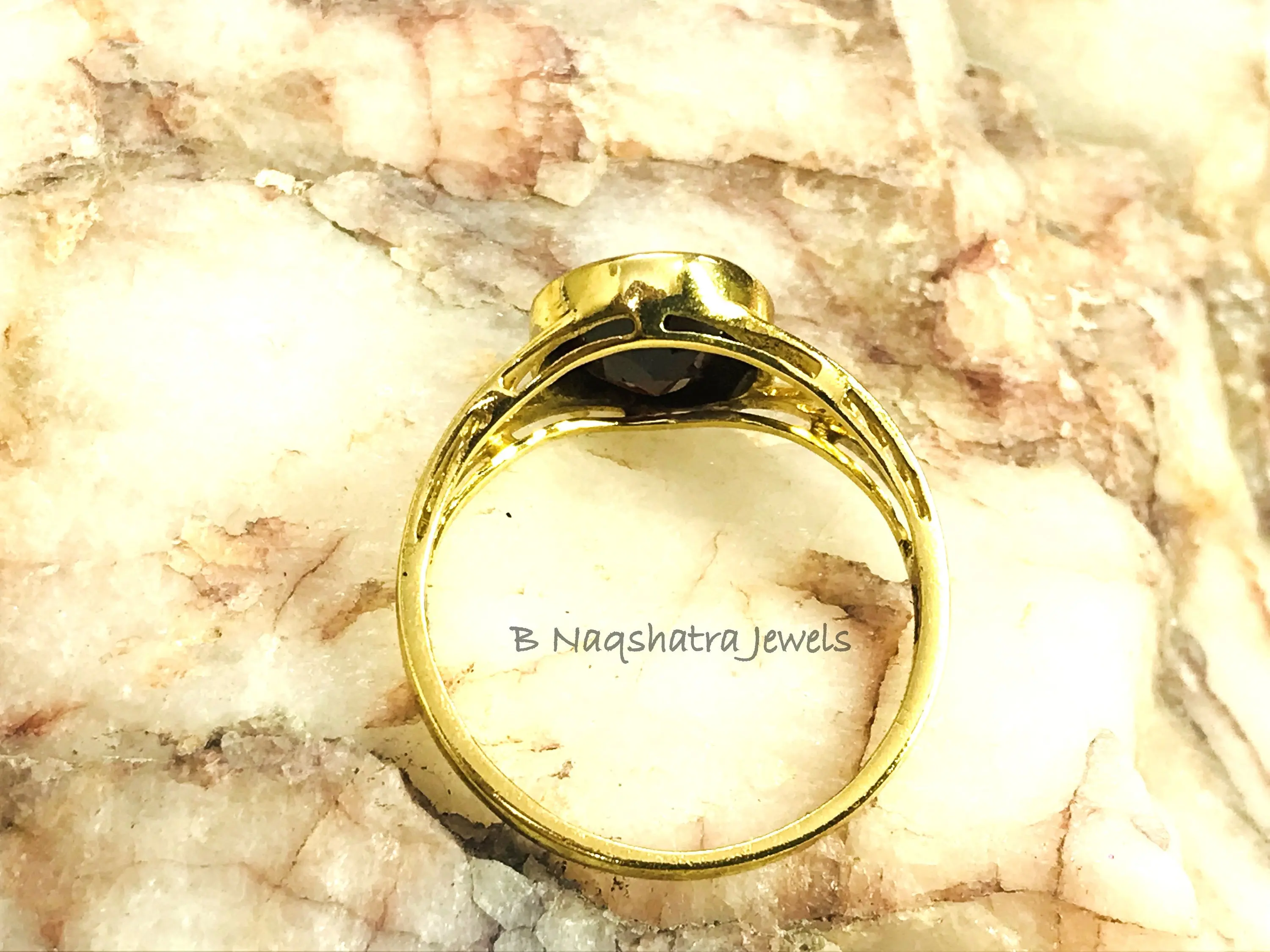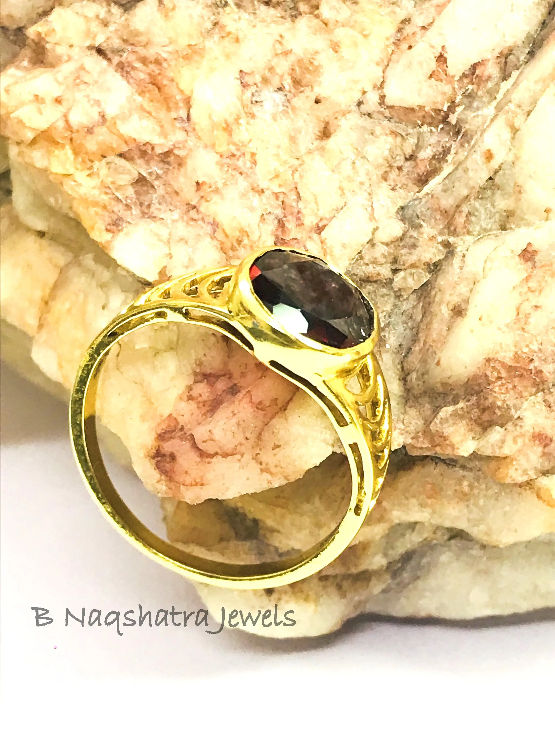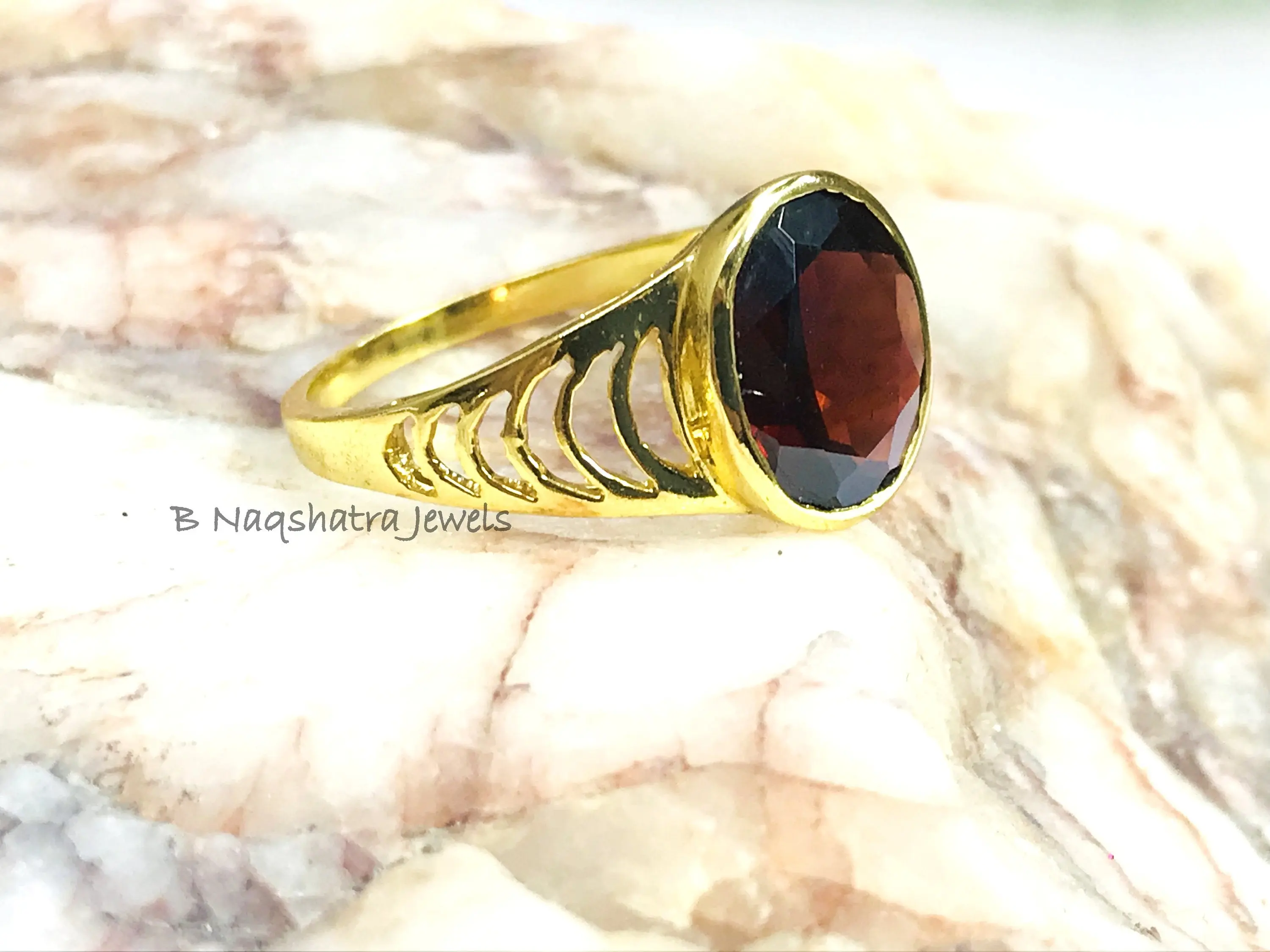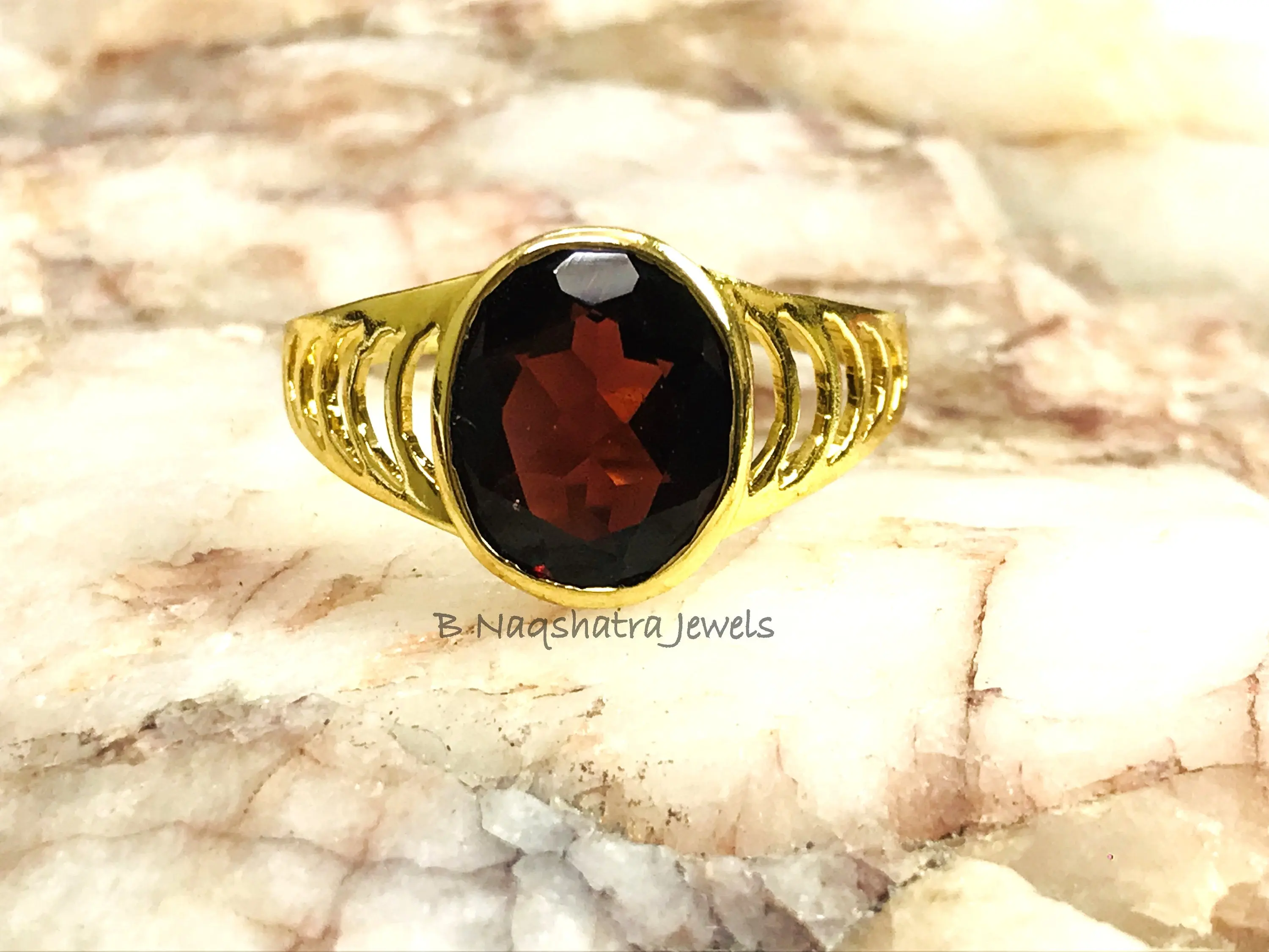 This Men ring features a very rich, deep brownish red,natural garnet, set in 10k yellow gold, Very comfortable to wear and absolutely stunning in natural light.