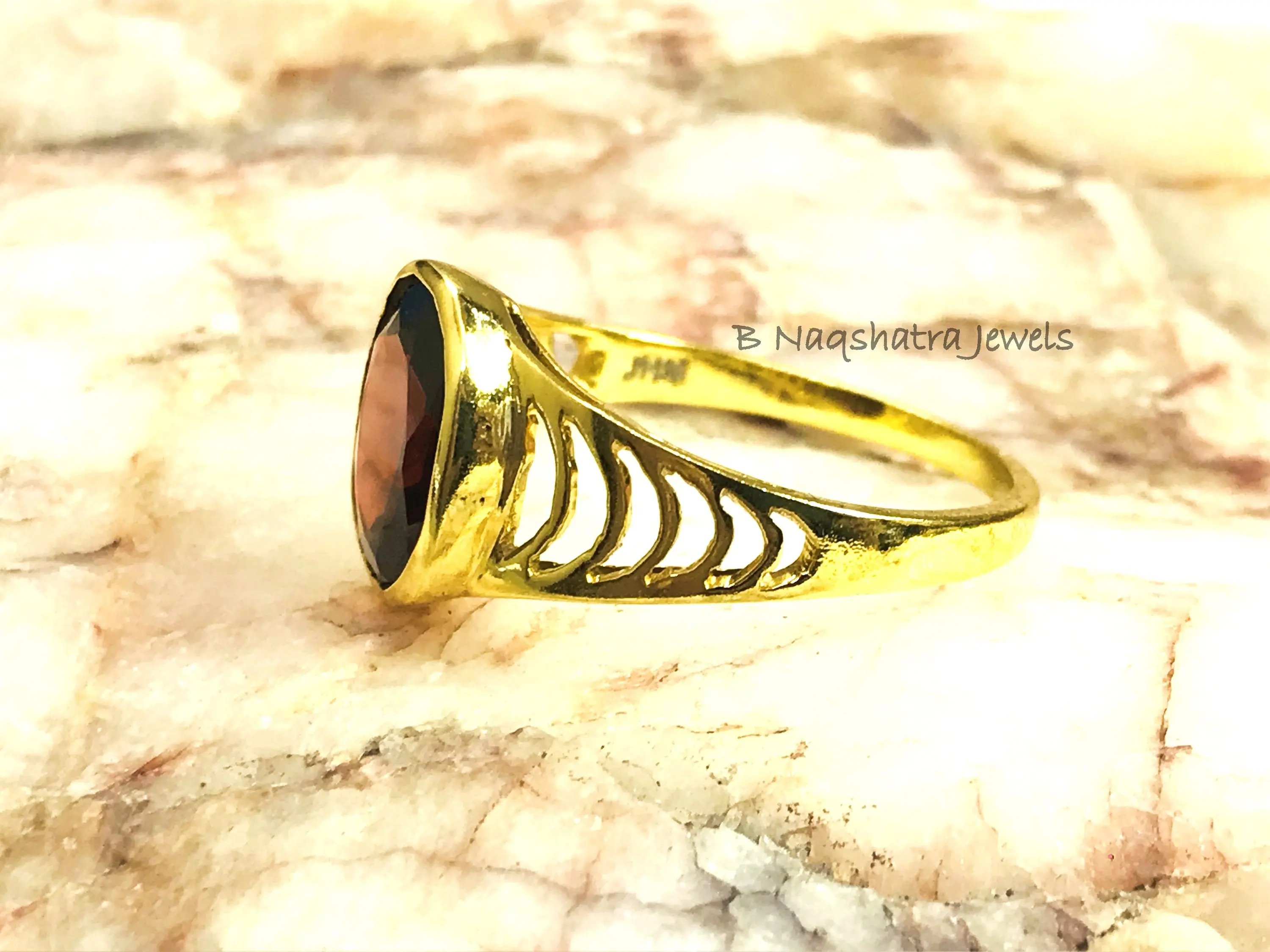 NATURAL GARNET MEN Ring-10k yellow gold ,January birthstone rings, Red garnet ring, Oval shape,Fathers Day Gift,Personalized Jewelry..