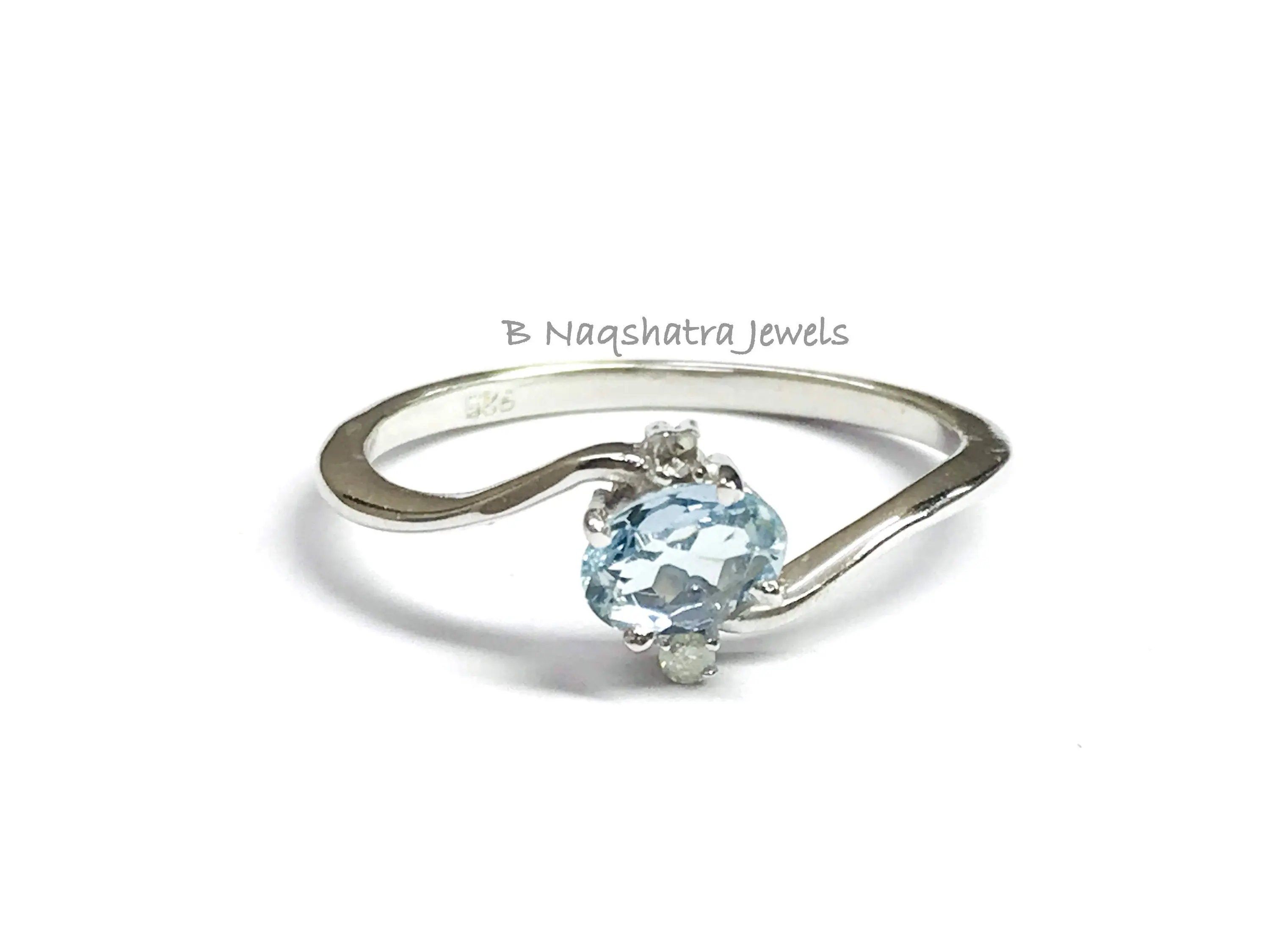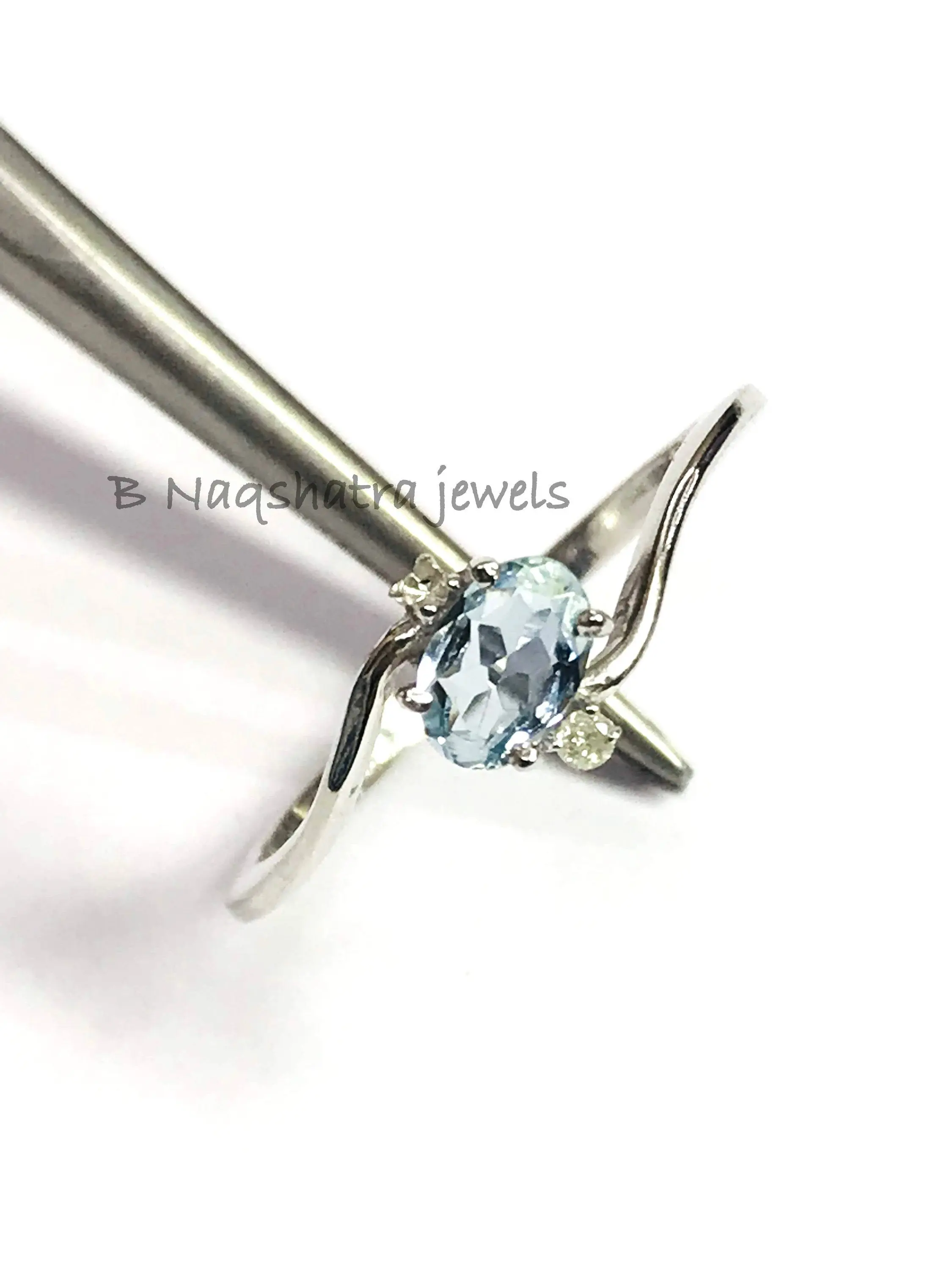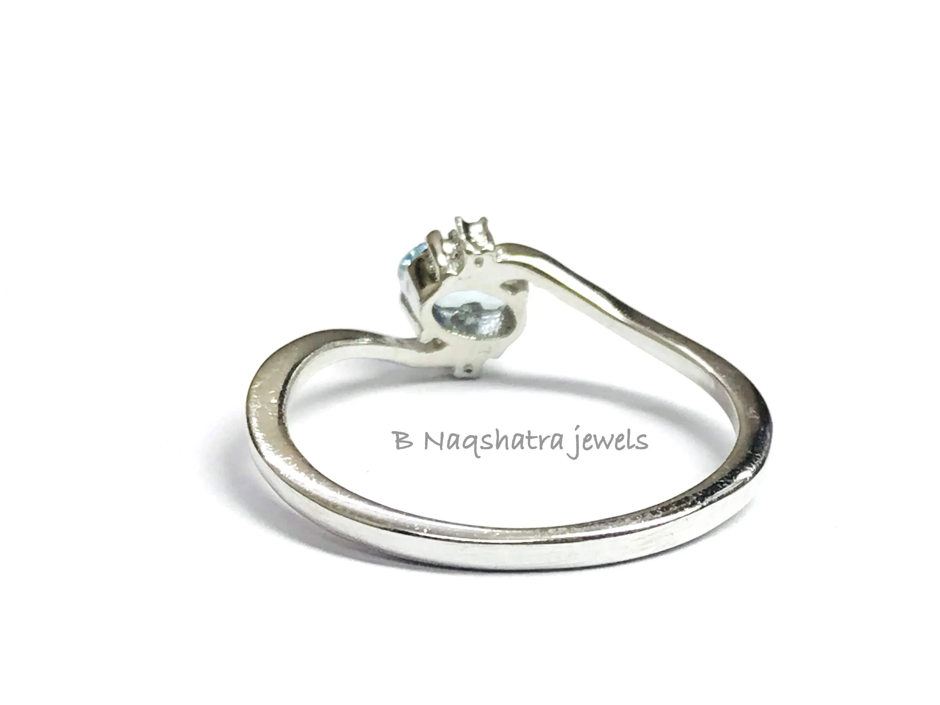 AQUAMARINE DIAMONDS Sterling Silver Ring ,March Birthstone,Wedding Gift,Promise Ring for Her,Lovely gift for Loved ones