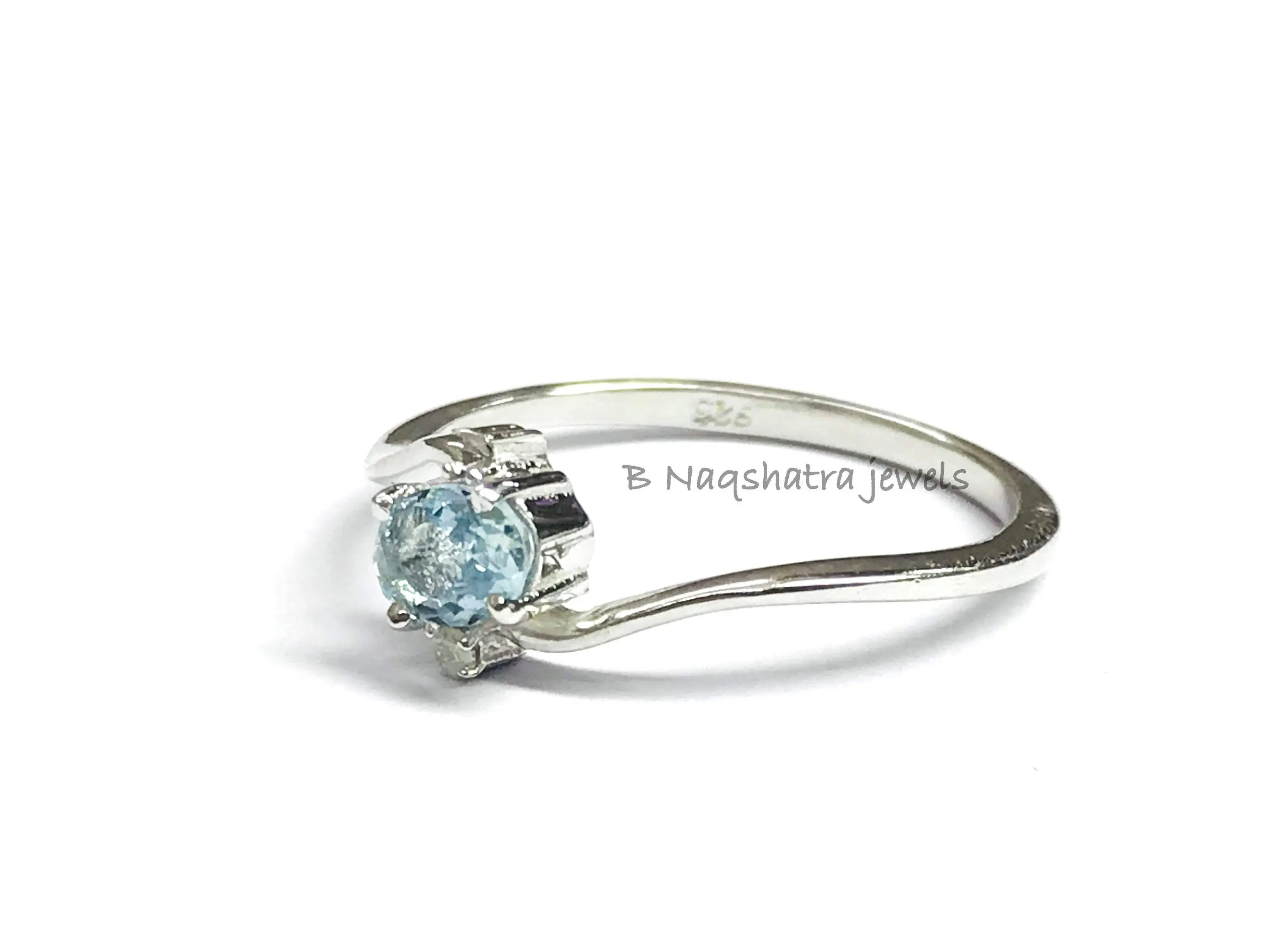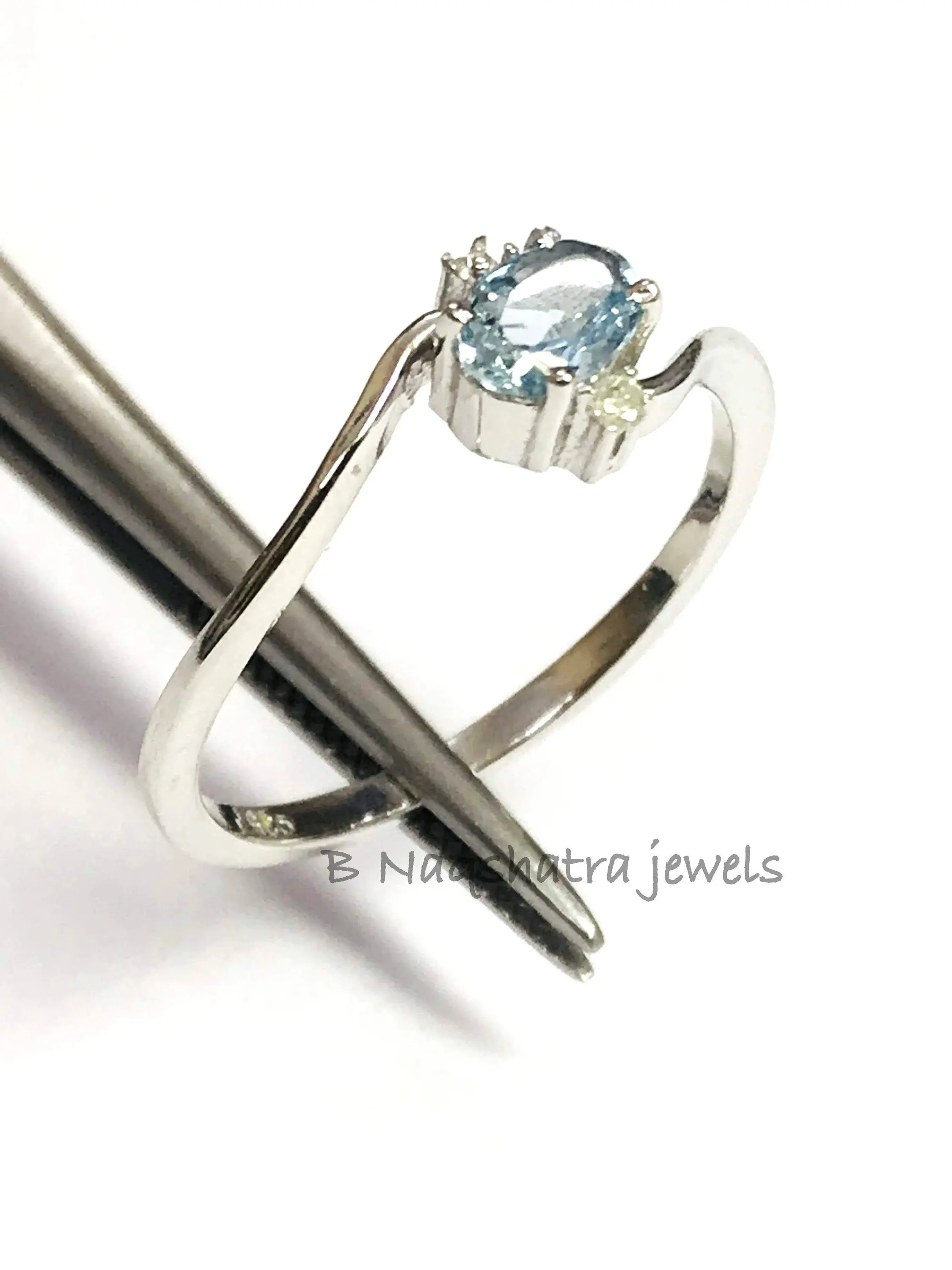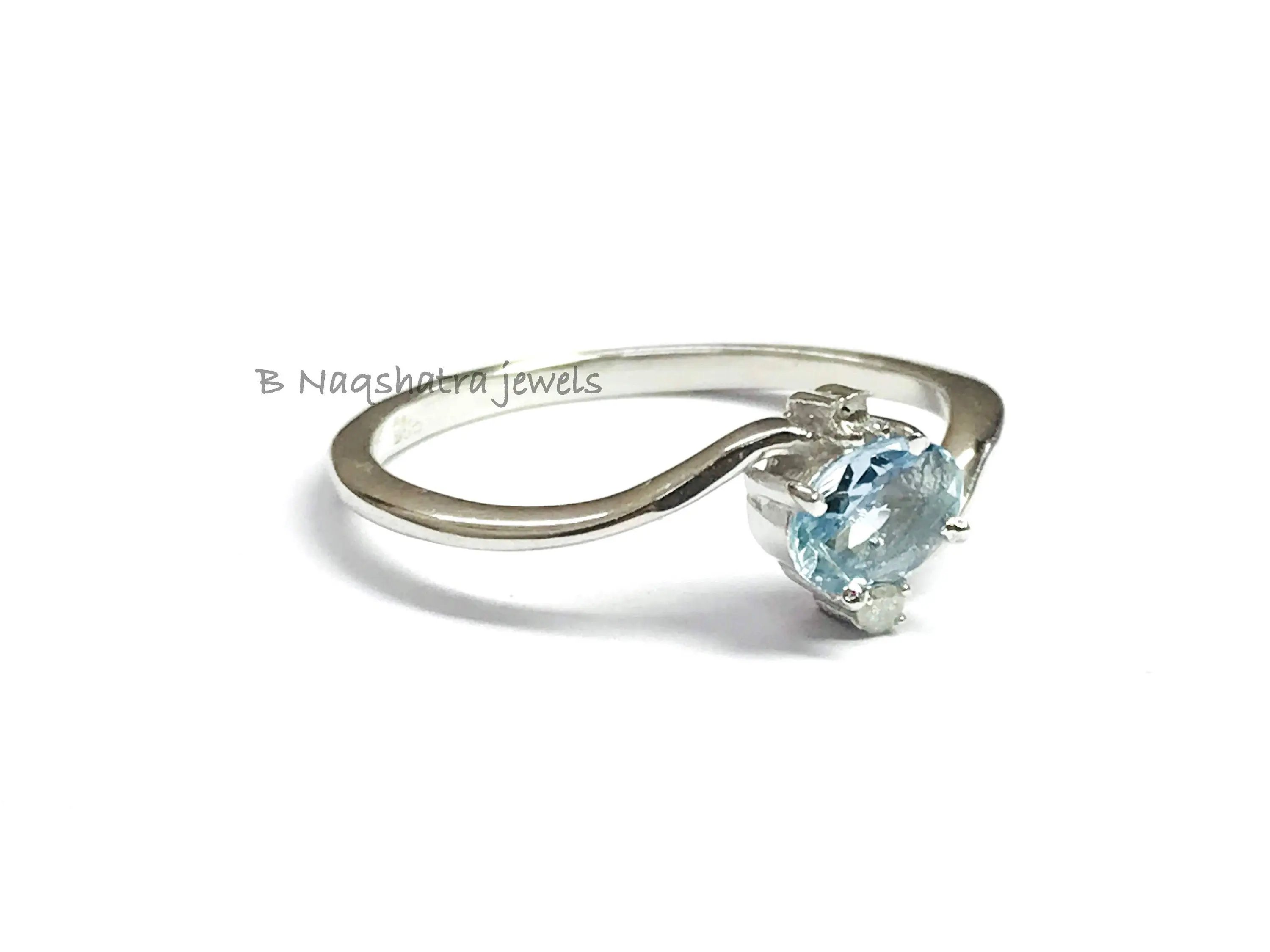 AQUAMARINE DIAMONDS Sterling Silver Ring ,March Birthstone,Wedding Gift,Promise Ring for Her,Lovely gift for Loved ones