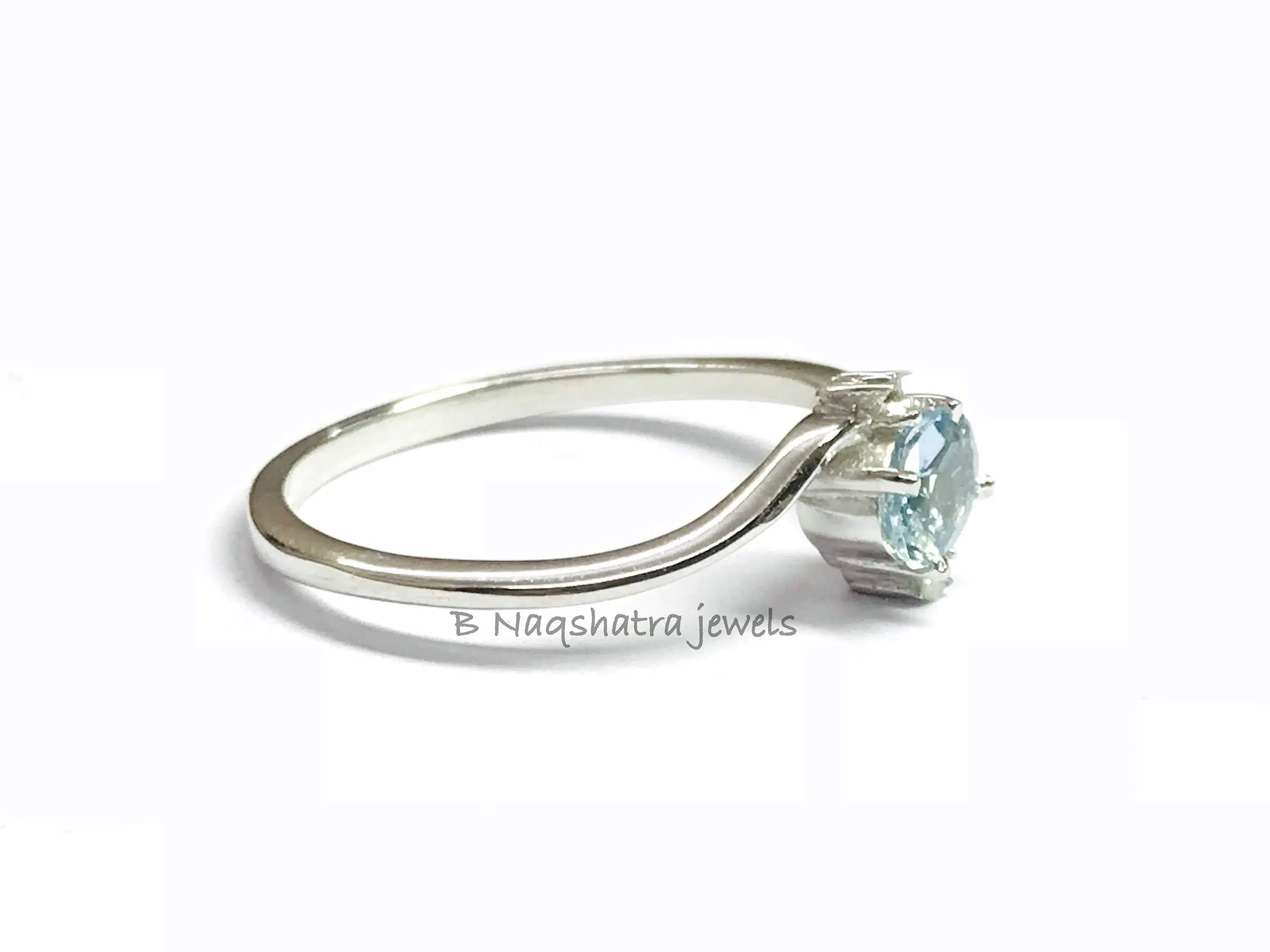 DAINTY AQUAMARINE DIAMONDS Sterling Silver Ring ,March Birthstone,Wedding Gift,Promise Ring for Her,Lovely gift for Loved ones ..........