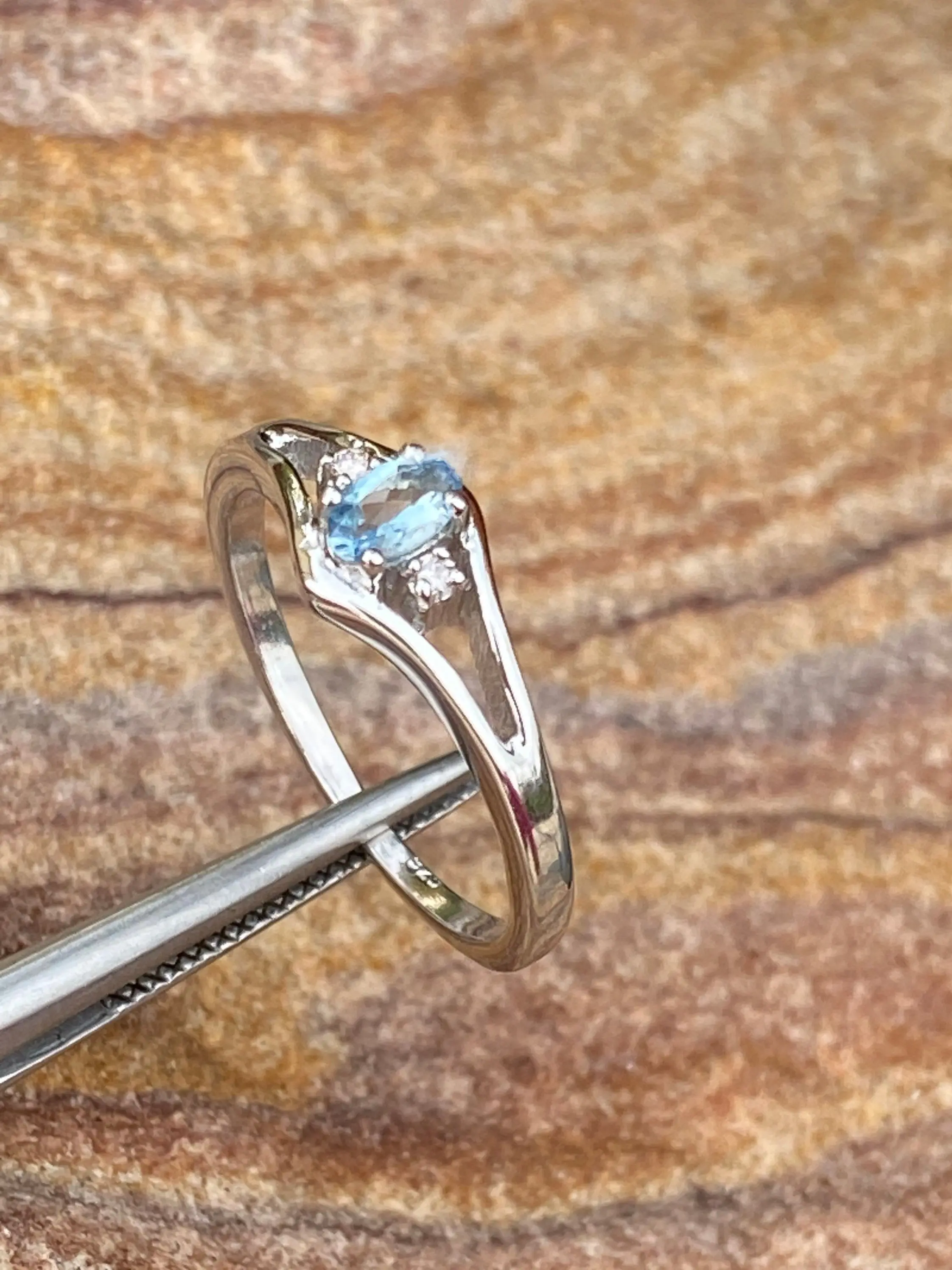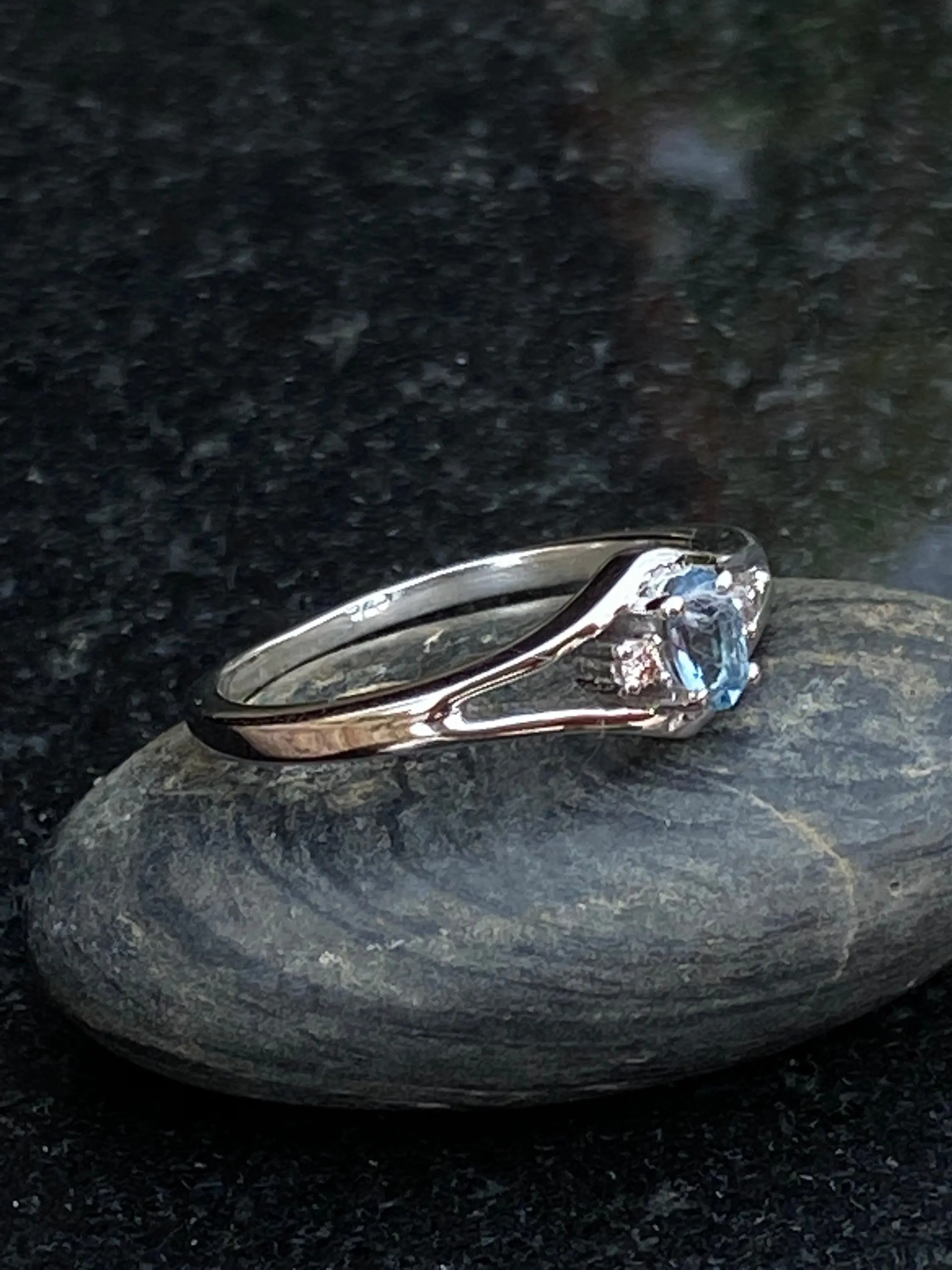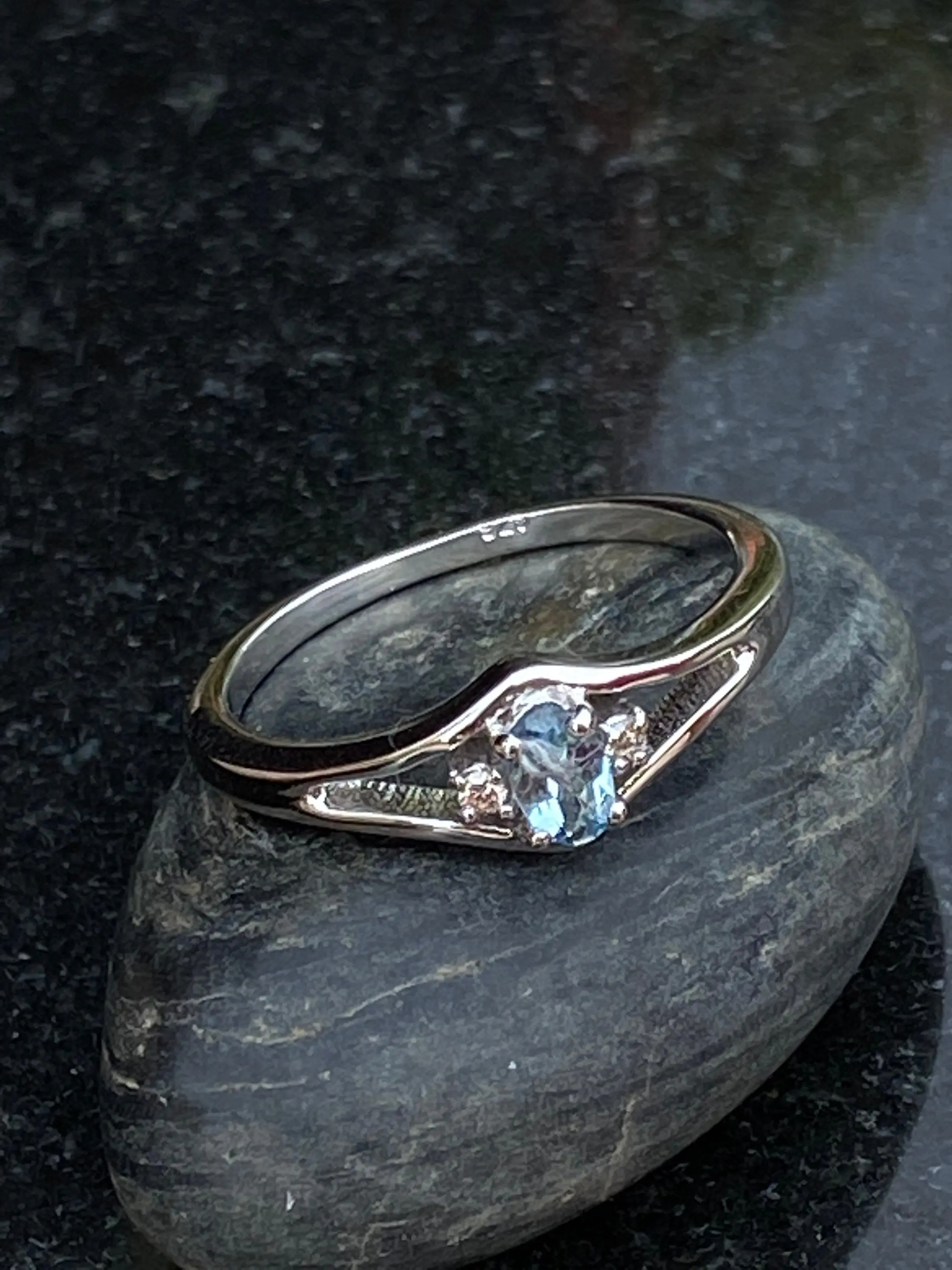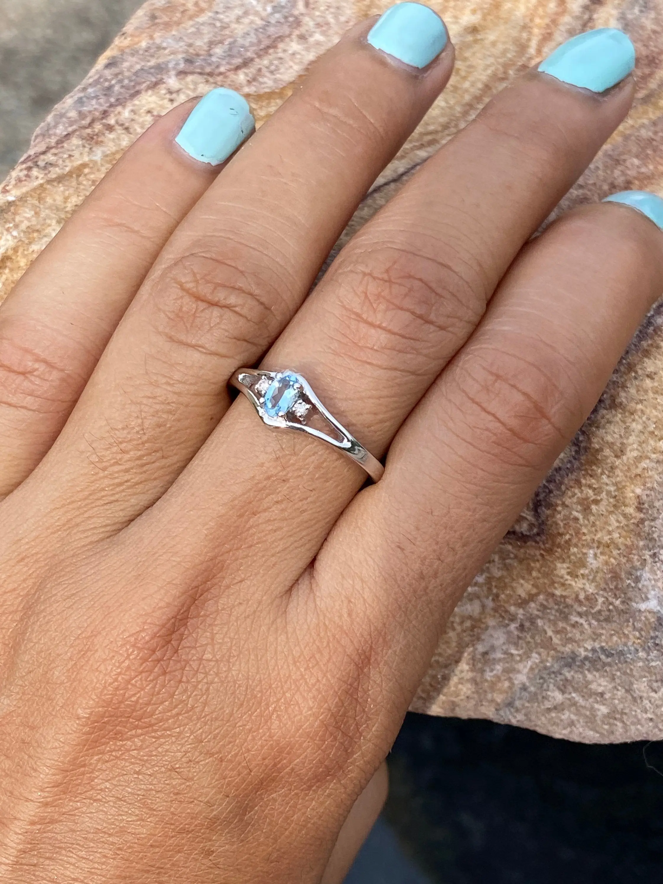 AQUAMARINE Stacking Ring Studded with natural Diamonds,Dainty Ring,March Birthstone, valentine Gift For her.