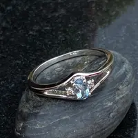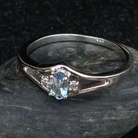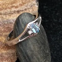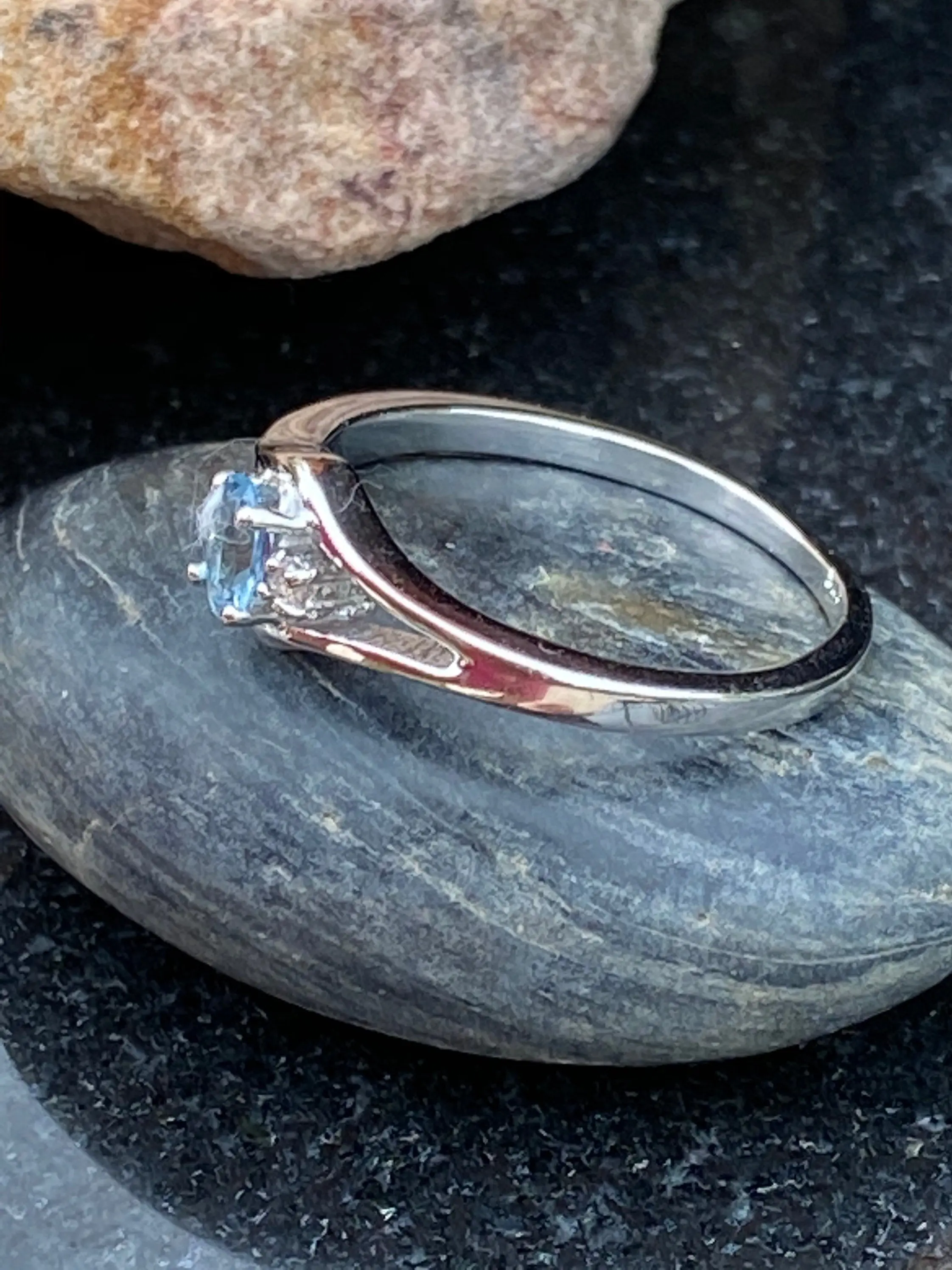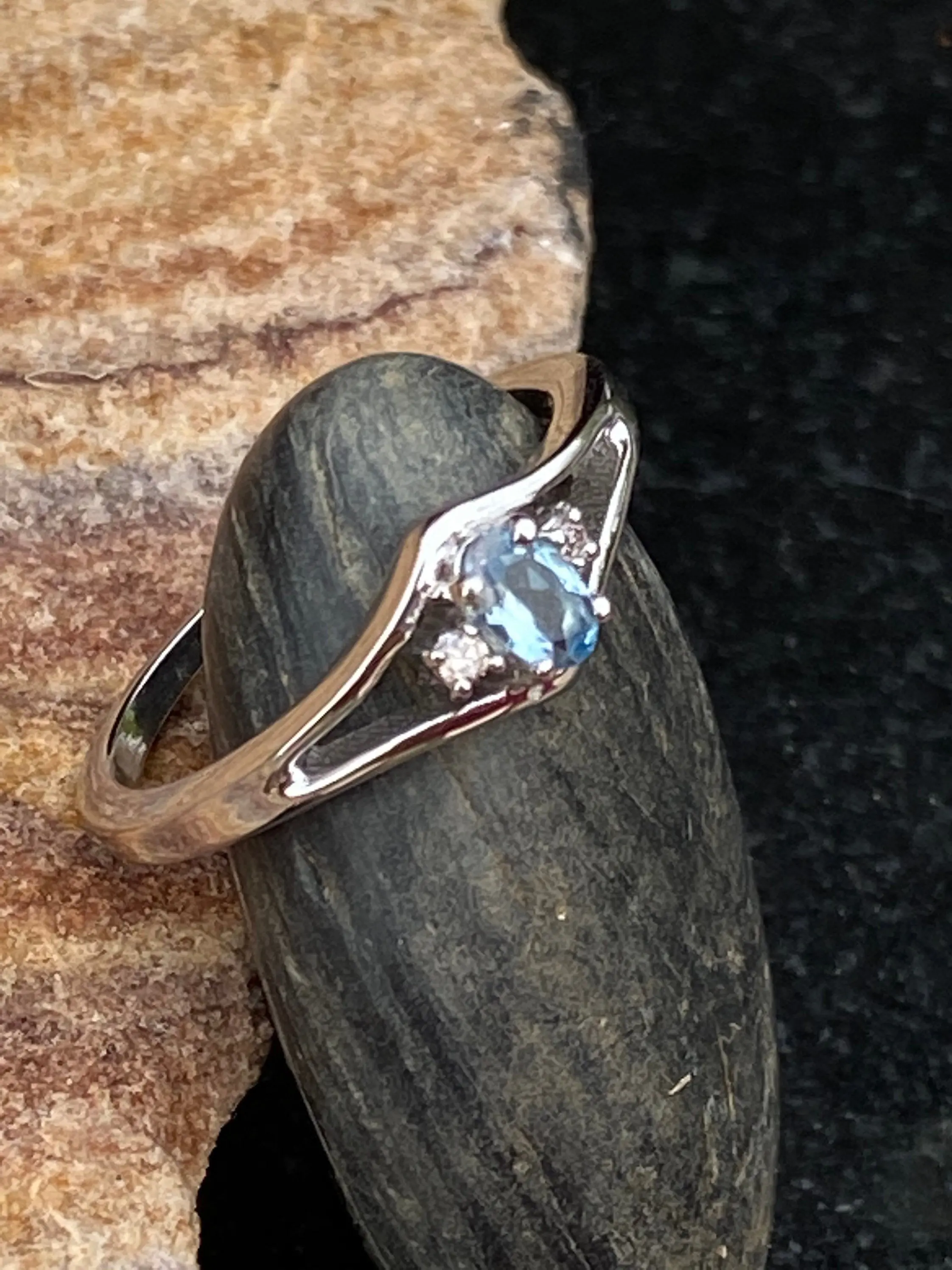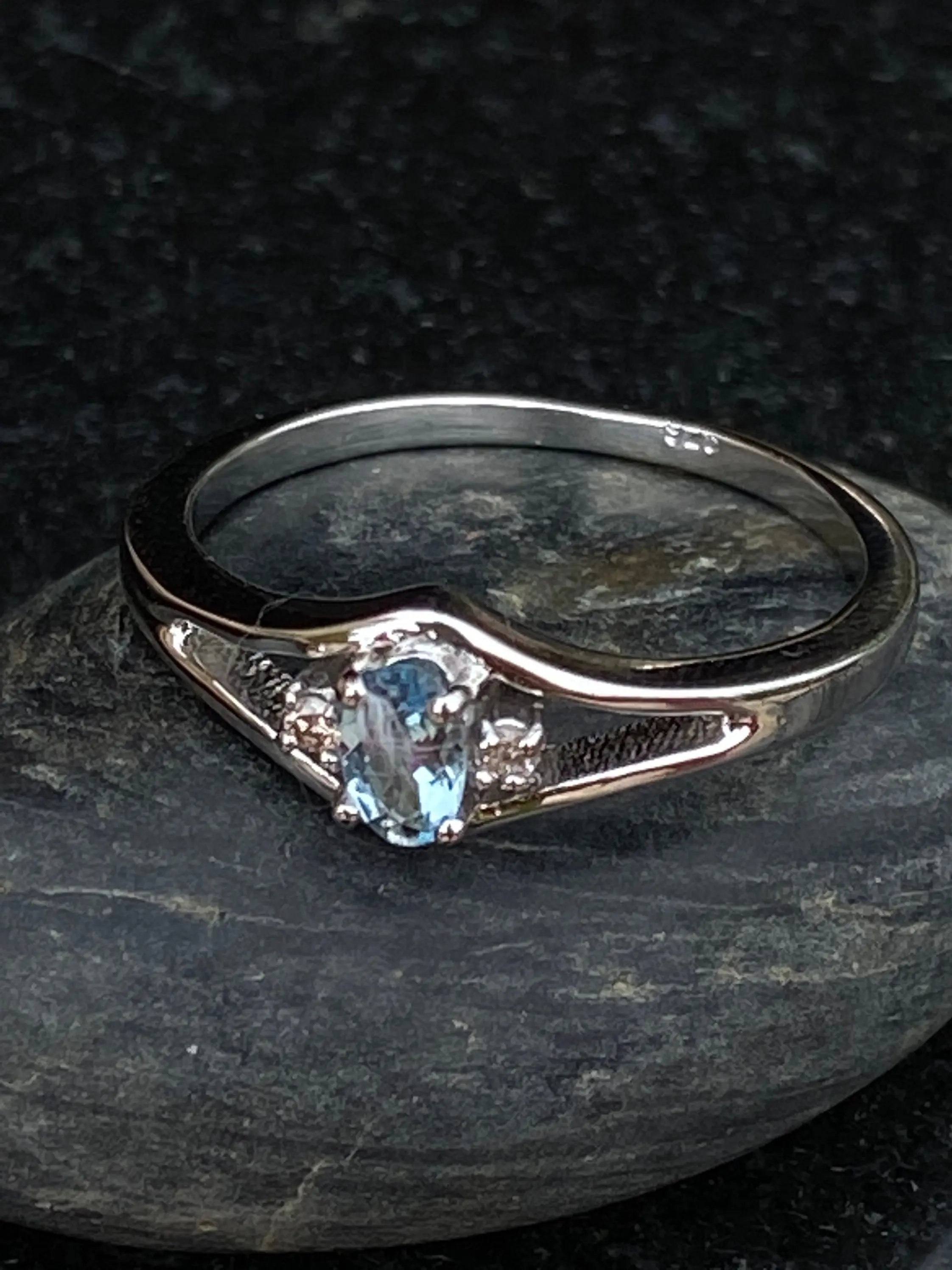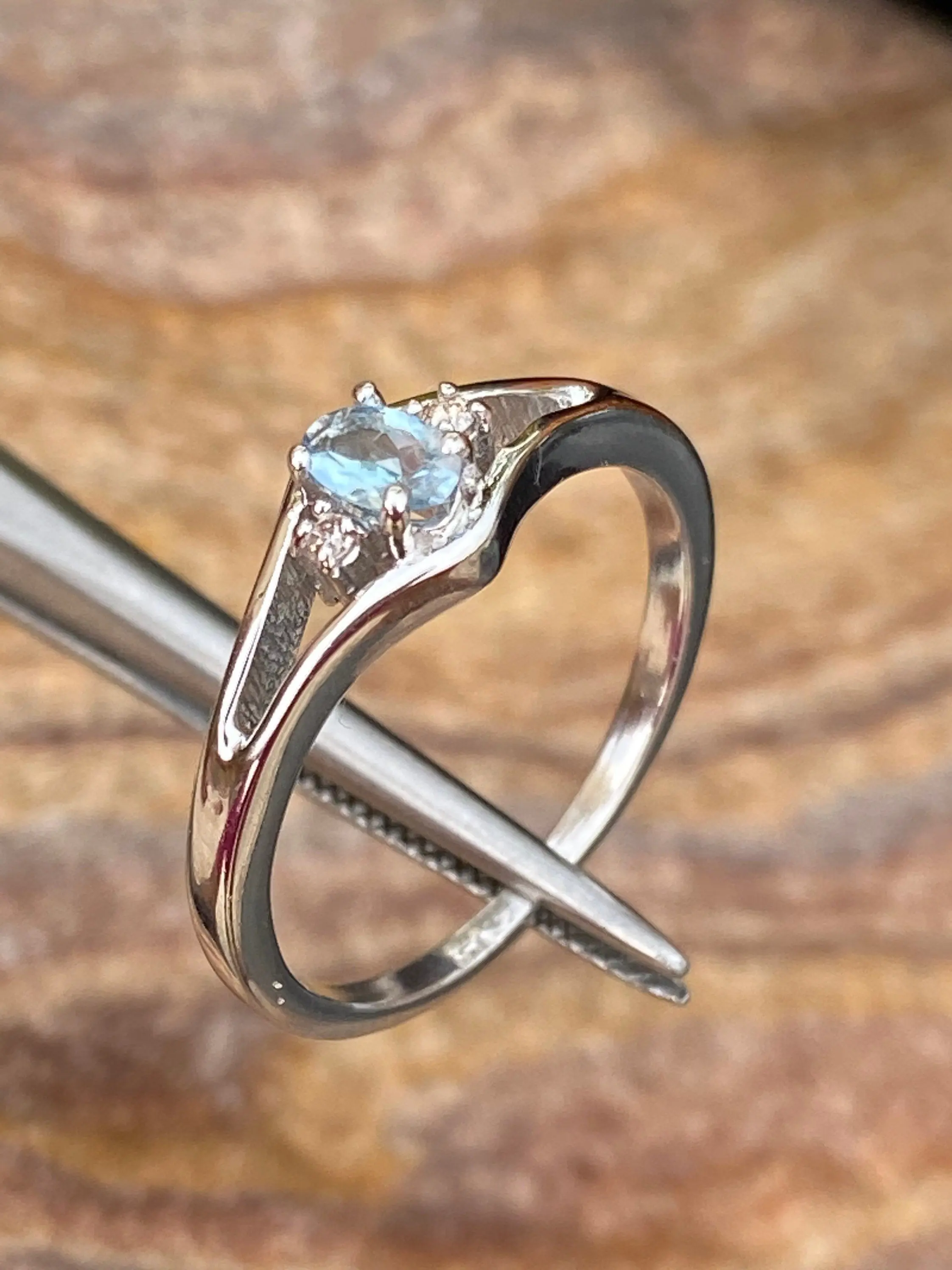 AQUAMARINE Stacking Ring Studded with natural Diamonds,Dainty Ring,March Birthstone, valentine Gift For her.