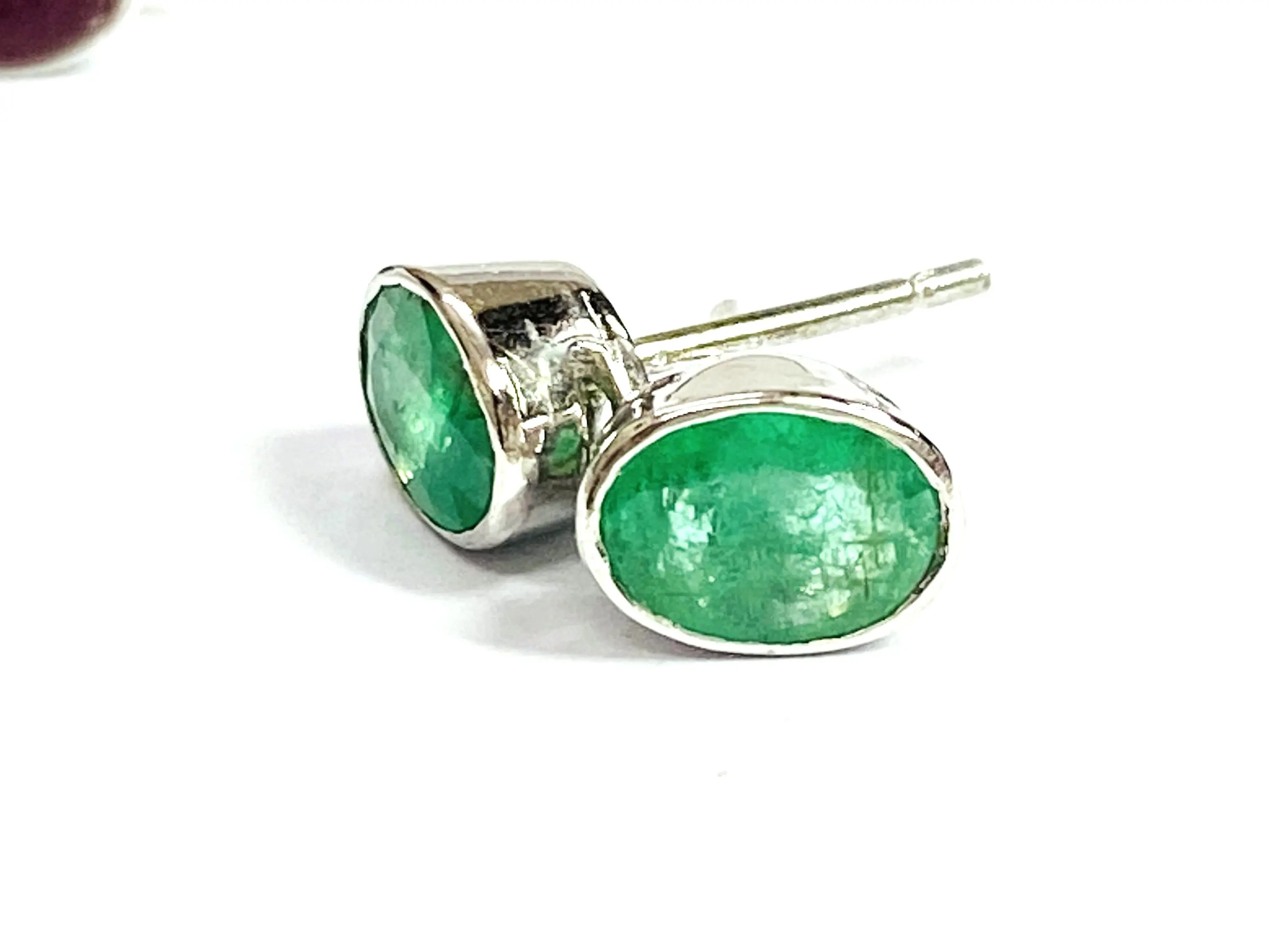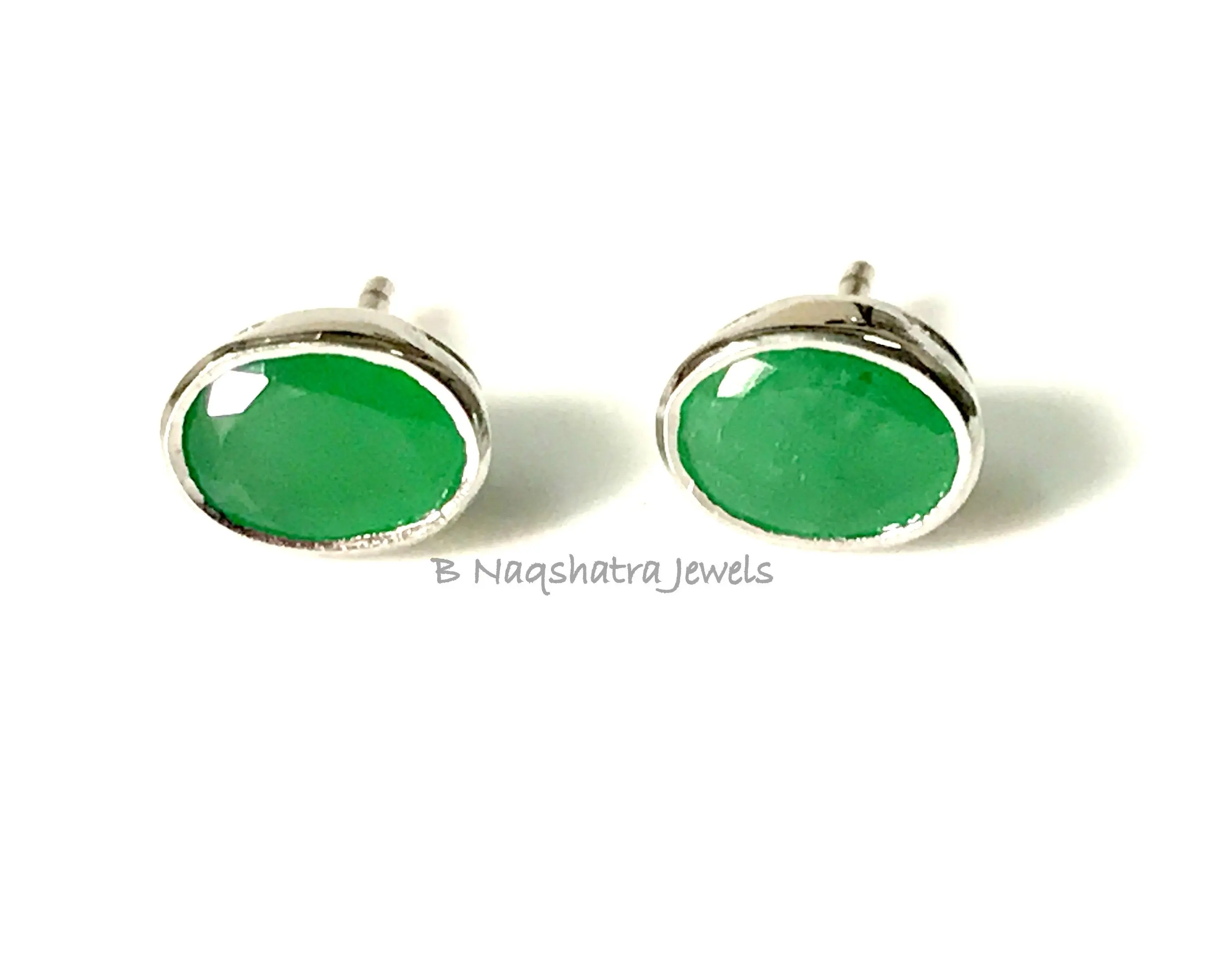 Emerald earrings, Green Emeralds, Natural Gemstone Stud Earrings