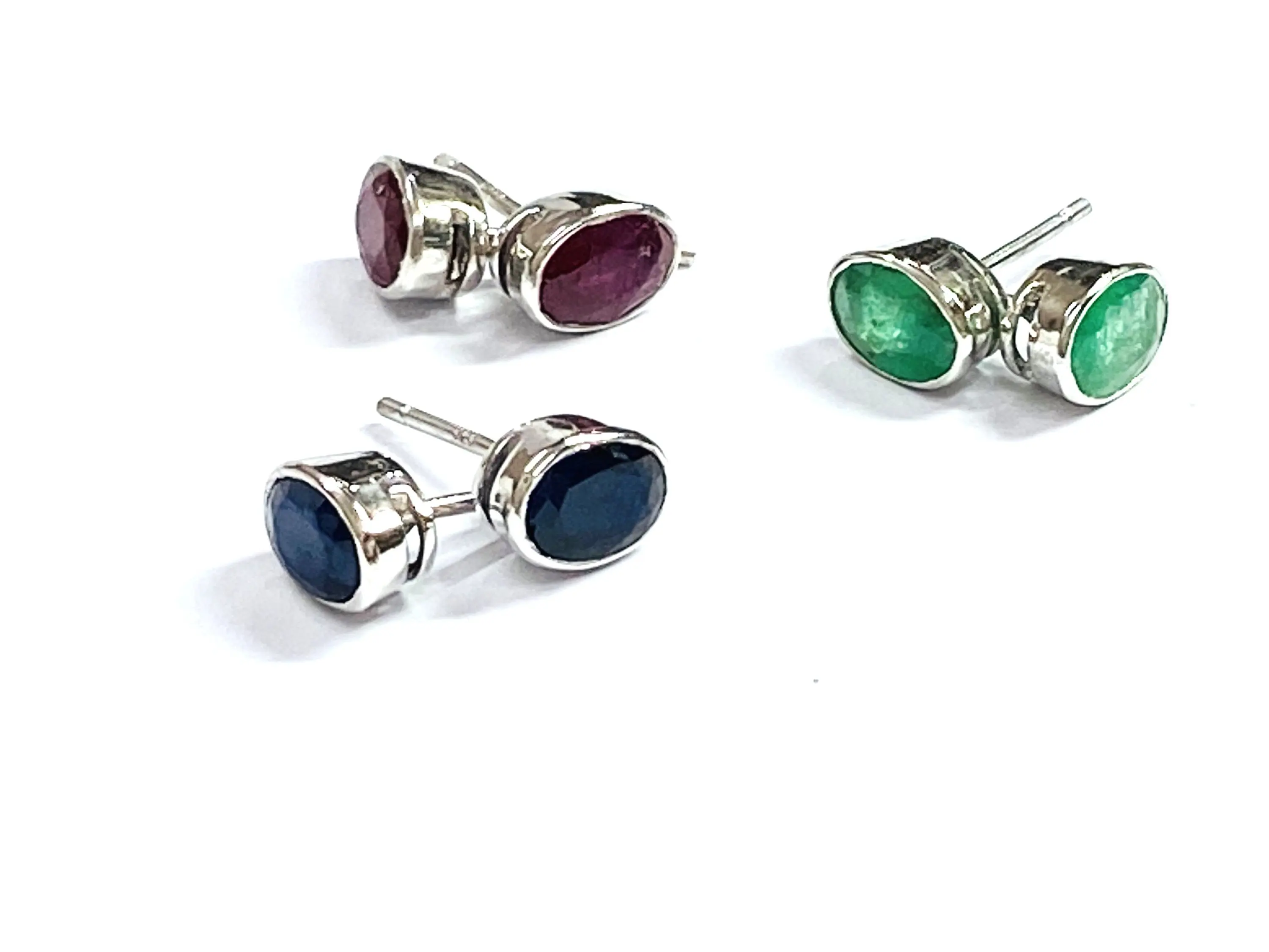 STUD EARRINGS WITH NATURAL EMERALDS,ruby,Sapphire