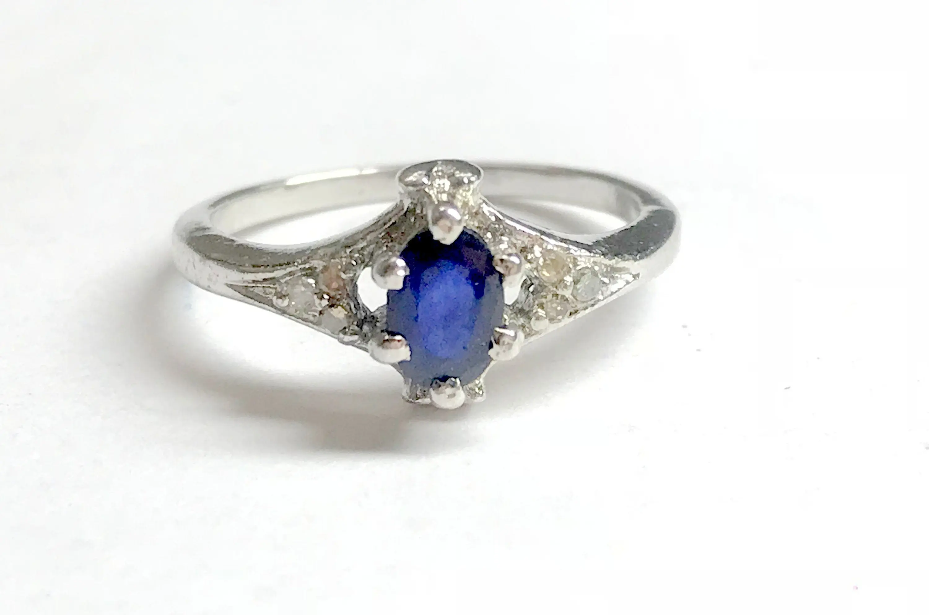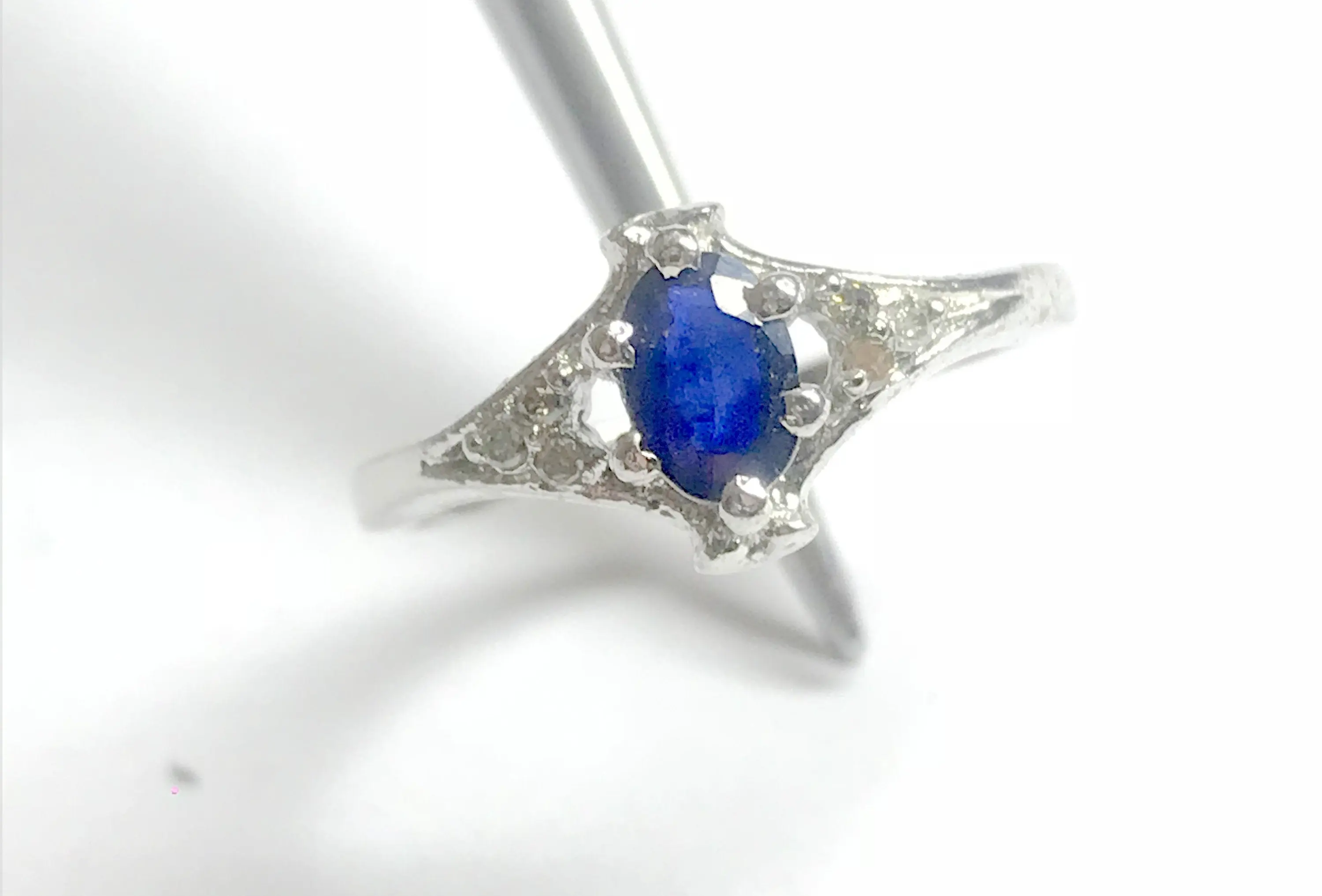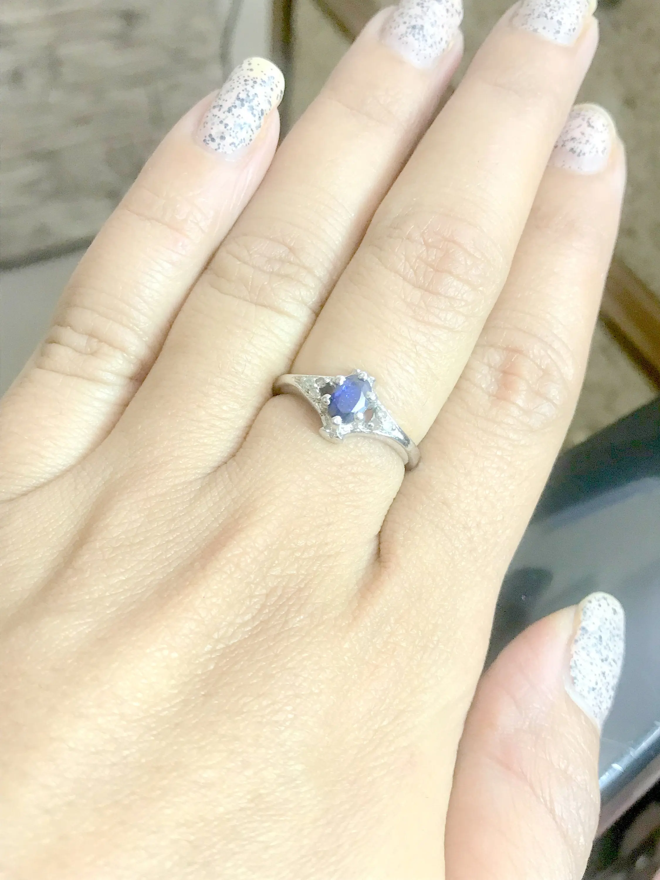 BLUE SAPPHIRE Ring with Diamonds ,September Birthstone, Promise ring for her, Valentine Gift for her