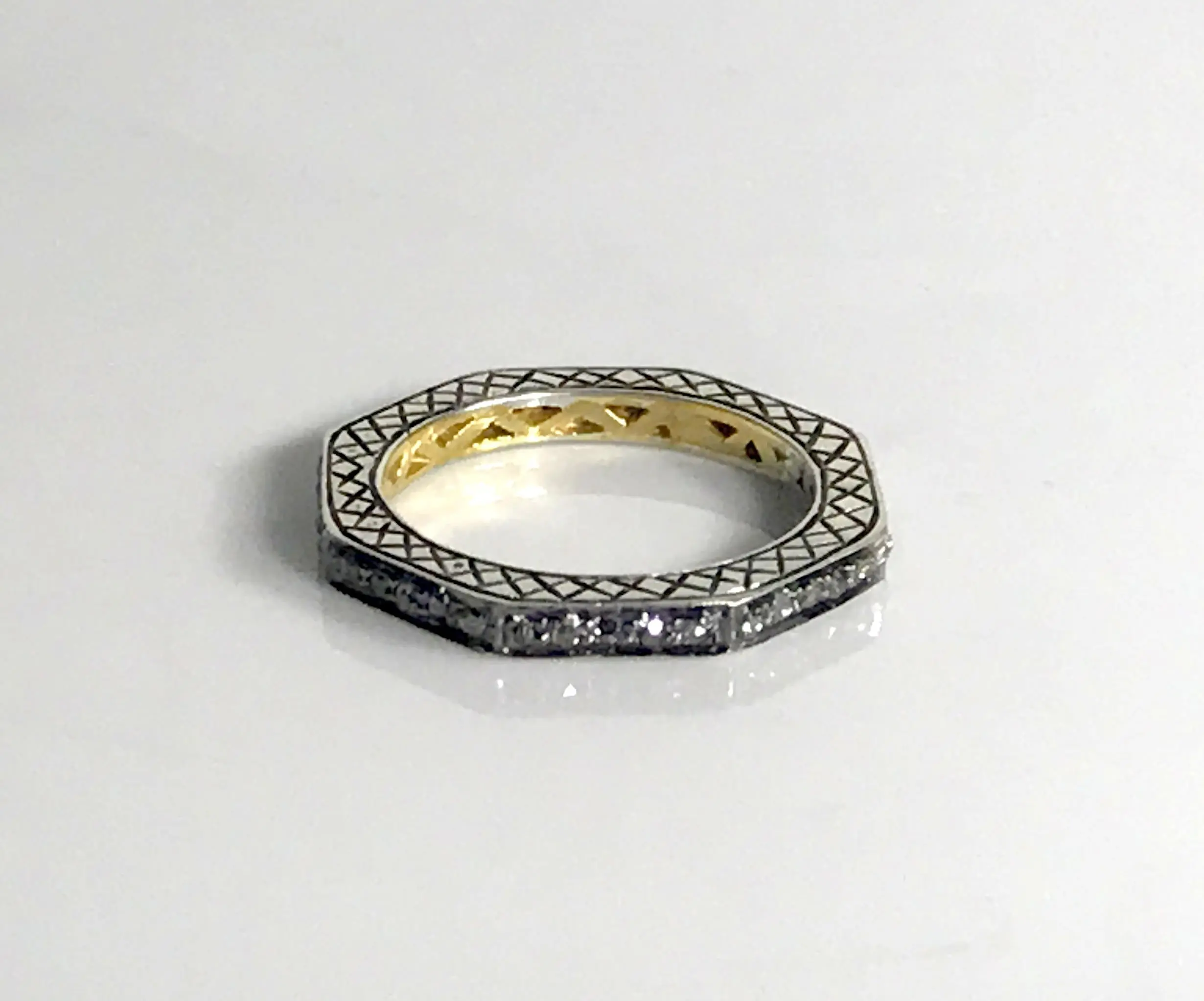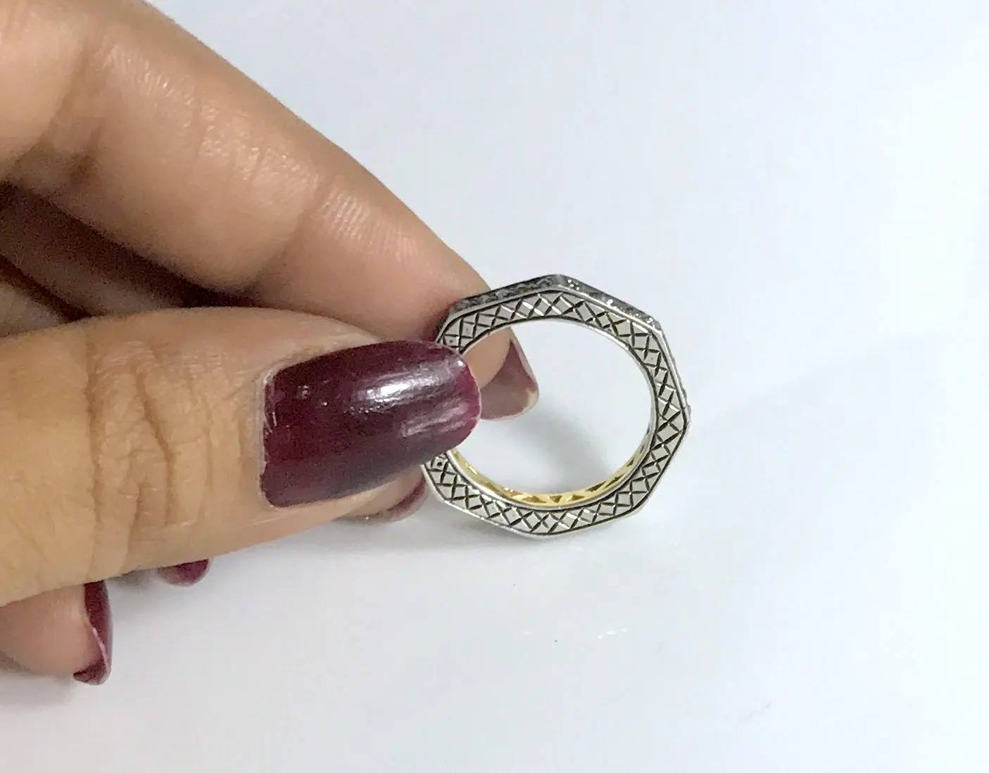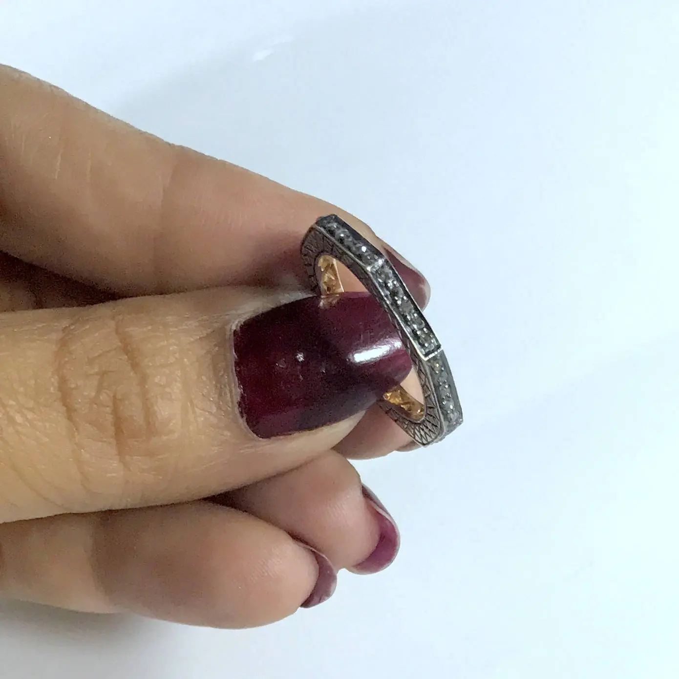 NATURAL DIAMONDS RING in sterling silver, antique silver jewelry , victorian style , women ring .......... ,vintage jewelry collection studded with 100% natural Rose cut diamonds in pave set......and black rhodium and gold plated plated......................