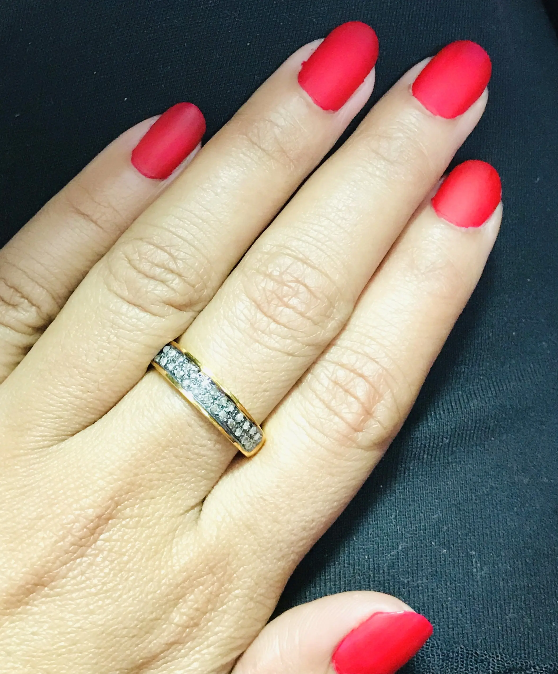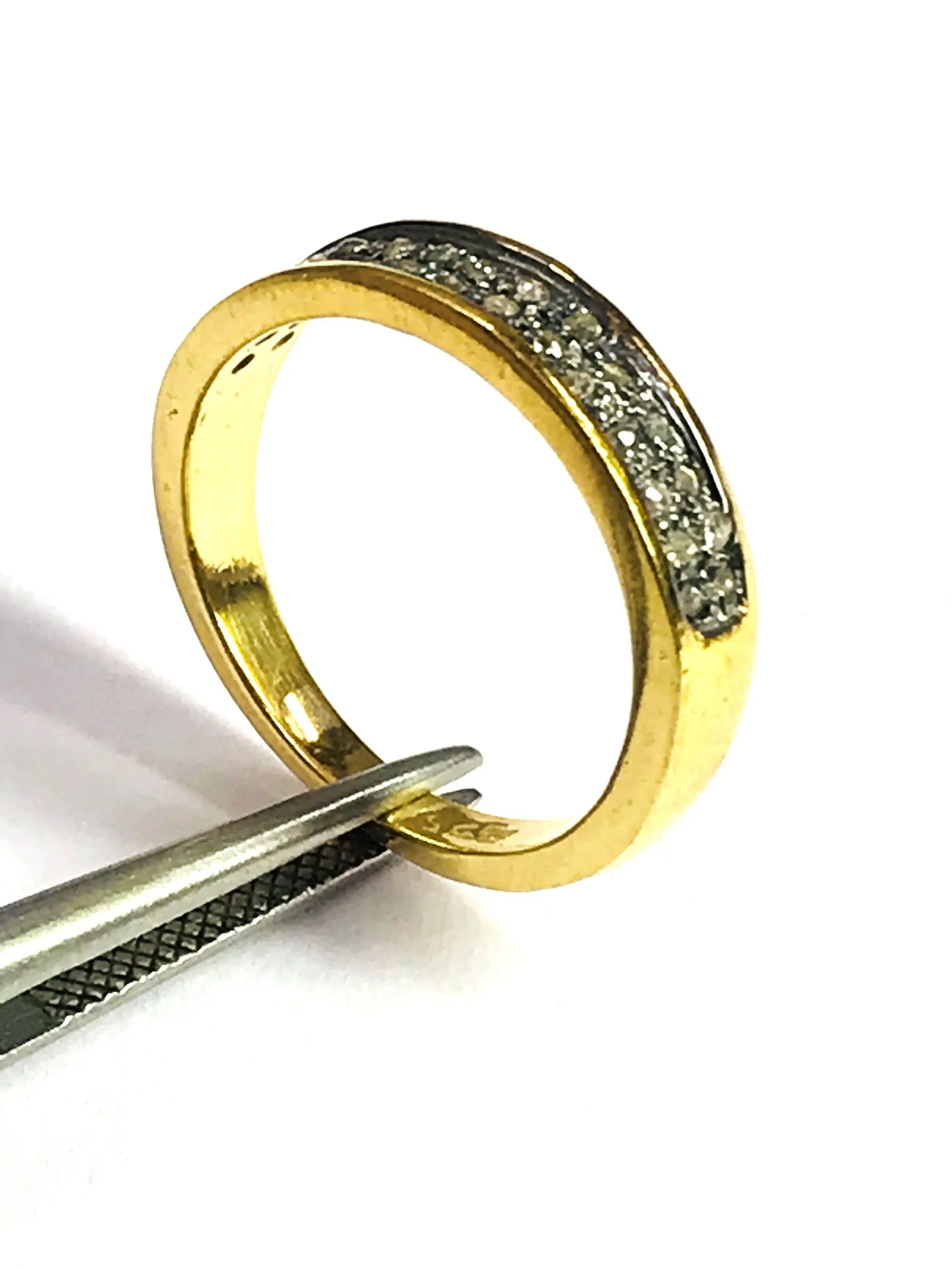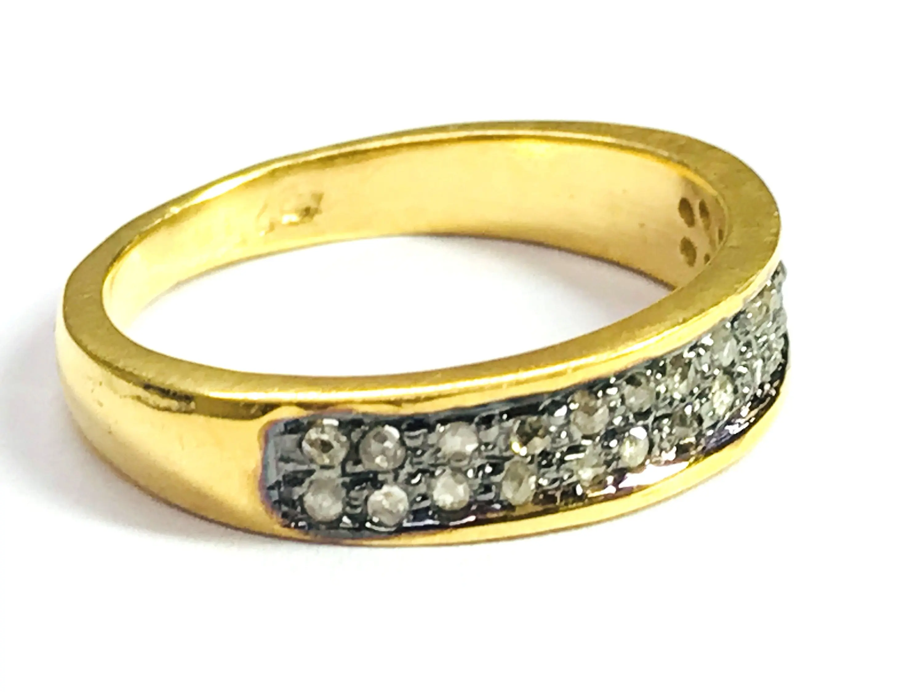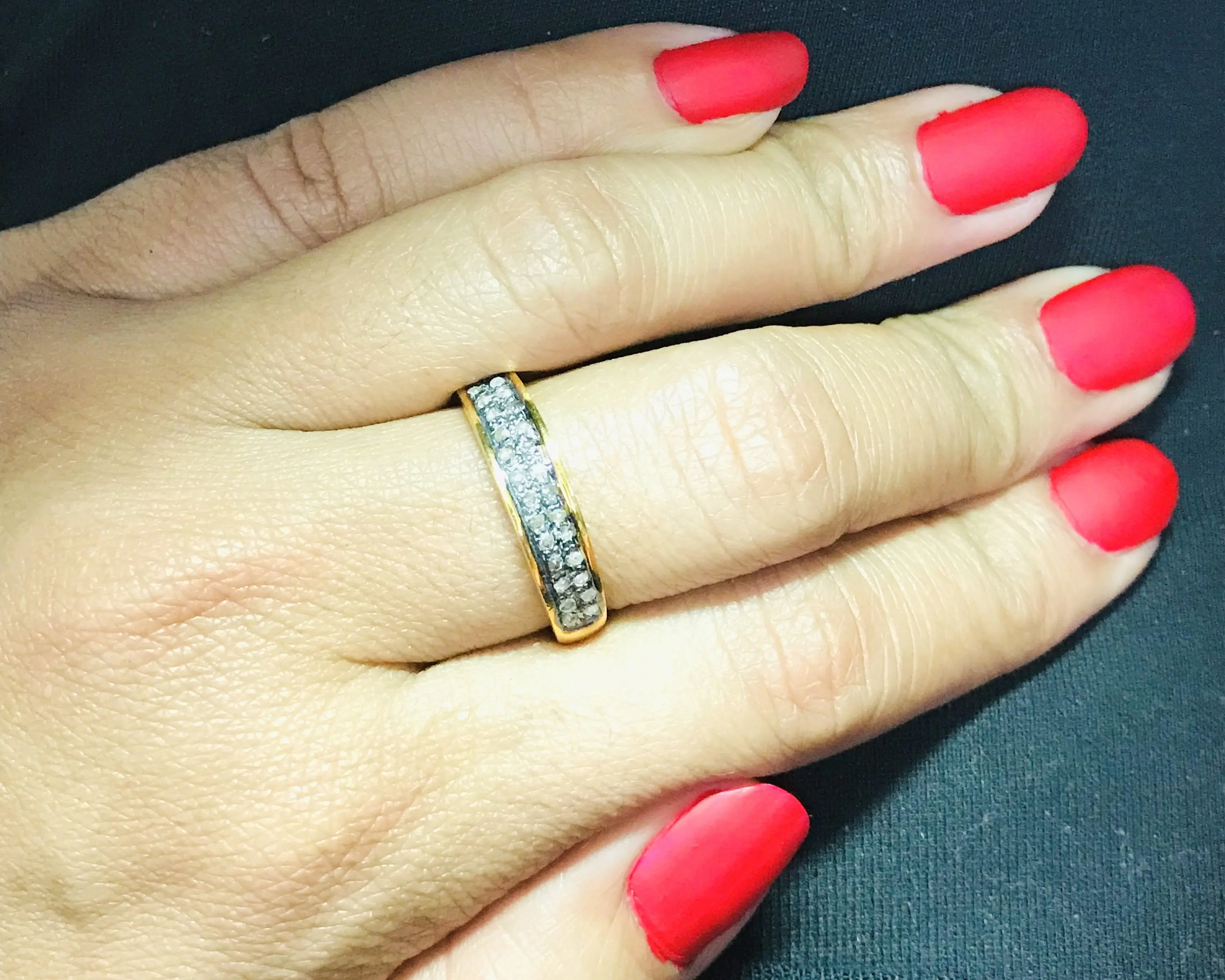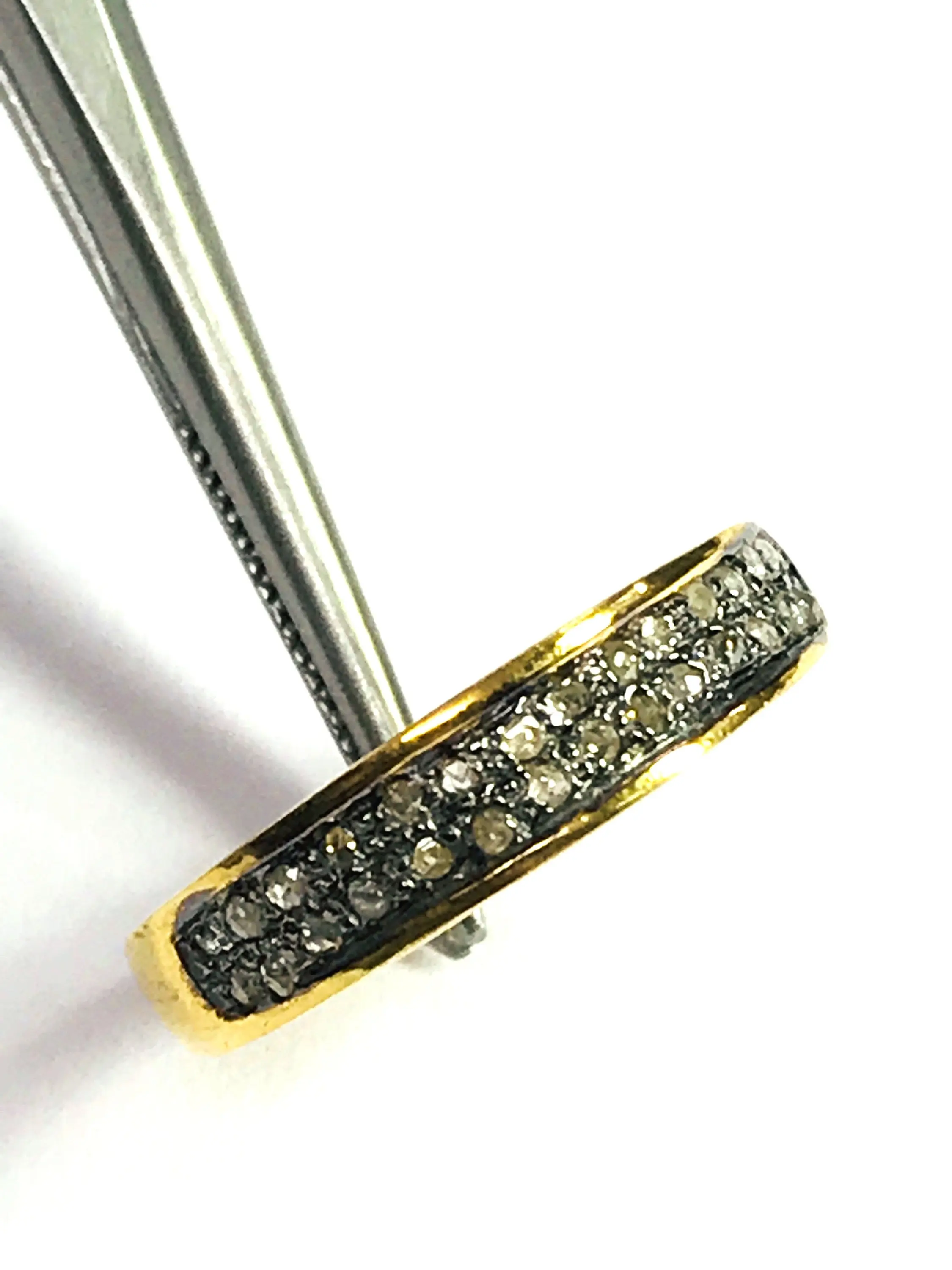 single solitaire hand cut diamond Eternity band ring studded with 100% natural Rose cut diamonds in pave set......and black rhodium and gold plated plated......................