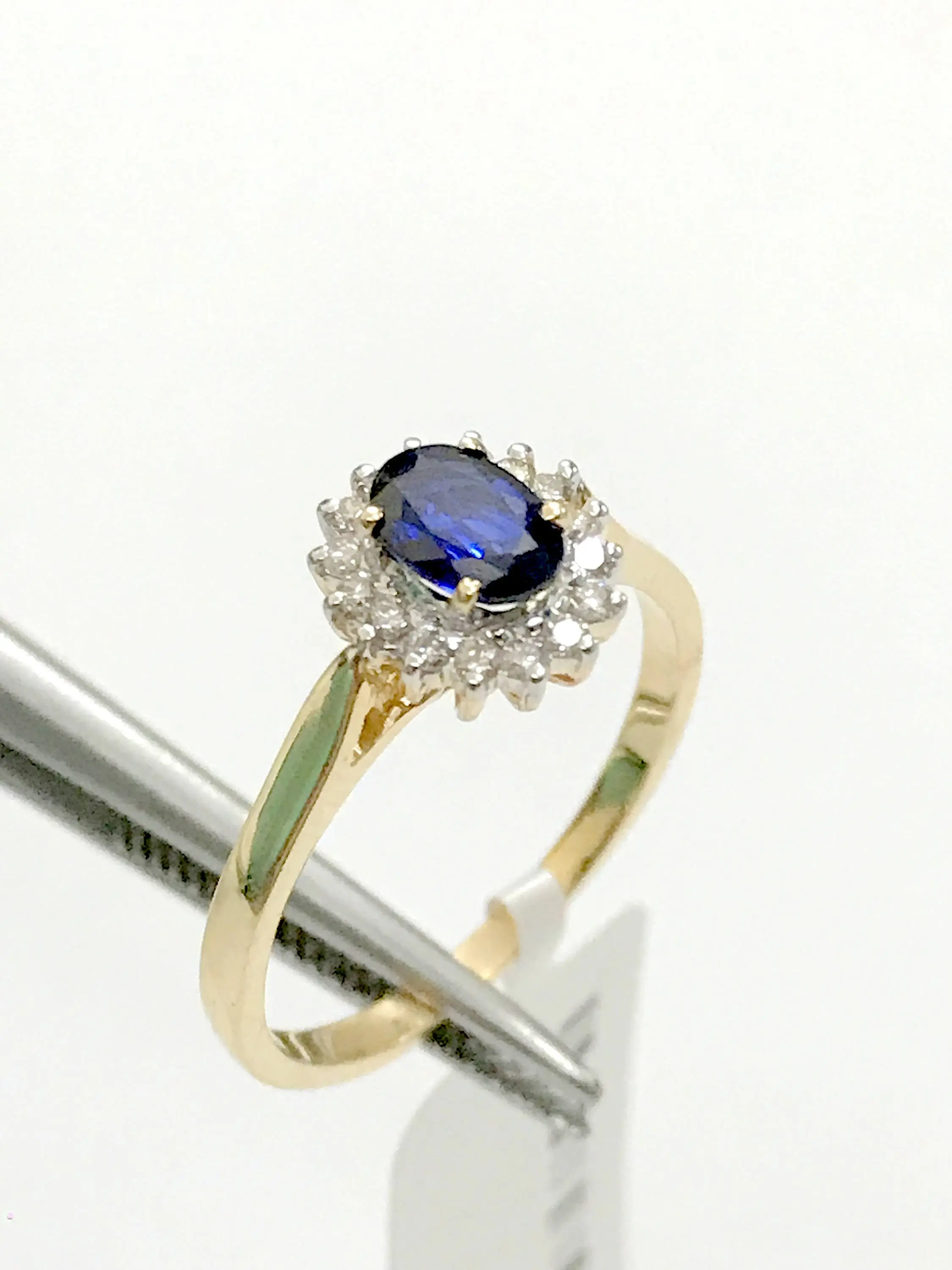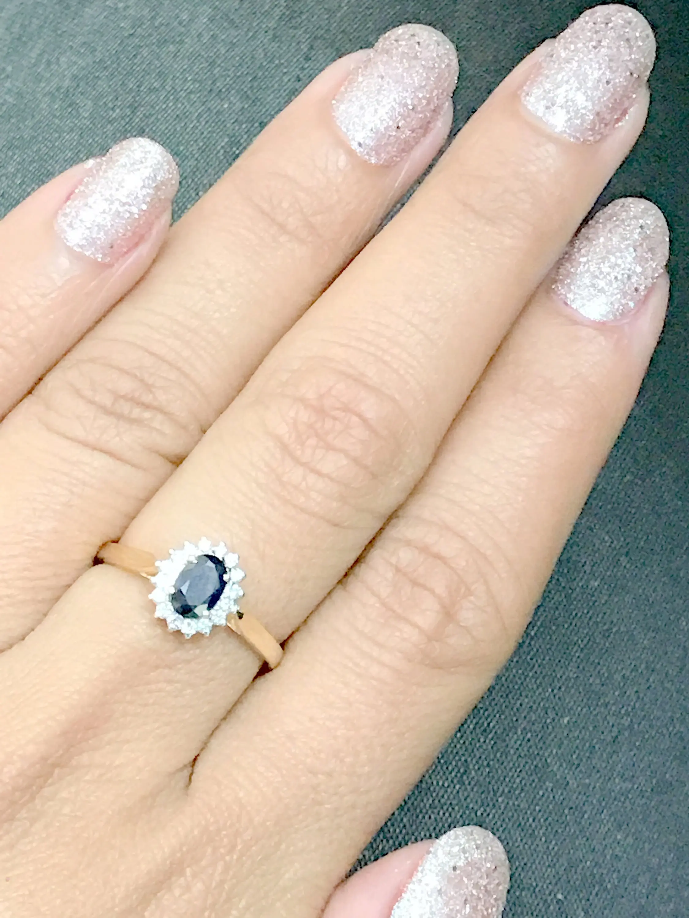 BLUE SAPPHIRE DIAMOND Halo Ring , September Birthstone , Elegant looks , Engagement ring ,Eternity Ring , 14k Gold Ring ,Diana Ring