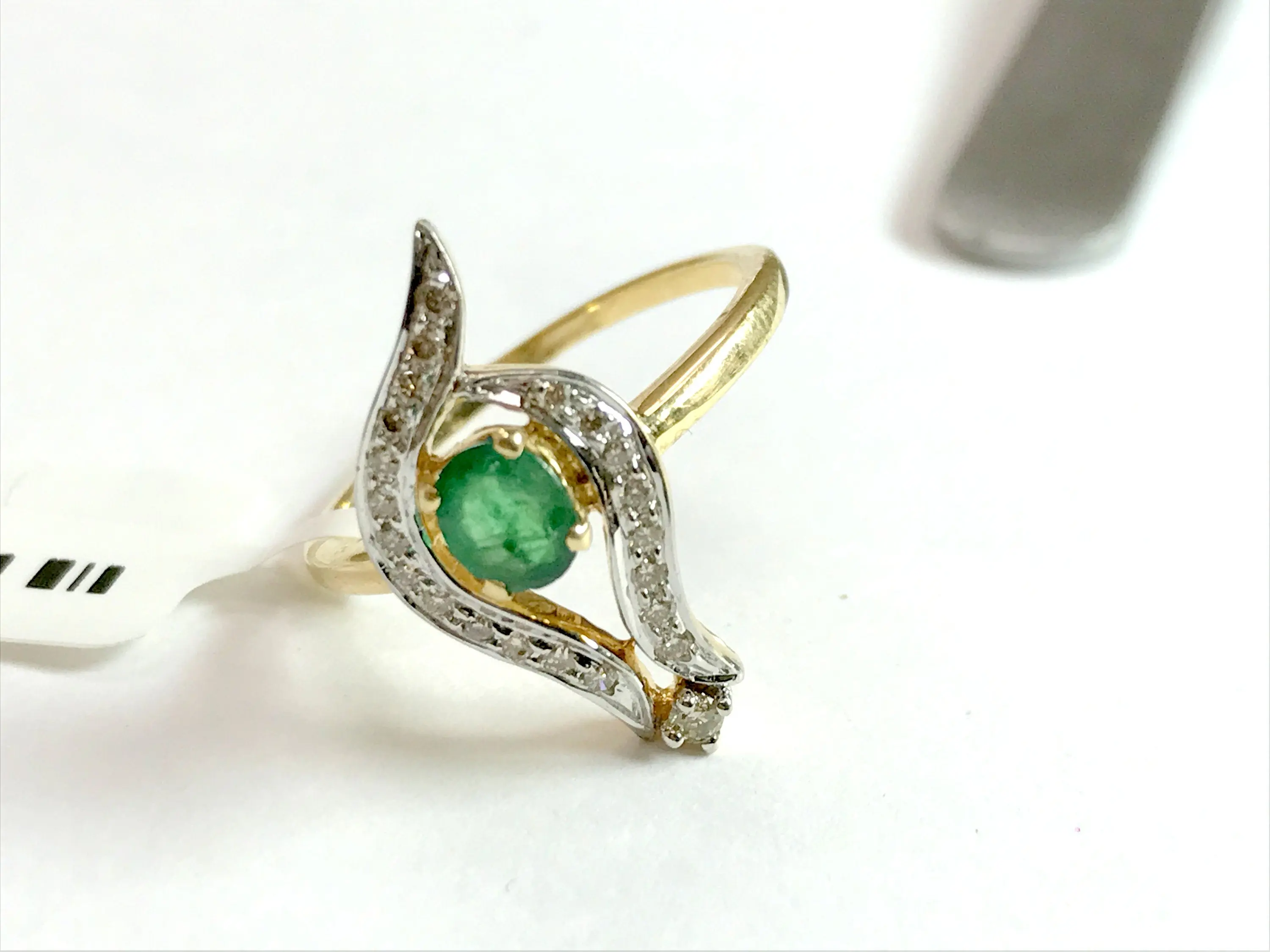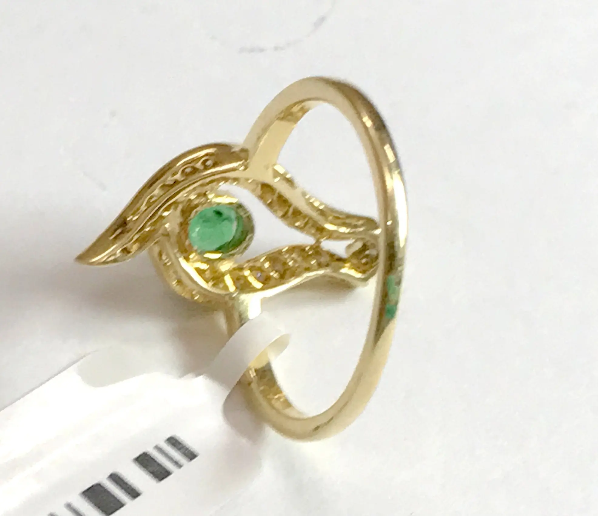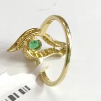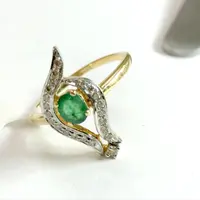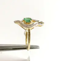 EMERALD DIAMOND DESIGNER 14K Gold Ring, Leaf Pattern ,May Birthstone,Engagement & Wedding Gift ,Promise ring for her