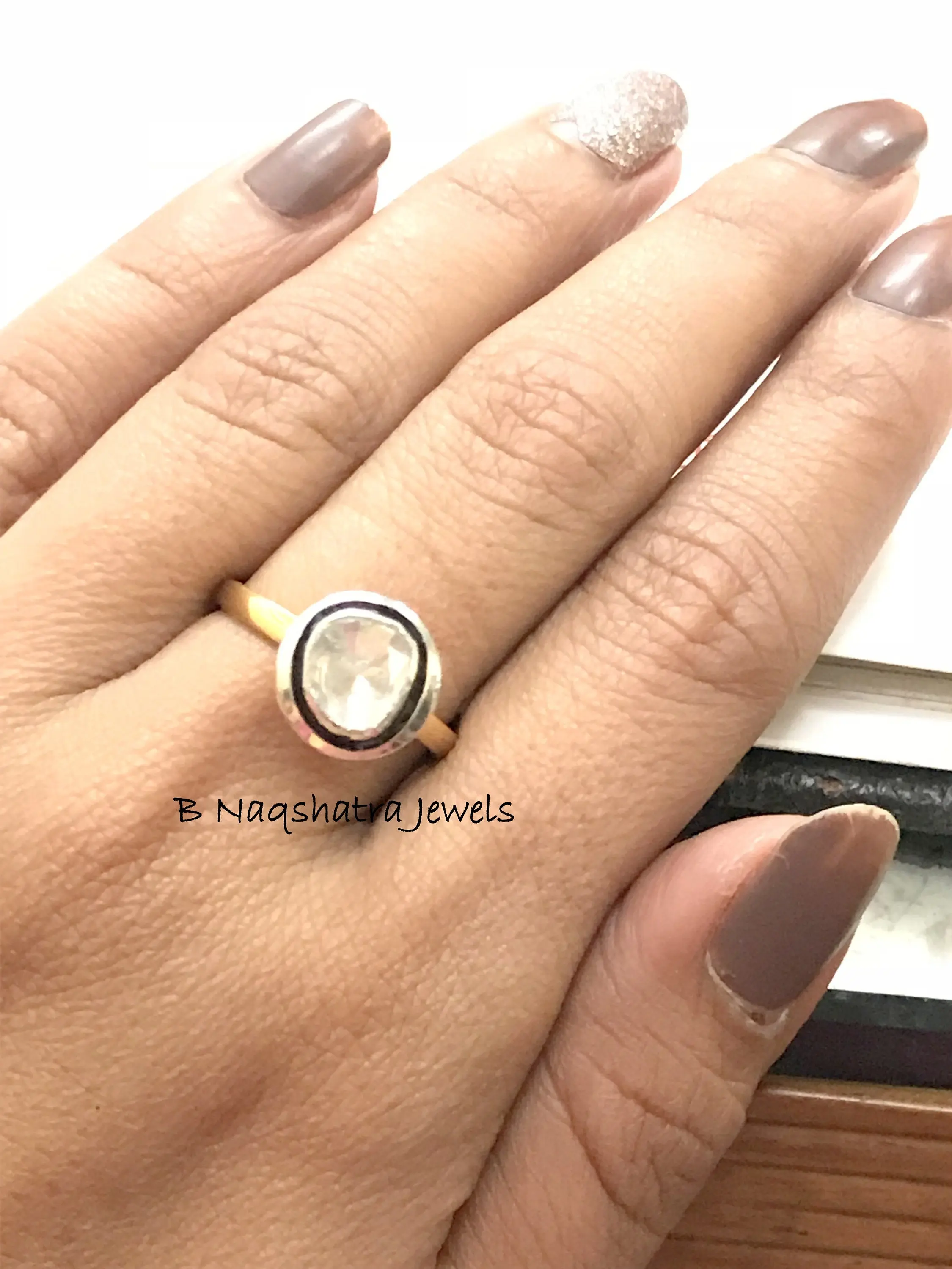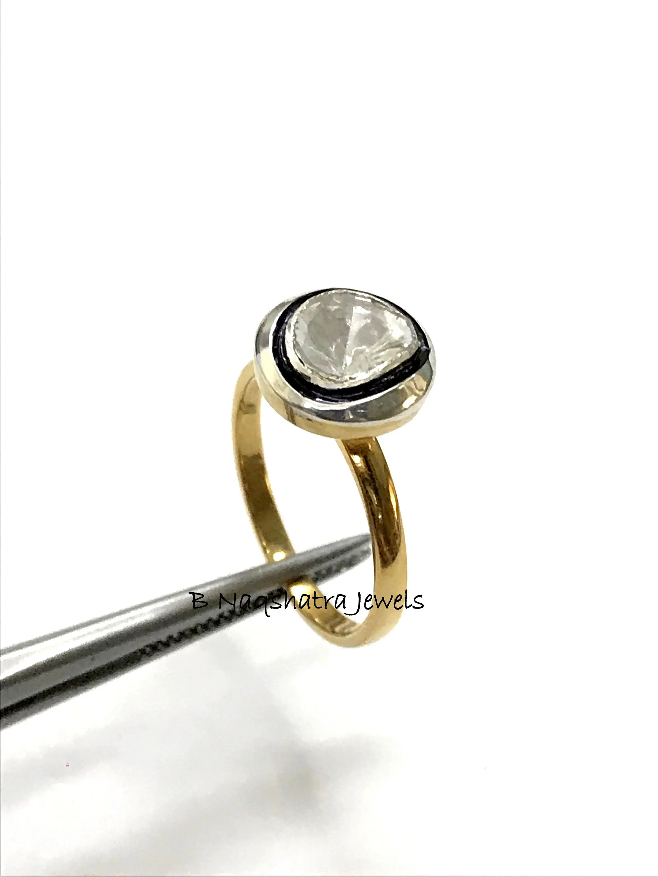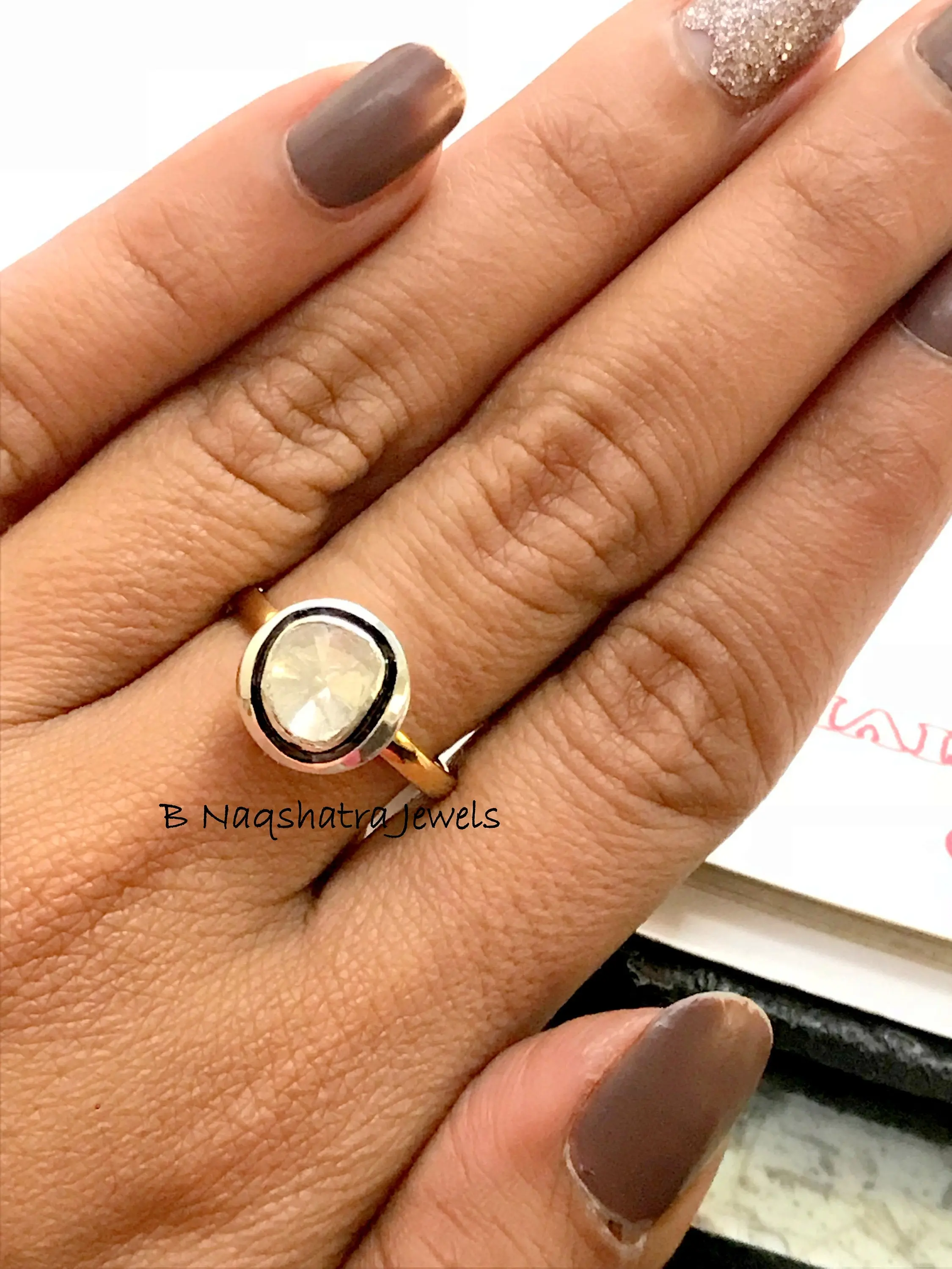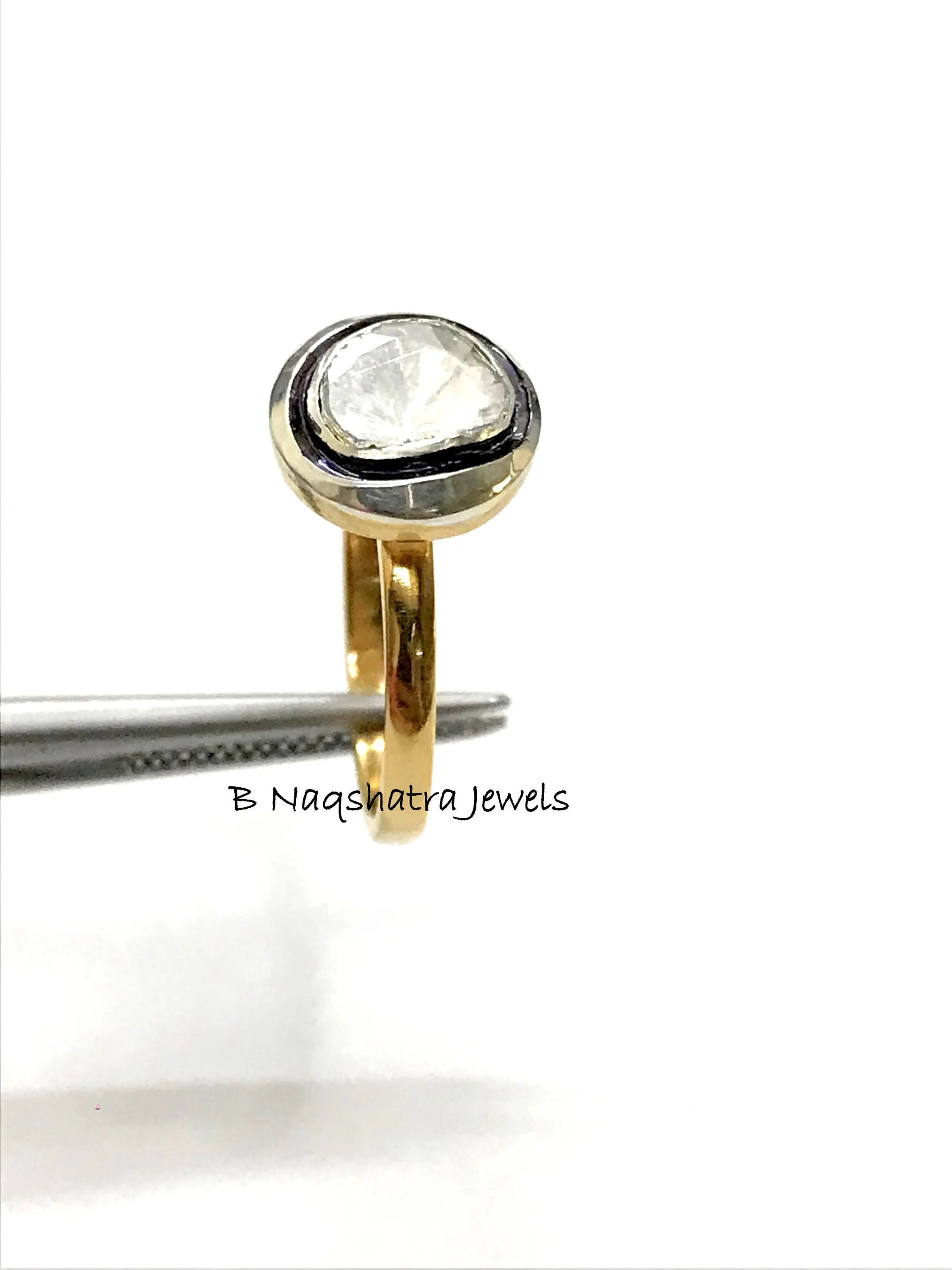 NATURAL ROSECUT DIAMONDS 925 Sterling silver Ring , Diamond Engagement Ring , Solitaire Ring ,Vintage Wedding Band , April Birthstone.....