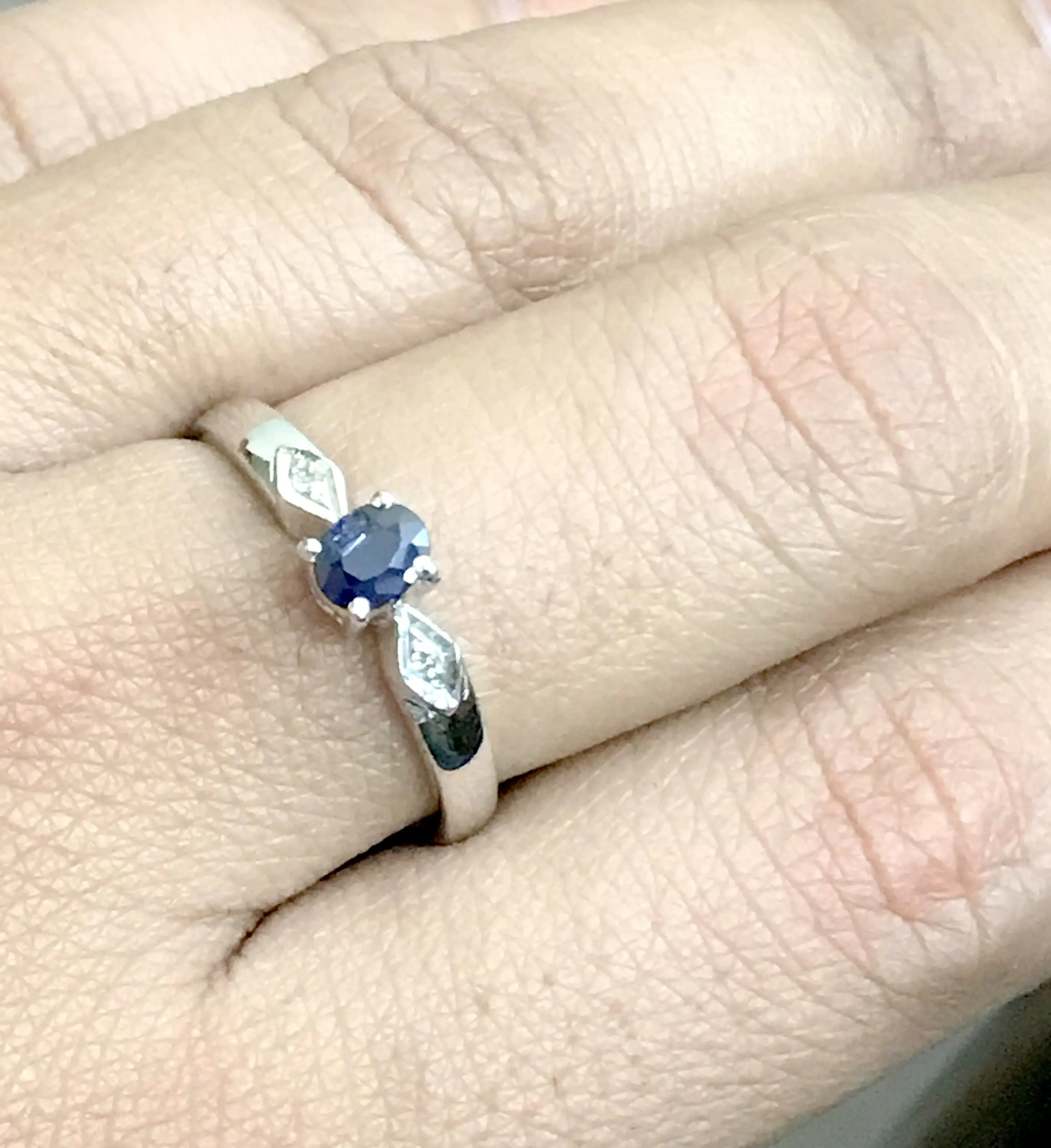BLUE SAPPHIRE RING with single cut Diamonds ,September Birthstone Ring, small lovely wedding band , sapphire rings, Christmas special gift