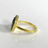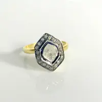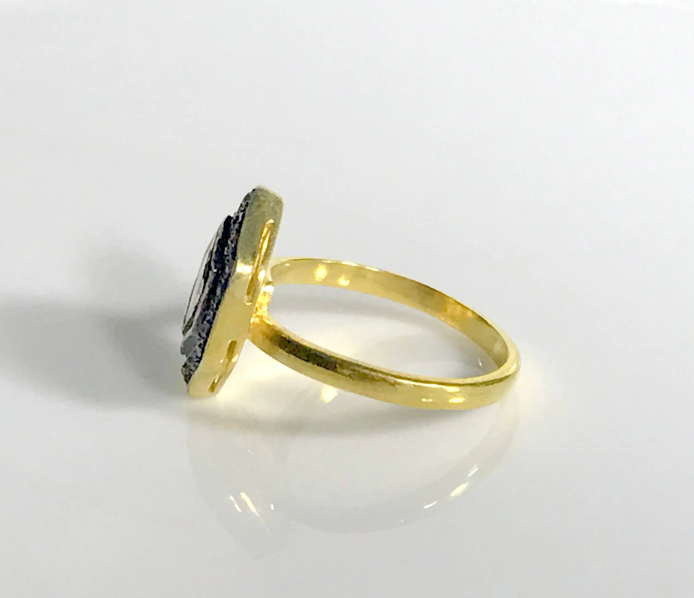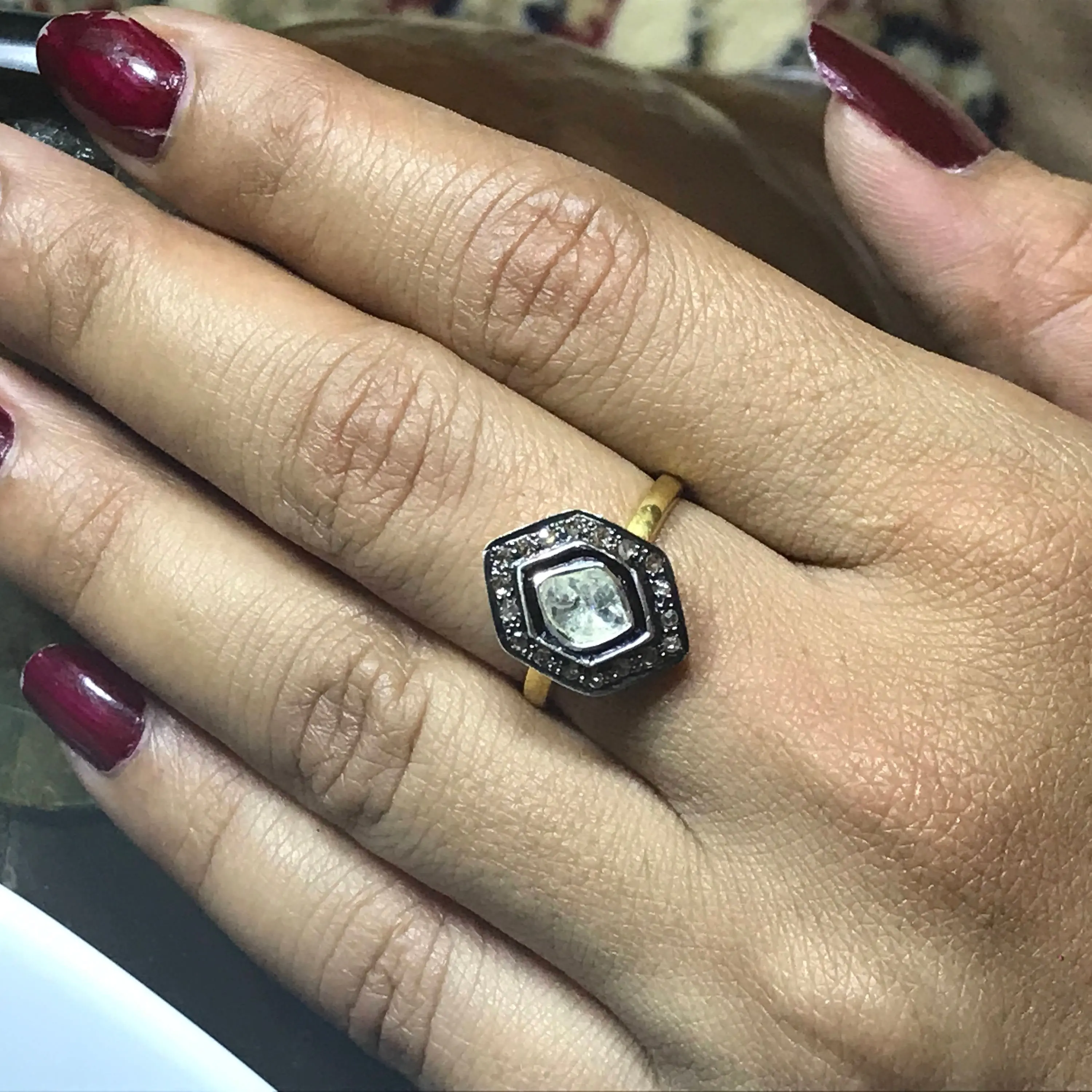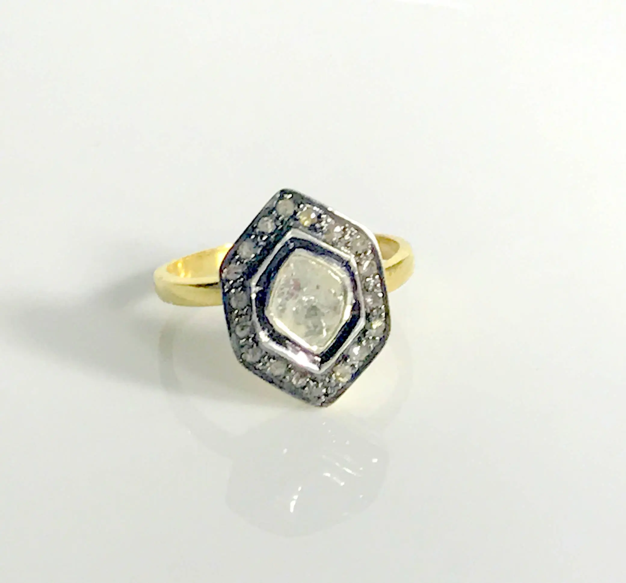 single solitaire hand cut diamond ring studded with 100% natural Rose cut diamonds in pave set......and black rhodium and gold plated plated......................