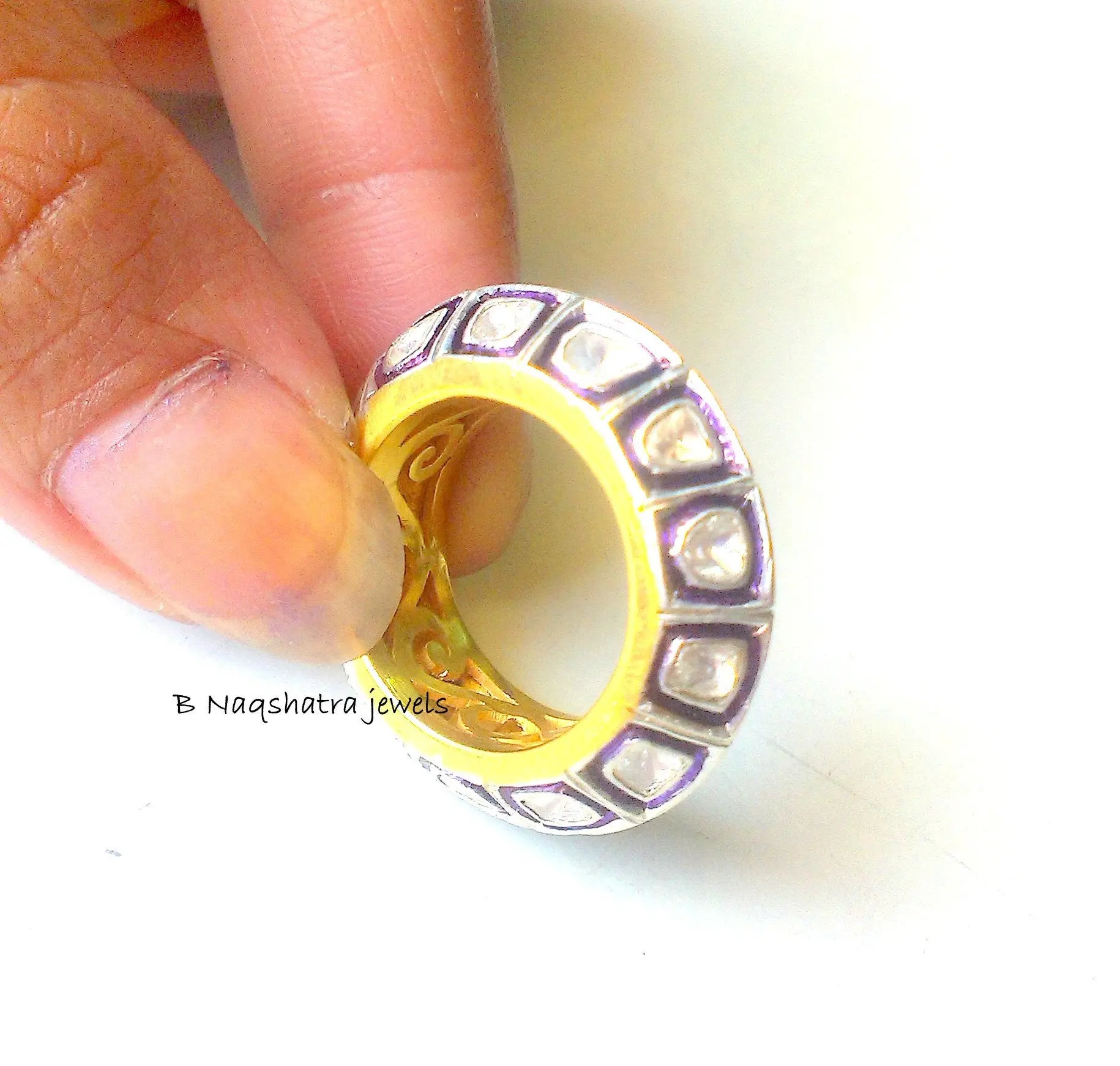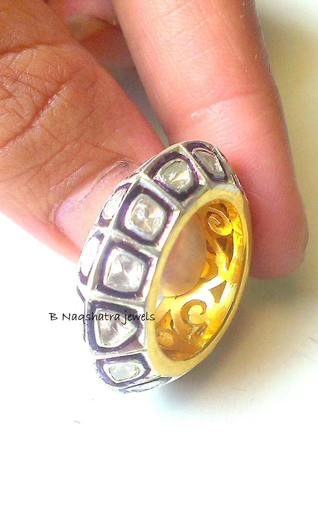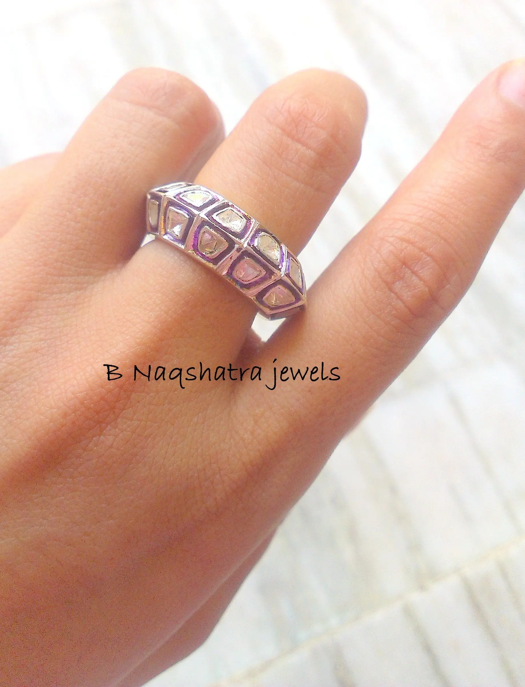 finest handmade art , elegant design , antique style , victorian polki diamonds ring in 925 sterling silver ........