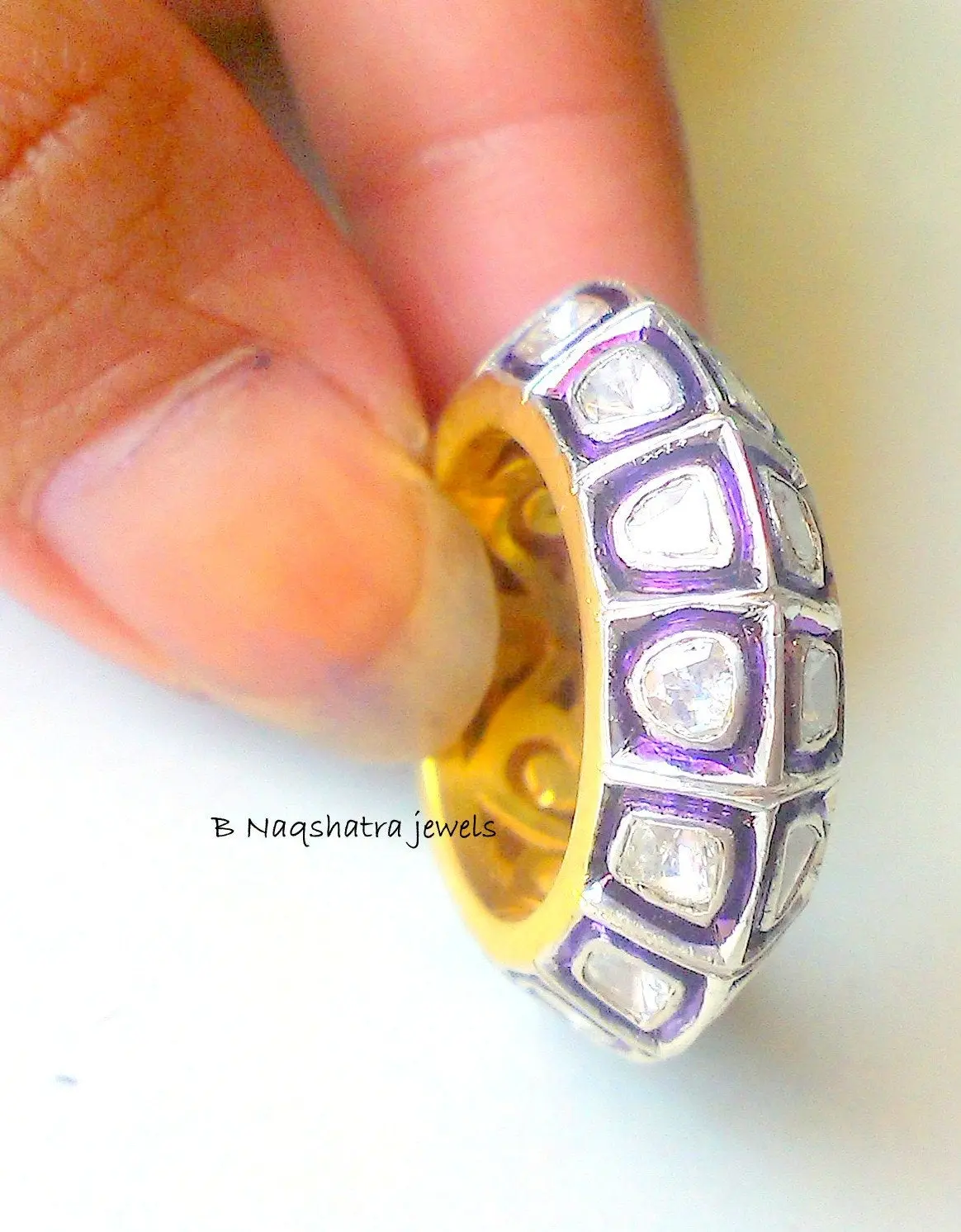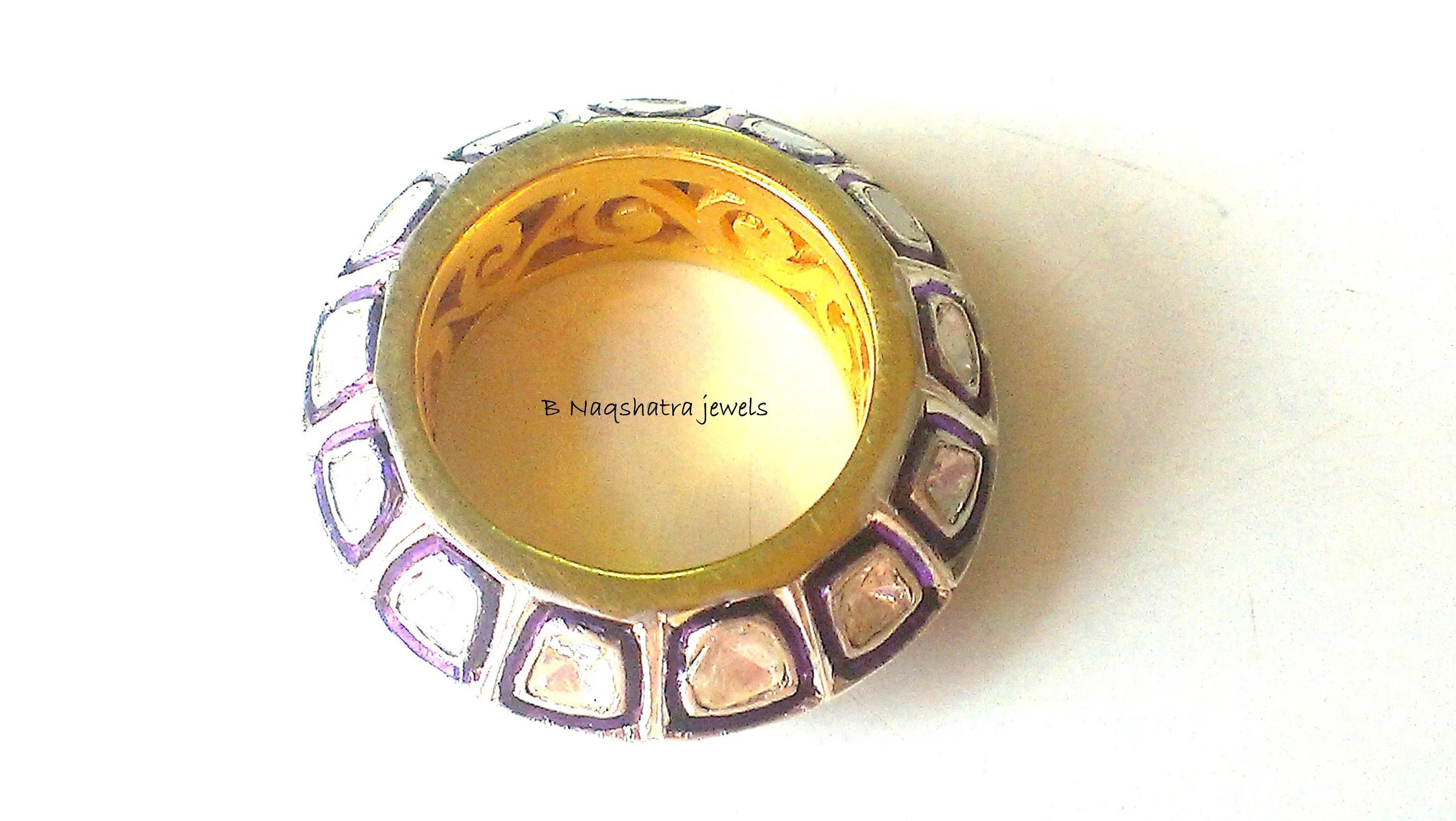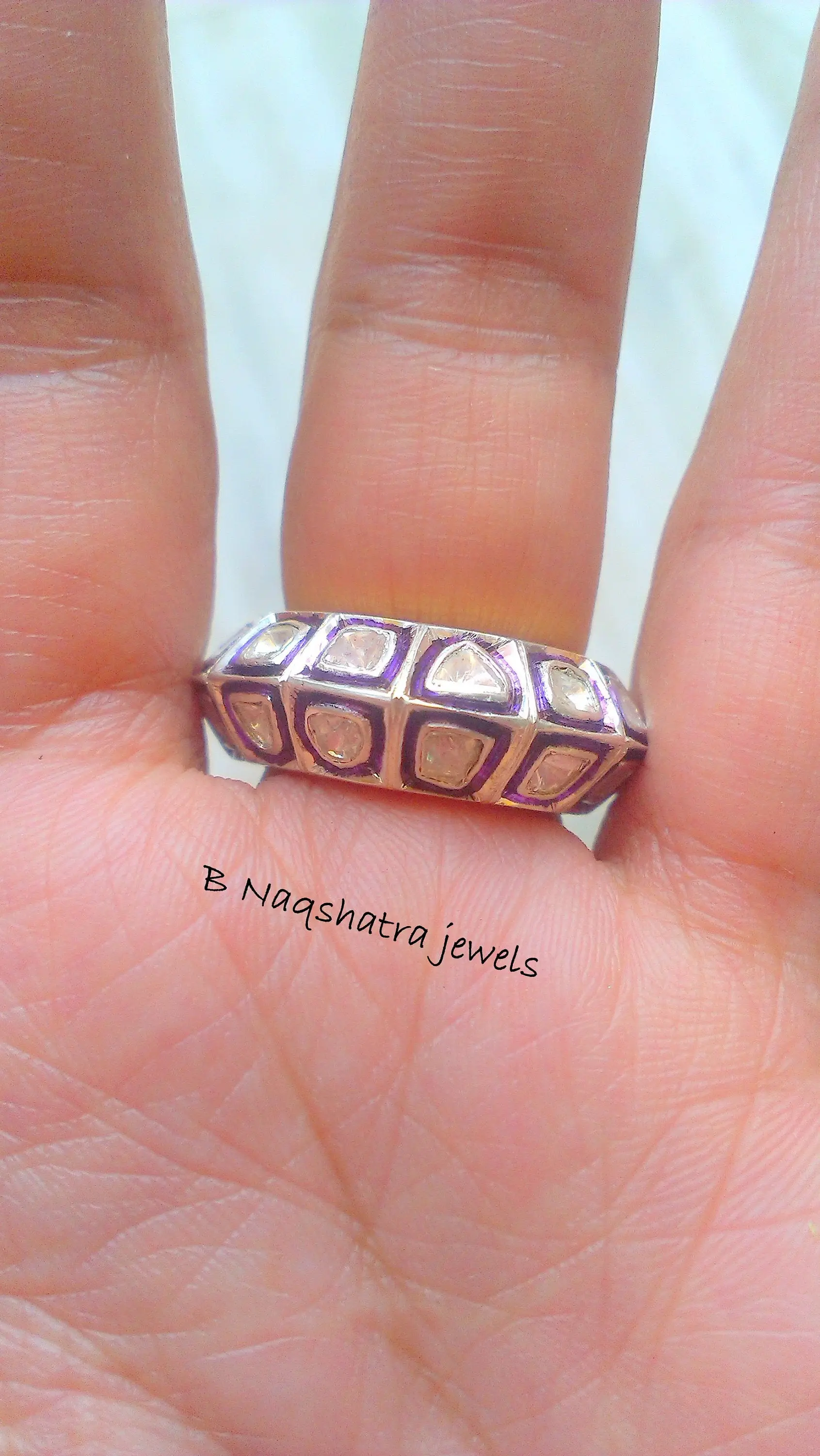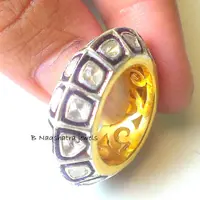 finest handmade art , elegant design , antique style , victorian polki diamonds ring in 925 sterling silver ........