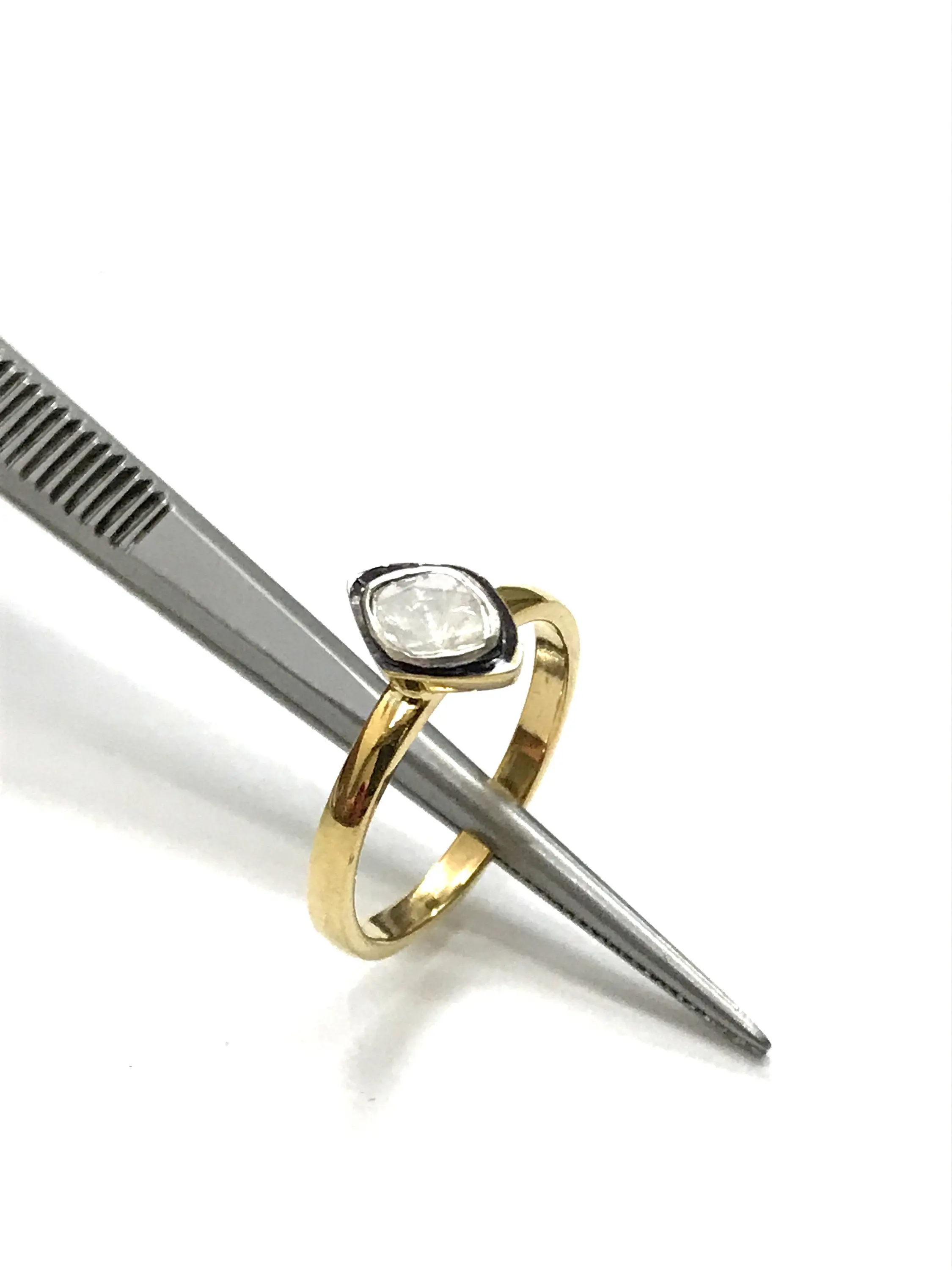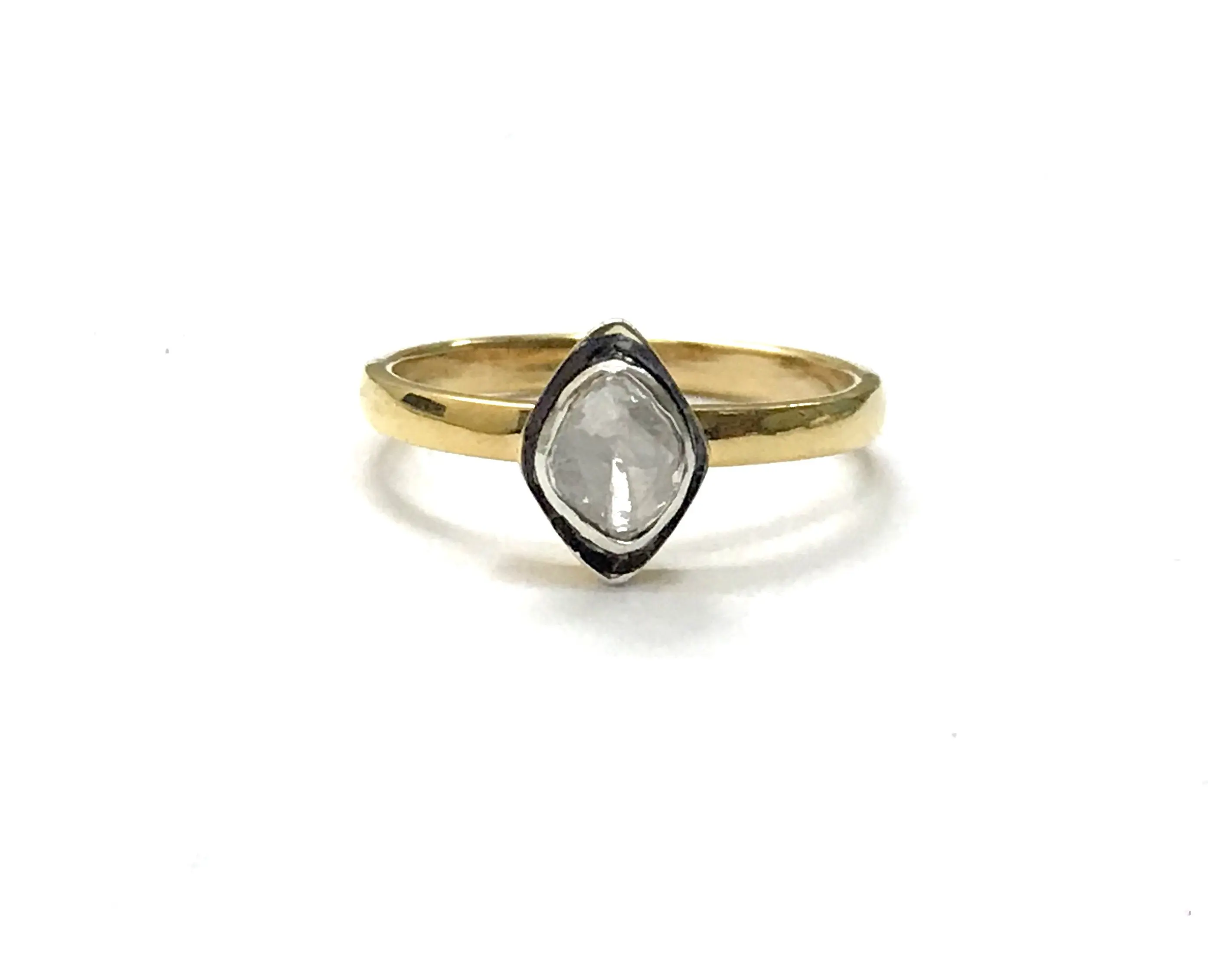 KITE SHAPE SOLITAIRE ROSE CUT DIAMOND ENGAGEMENT RING............