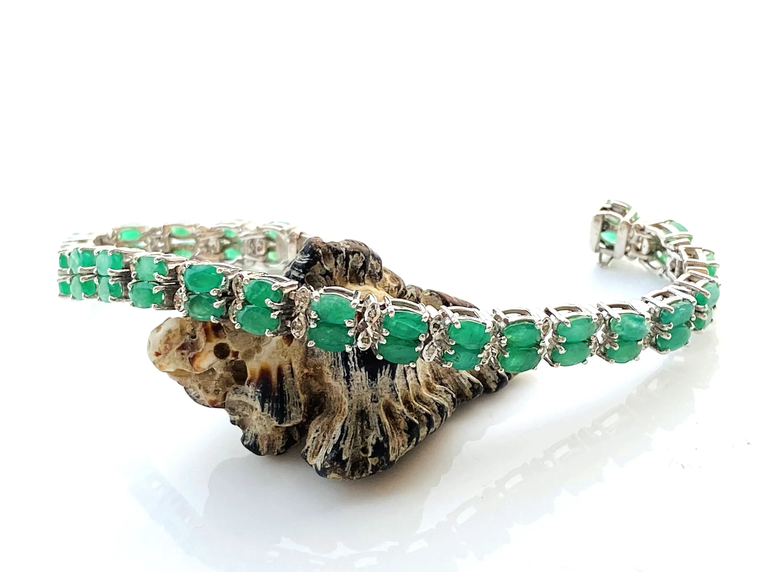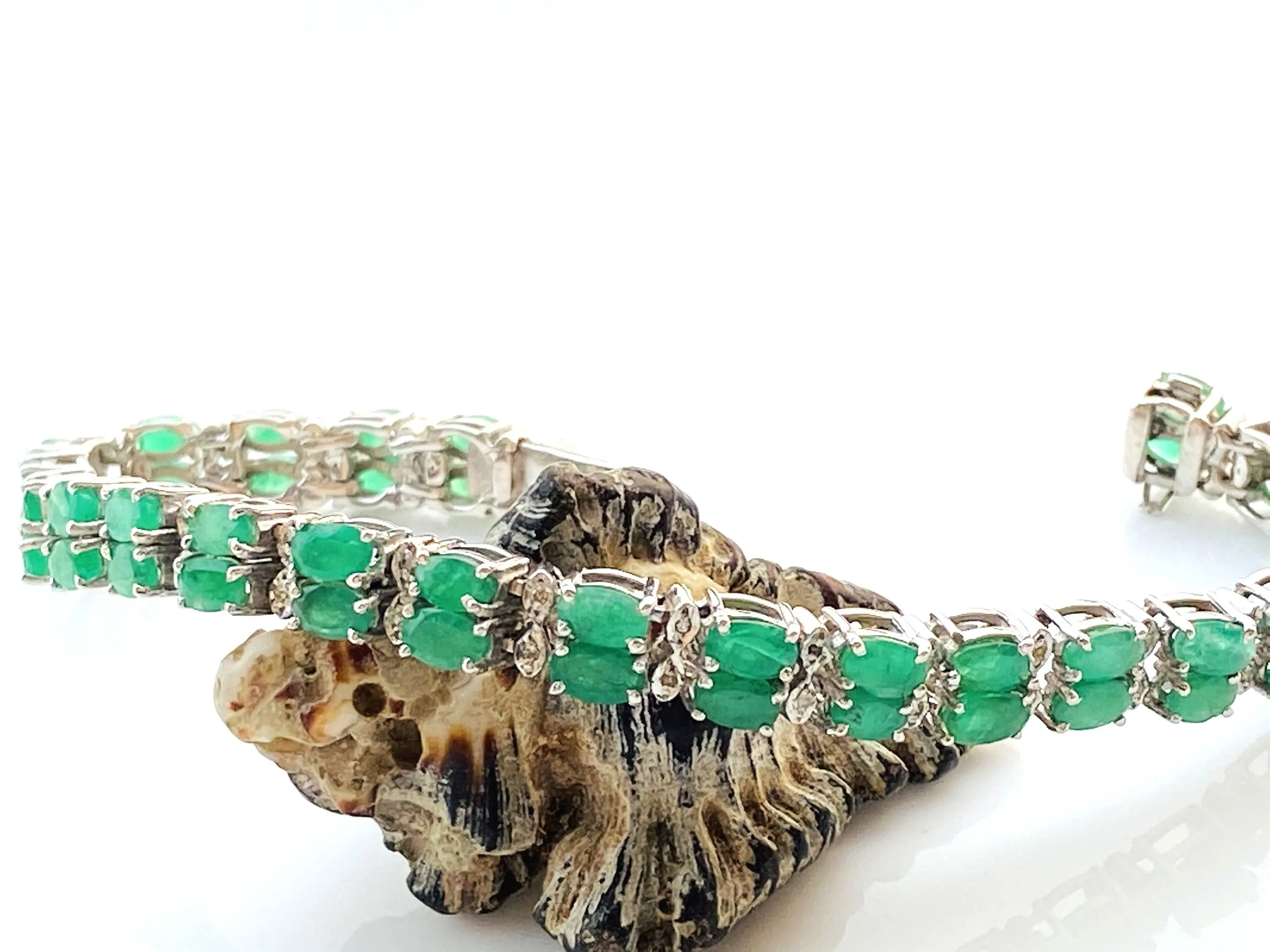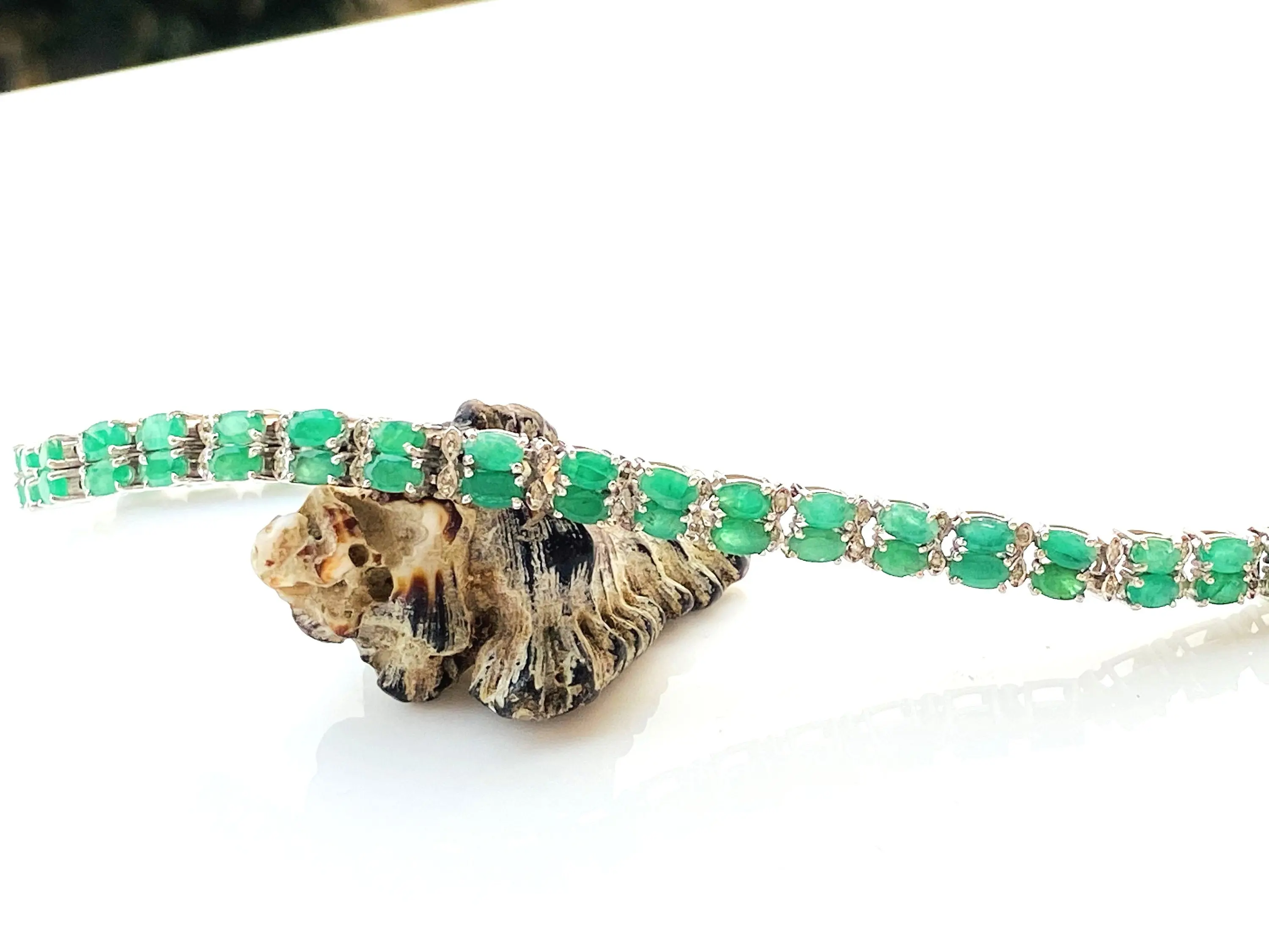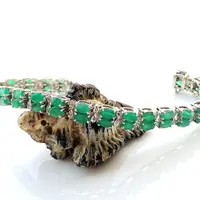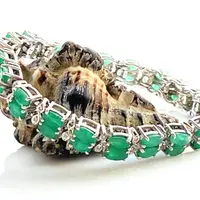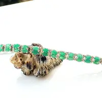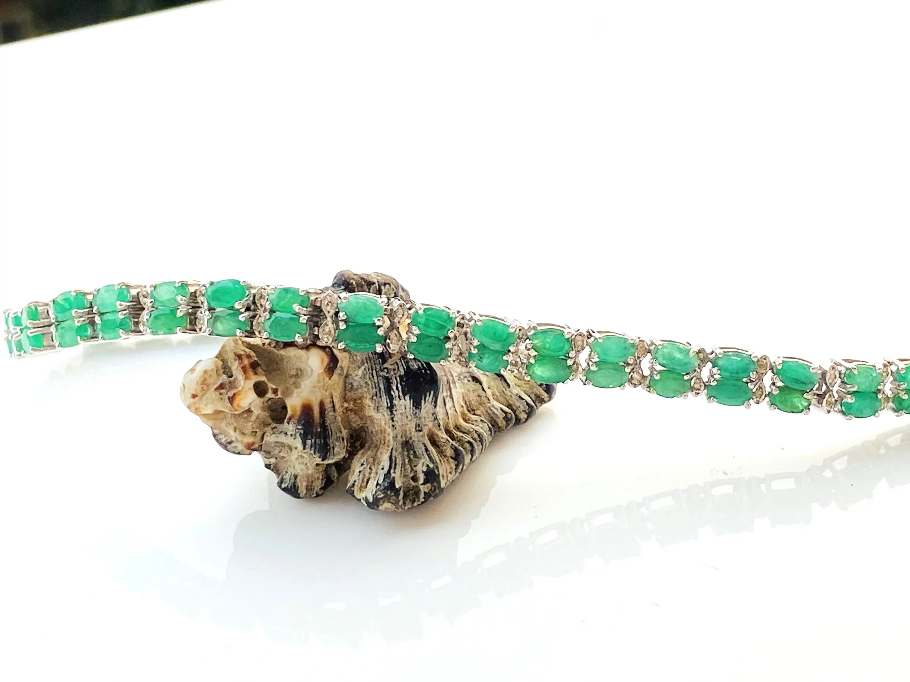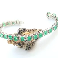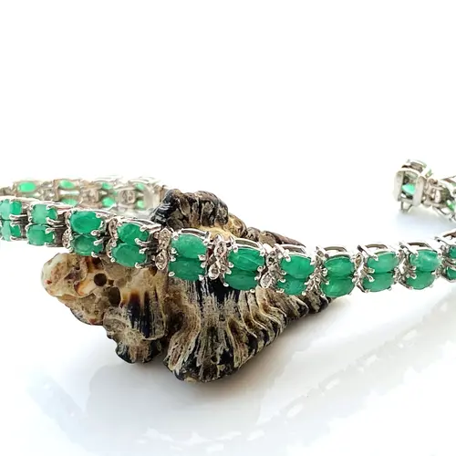 EMERALD DIAMOND BRACELET , 7.5 inches 925 sterling silver ,Zambian Emerald , May Birthstone ,Wedding Gift, Women Bracelets , Christmas gift