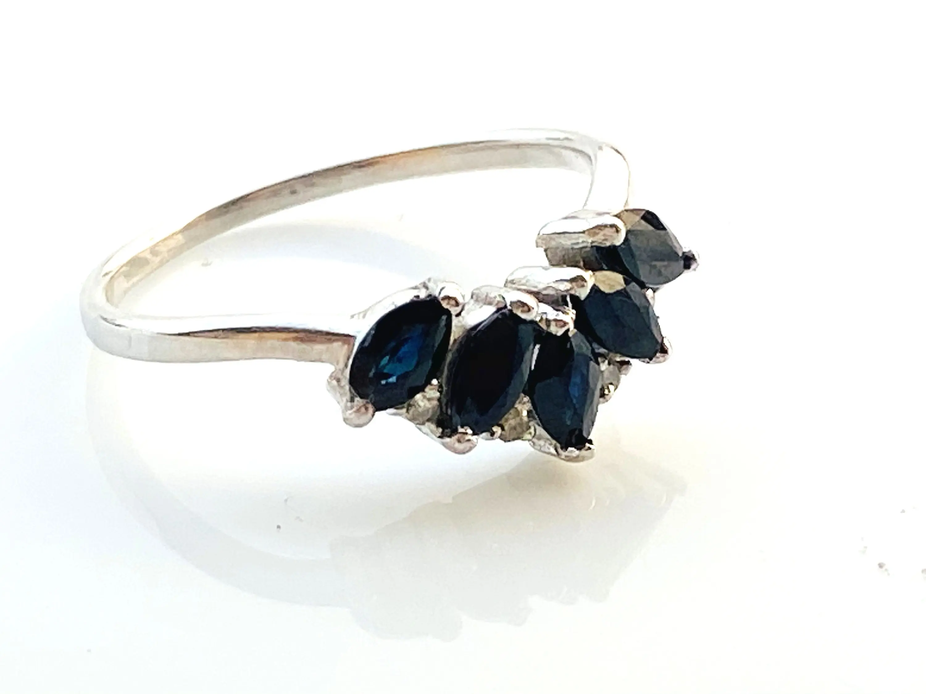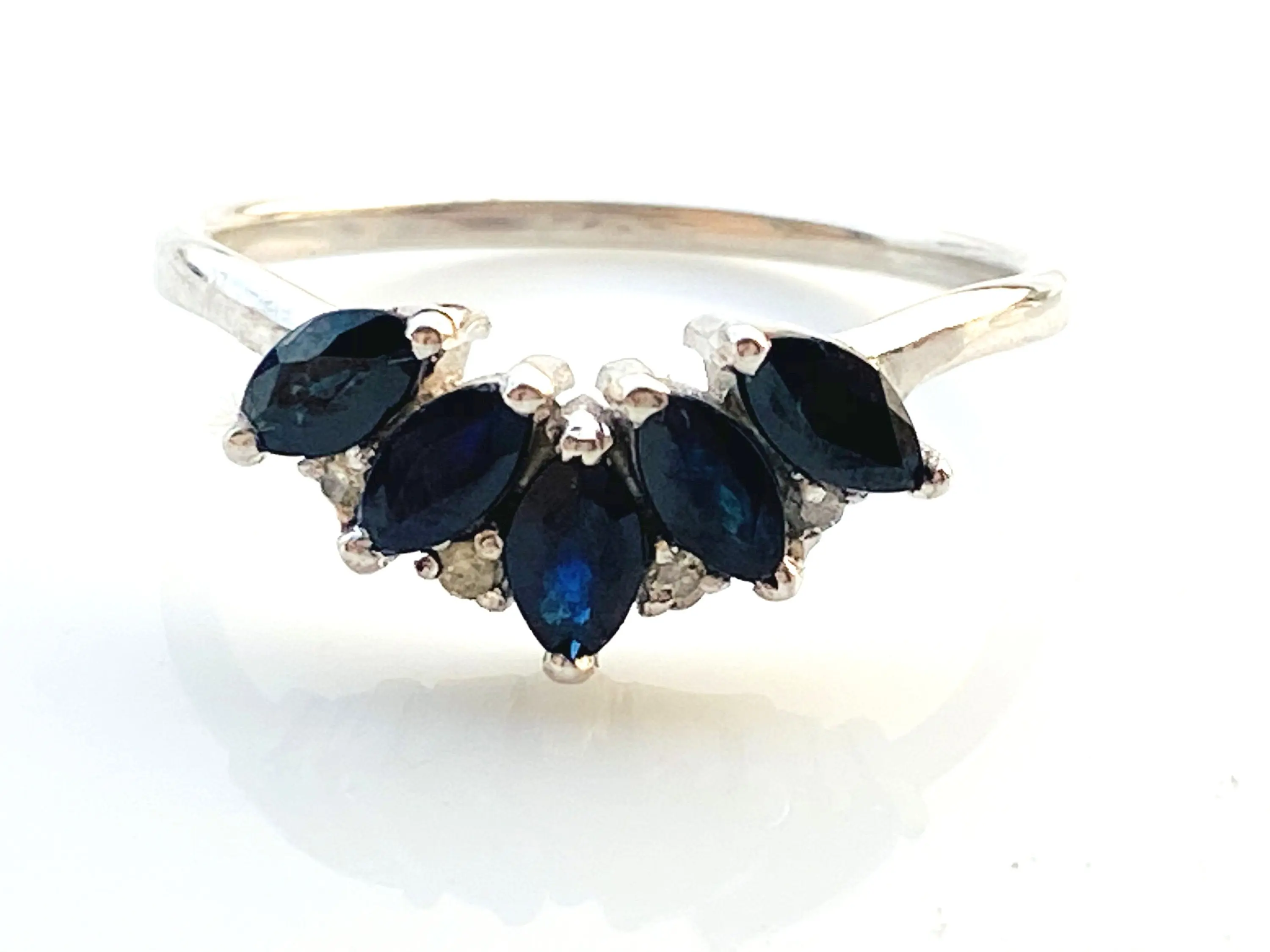 Natural SAPPHIRE Crown Wedding Band, Dainty Ring ,Natural blue sapphire gemstone , September Birthstone, Promise Gift For her.