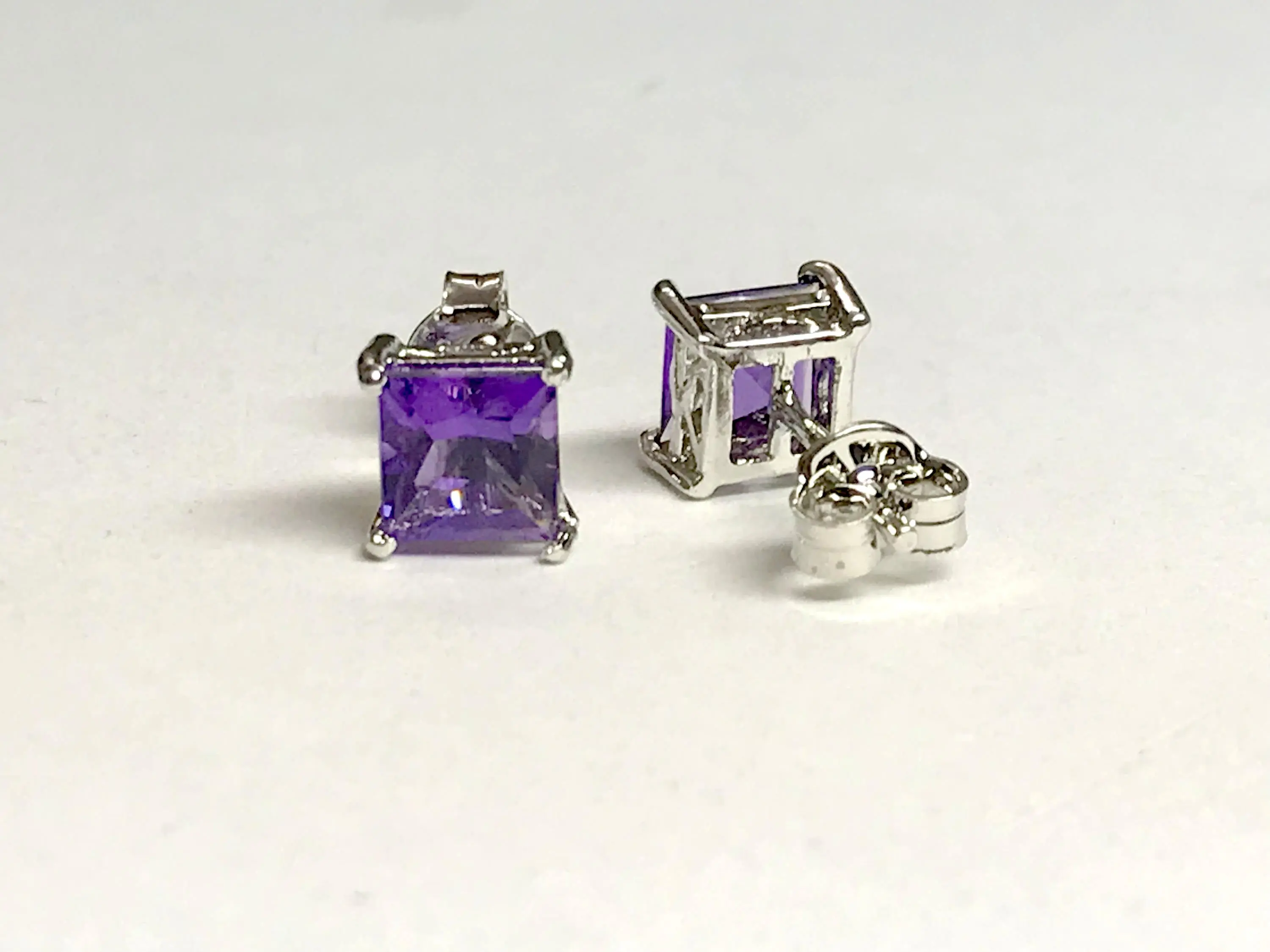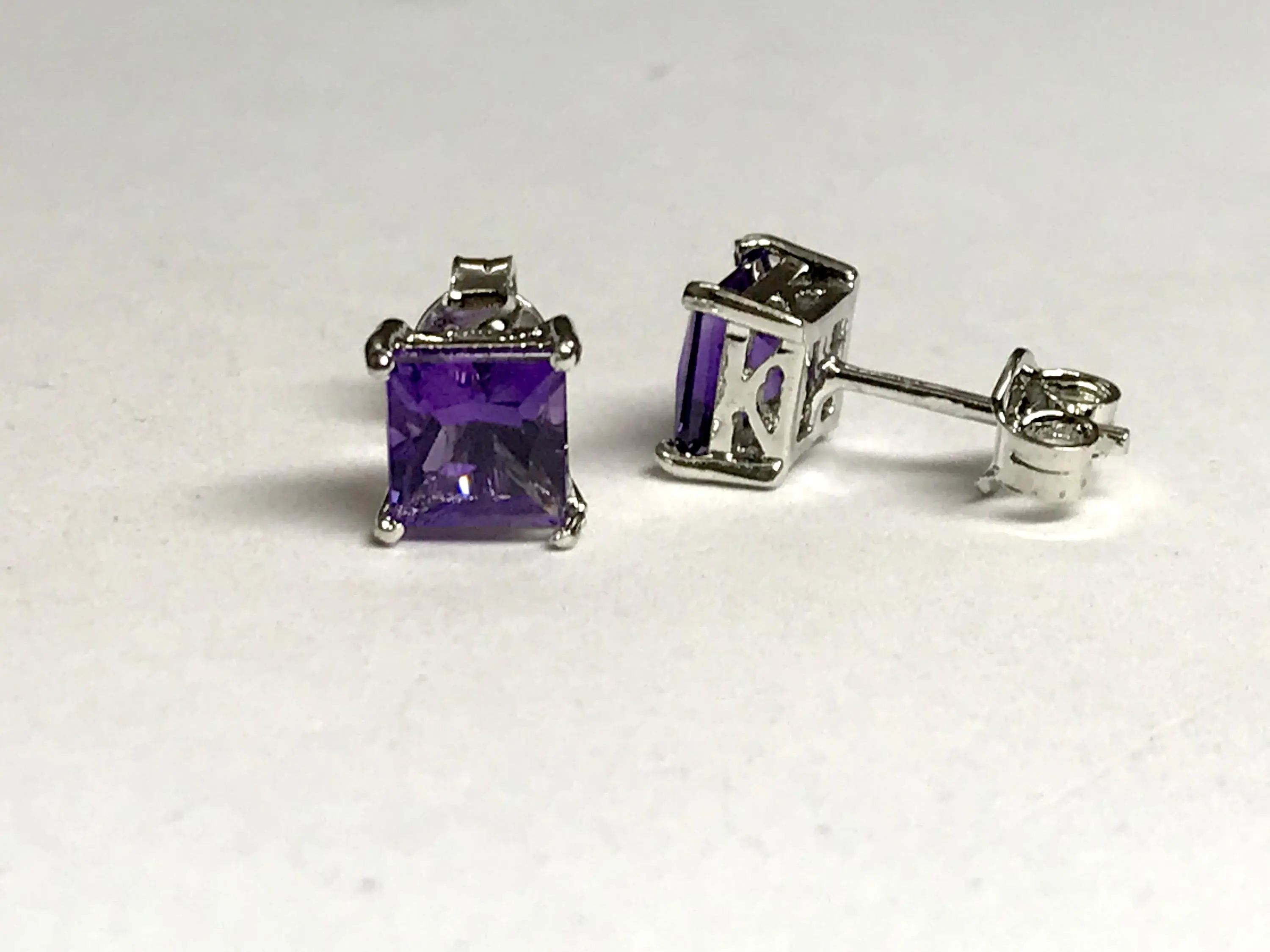 PRINCESS CUT AMETHYST , Stud Earrings ,925 sterling silver,February birthstone ,lovely gift for her, Valentine's day Gift.....