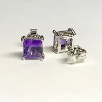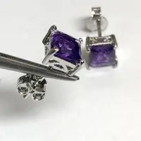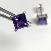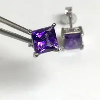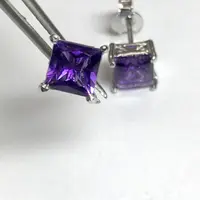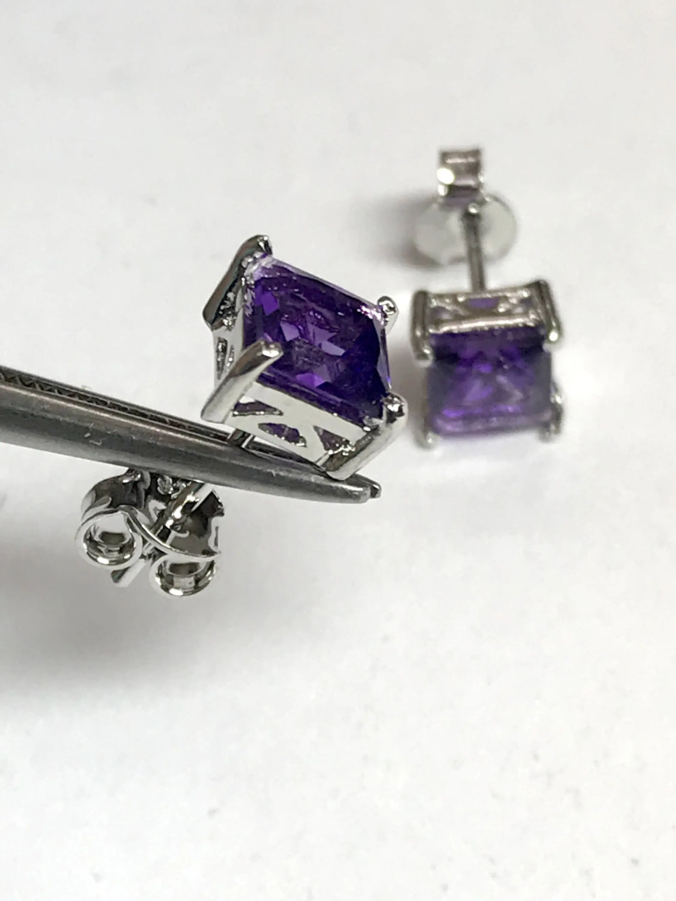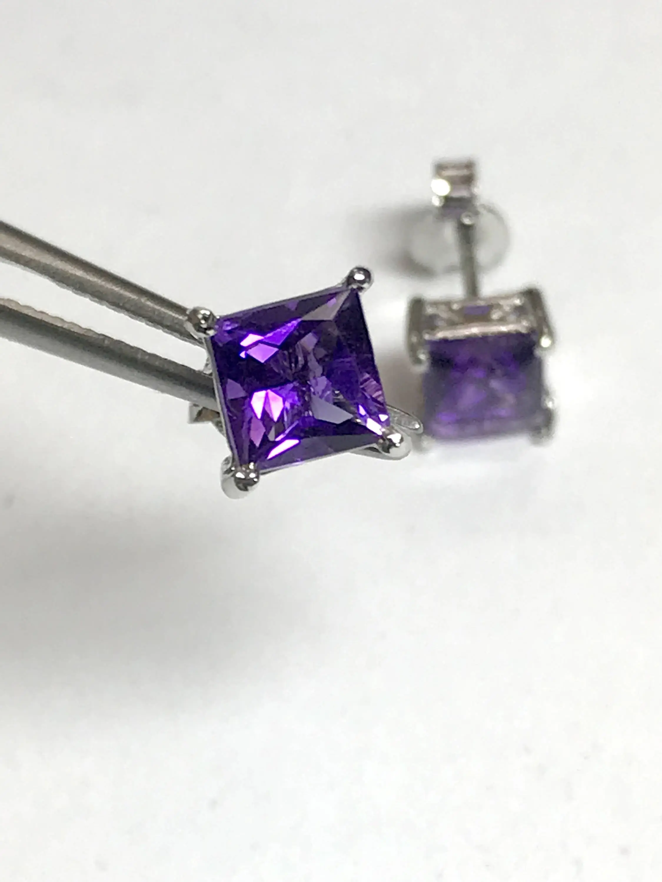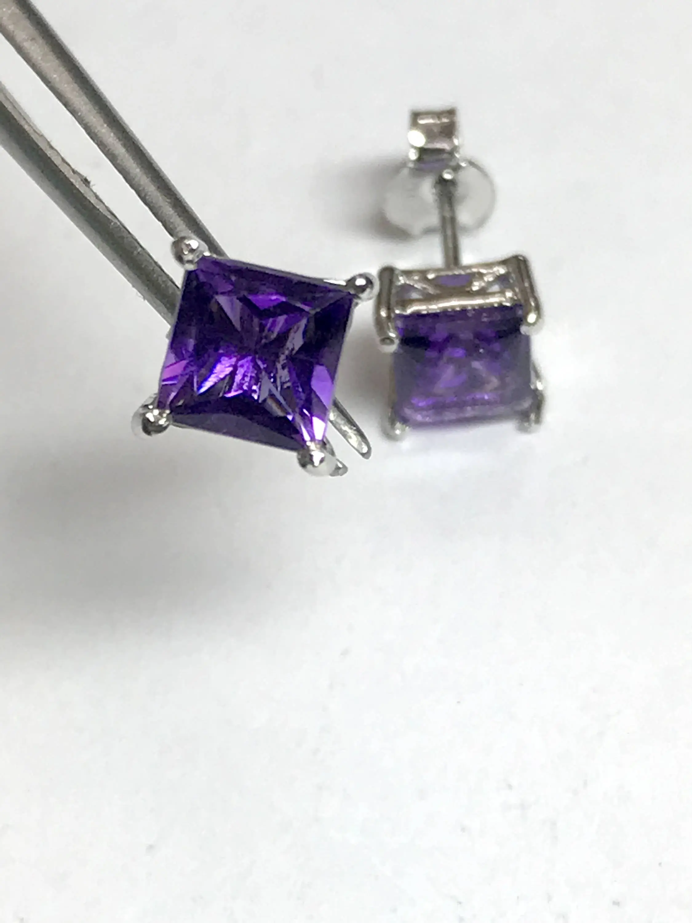 100% Natural African Amethyst 6mm square shaped ear studs or tops in 925 sterling silver, Amethyst February birthstone ,prince cut amethyst..