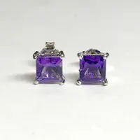 Classic and traditional! These earrings are handcrafted of 925 sterling silver , set with square shaped African Amethyst etc.... These are a staple for any woman's jewelry wardrobe. They are as suitable for the office as they are for an evening out!