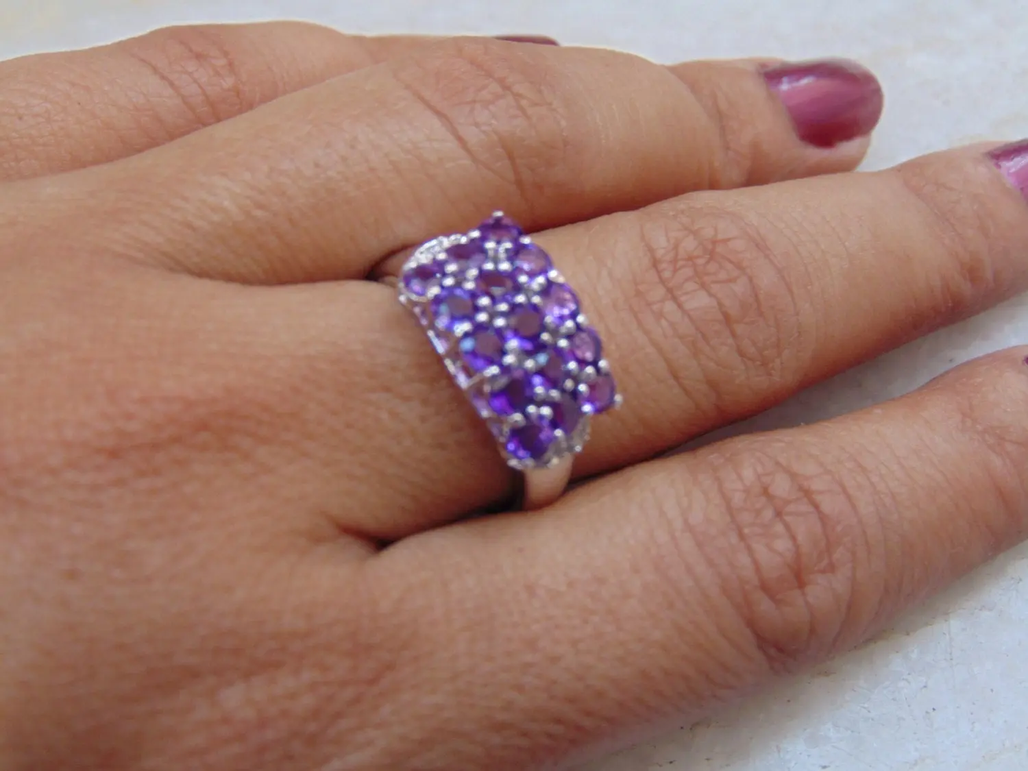 AAA quality natural Amethyst Cluster Ring - Purple Amethyst Rings- Amethyst Silver Rings- February Birthstone , Valentine Gift